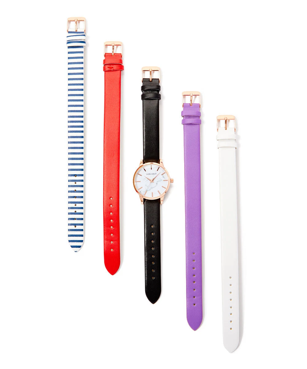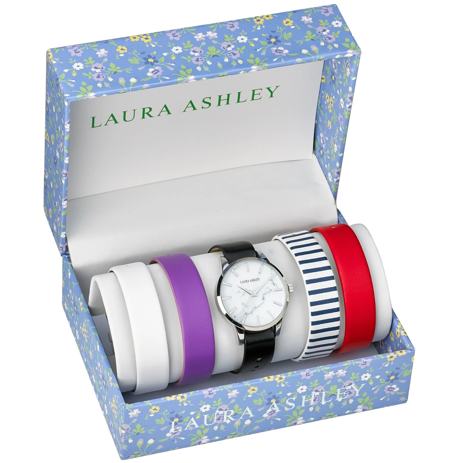 Laura Ashley Women's 36mm Strap Watch Set with 4 Interchangeable Straps