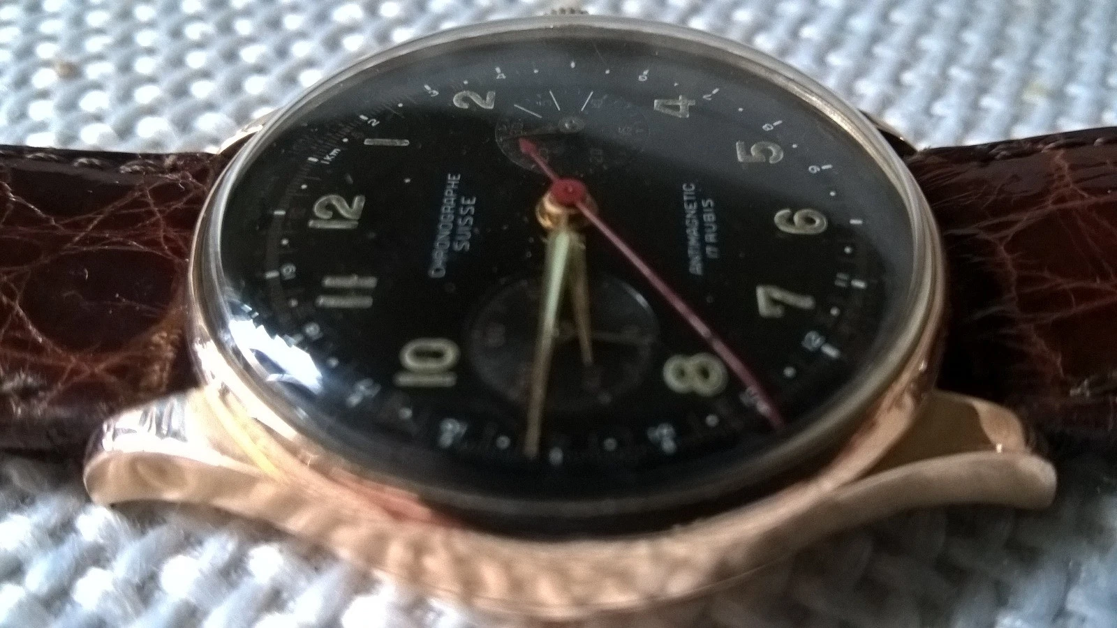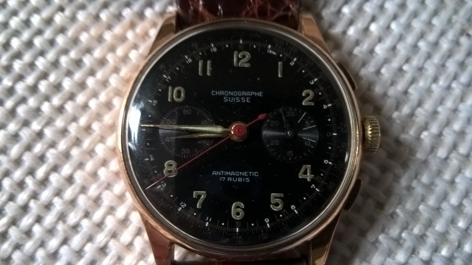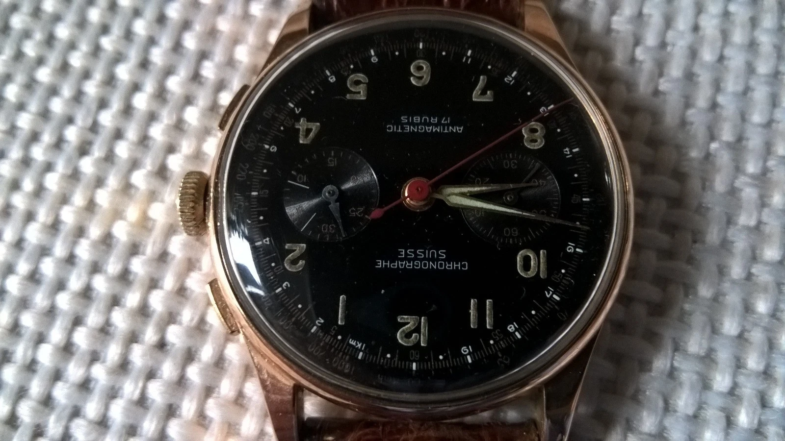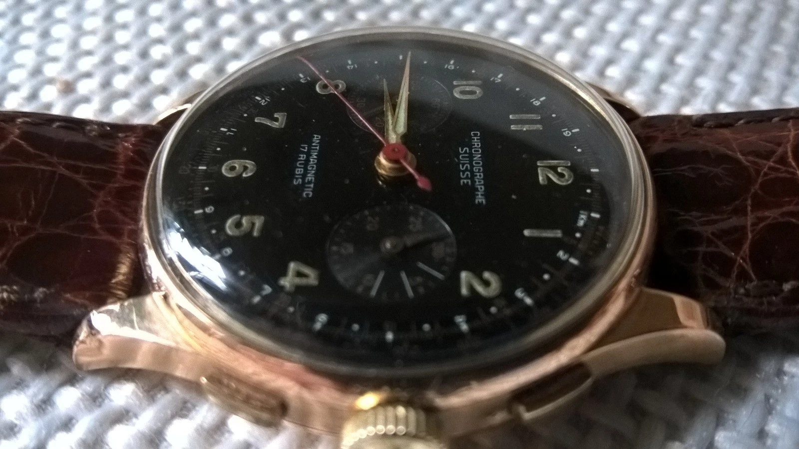 18K GOLD CHRONOGRAPH MILITARY GOLD CHRONOGRAPH MOV. LANDERON BLACK DIAL