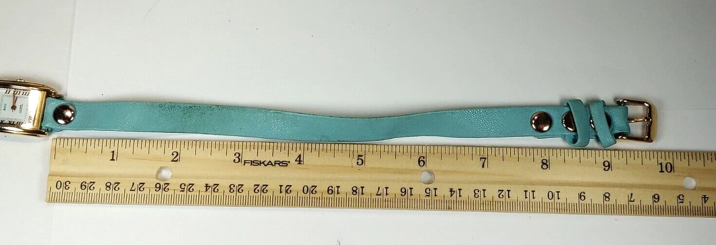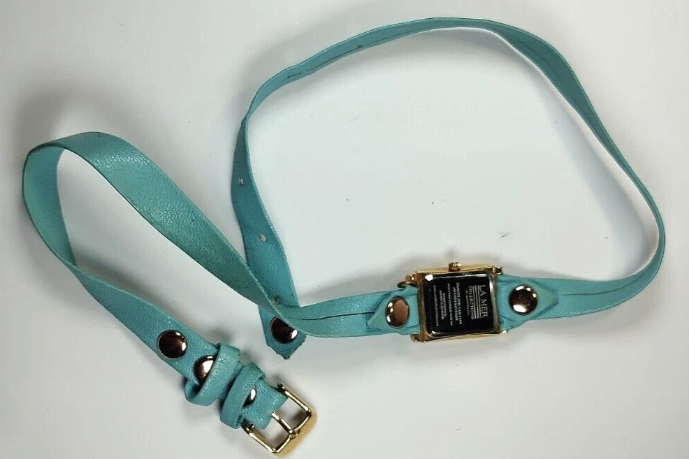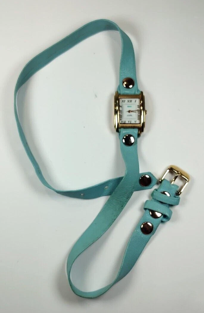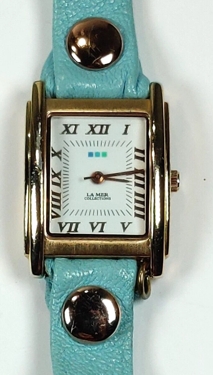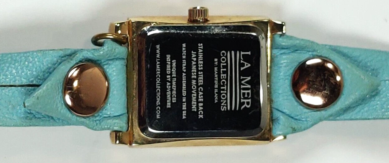 LA MER WOMENS WATCH UNIQUE TEAL WRAP AROUND LEATHER STRAP; GOLD CASE WORKS!