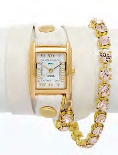 LA MER Eggshell w/ Silk Chandelier Crystal Chain Wrap Watch
