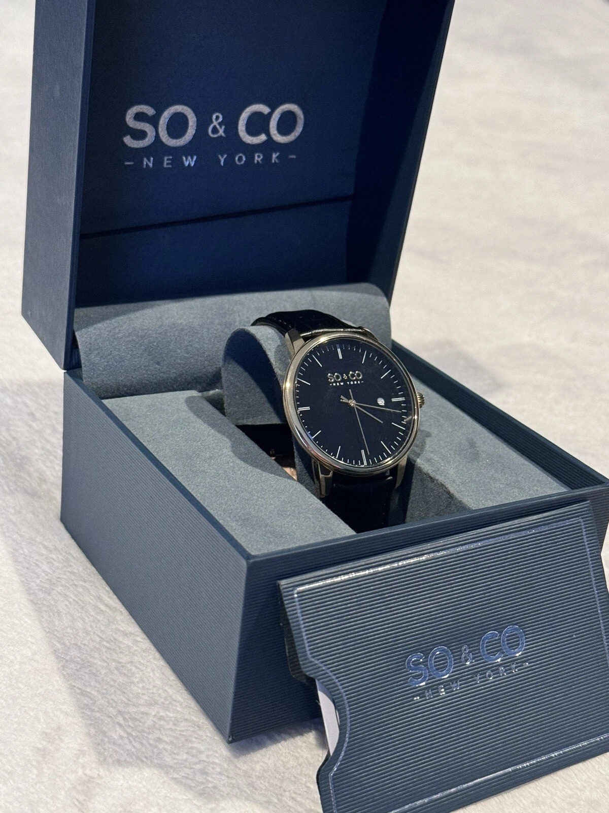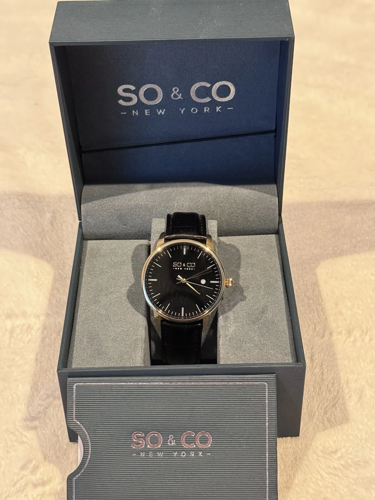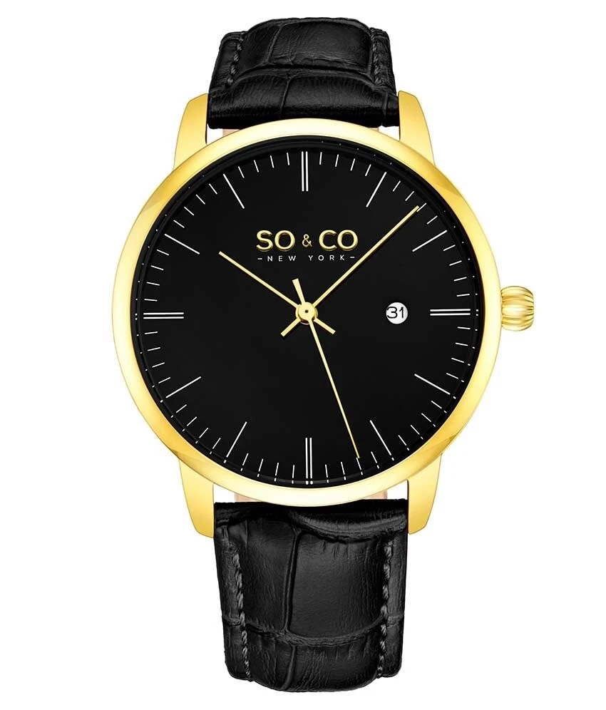 SO & CO NEW YORK Madison 5521 40mm Watch Black Leather Strap/Gold Case