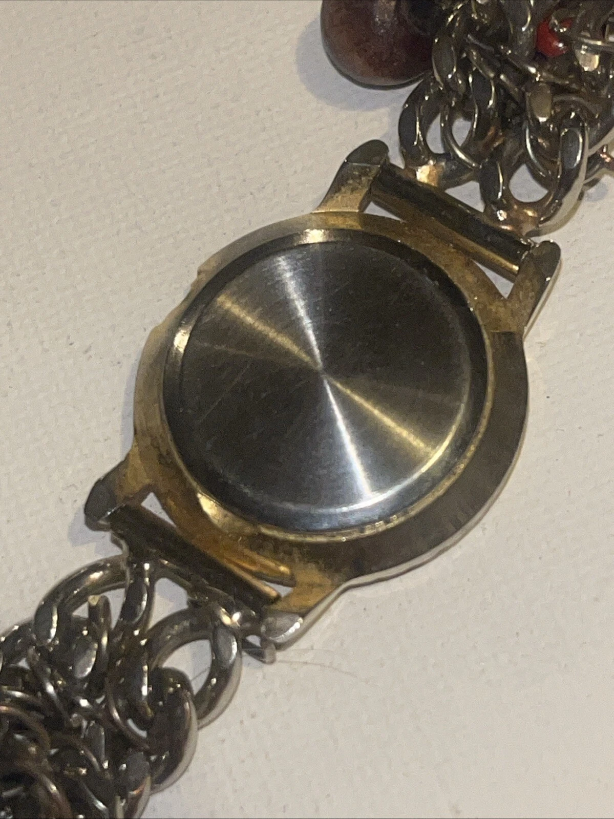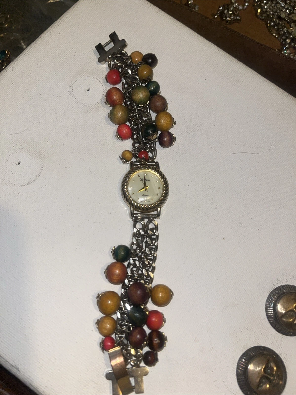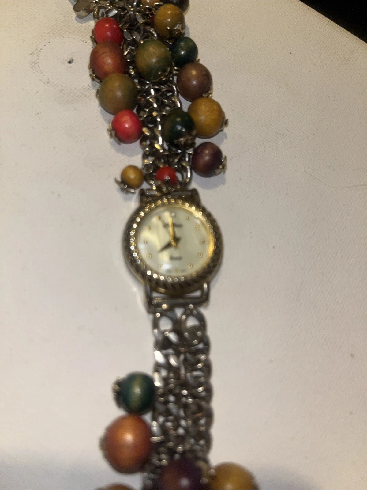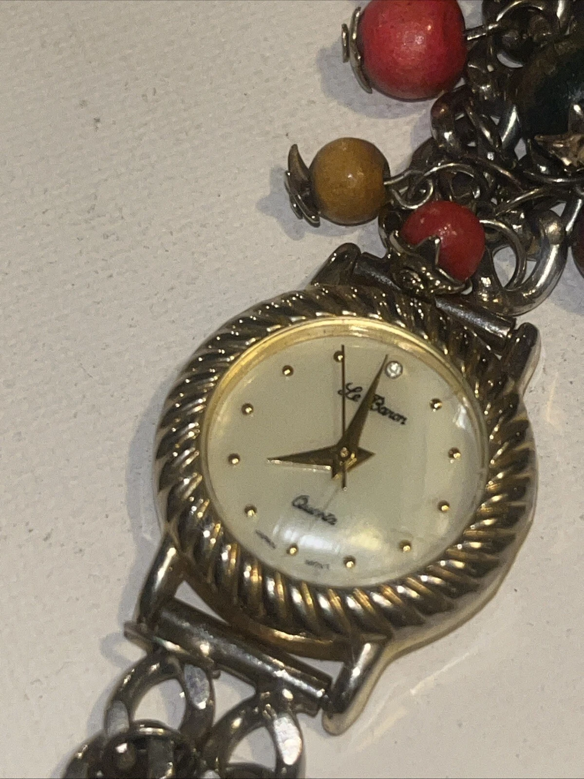 Le Baron Watch Ladies Gold Tone Mother of Pearl Beaded Band Needs Battery