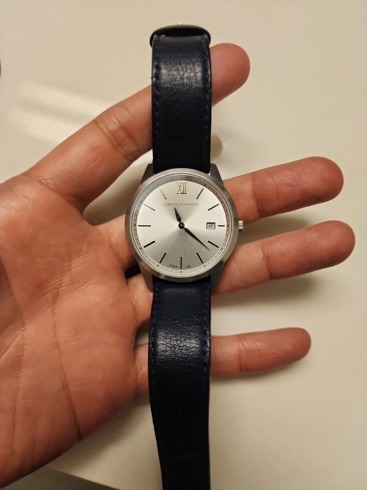 Larsson Jennings watch Men Lugano Silver dial and blue leather band