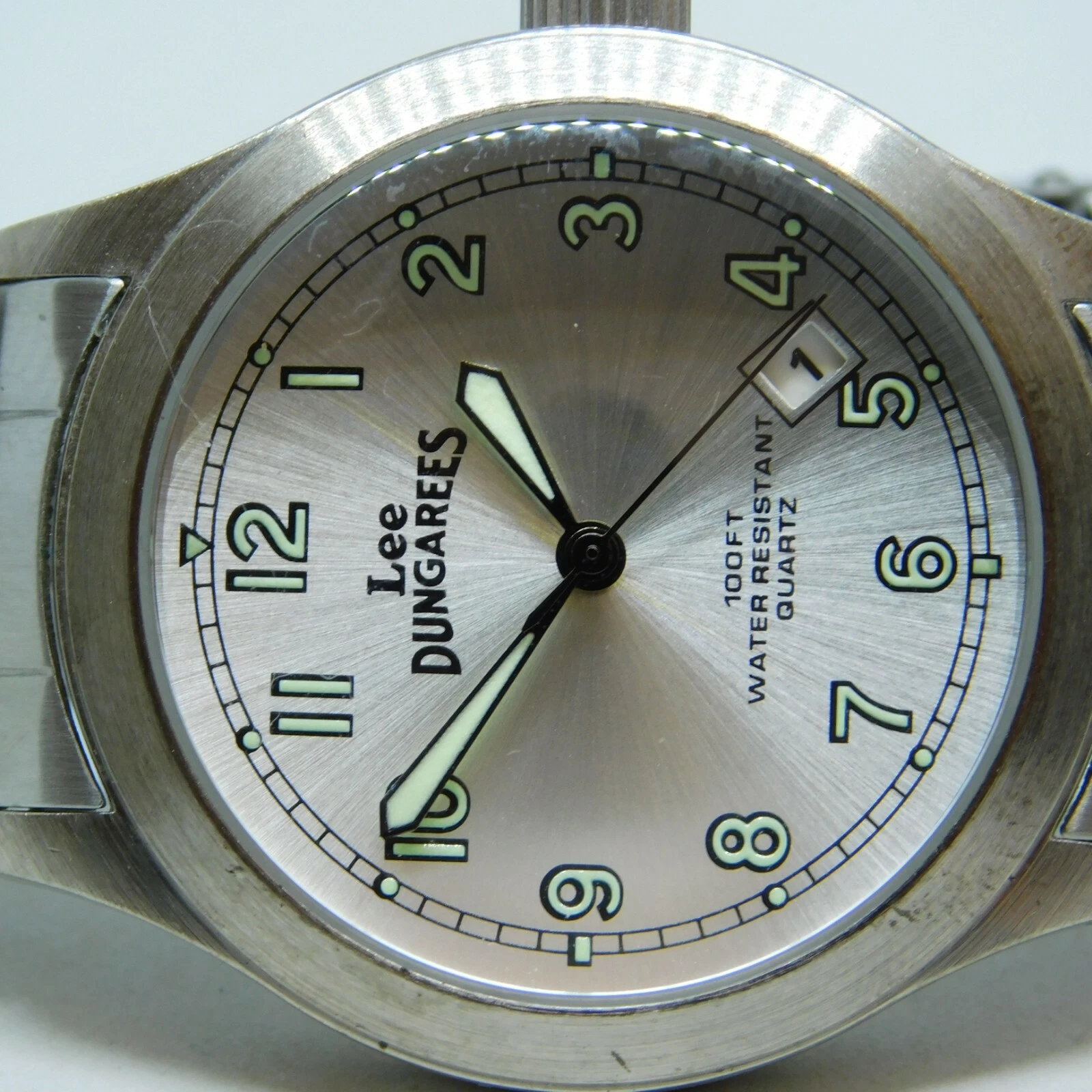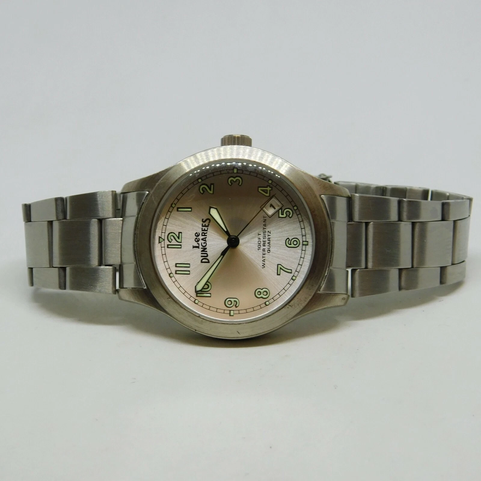 Lee Dungarees LET031 Silver Tone Quartz Analog Men's Watch Sz. 7 1/4"