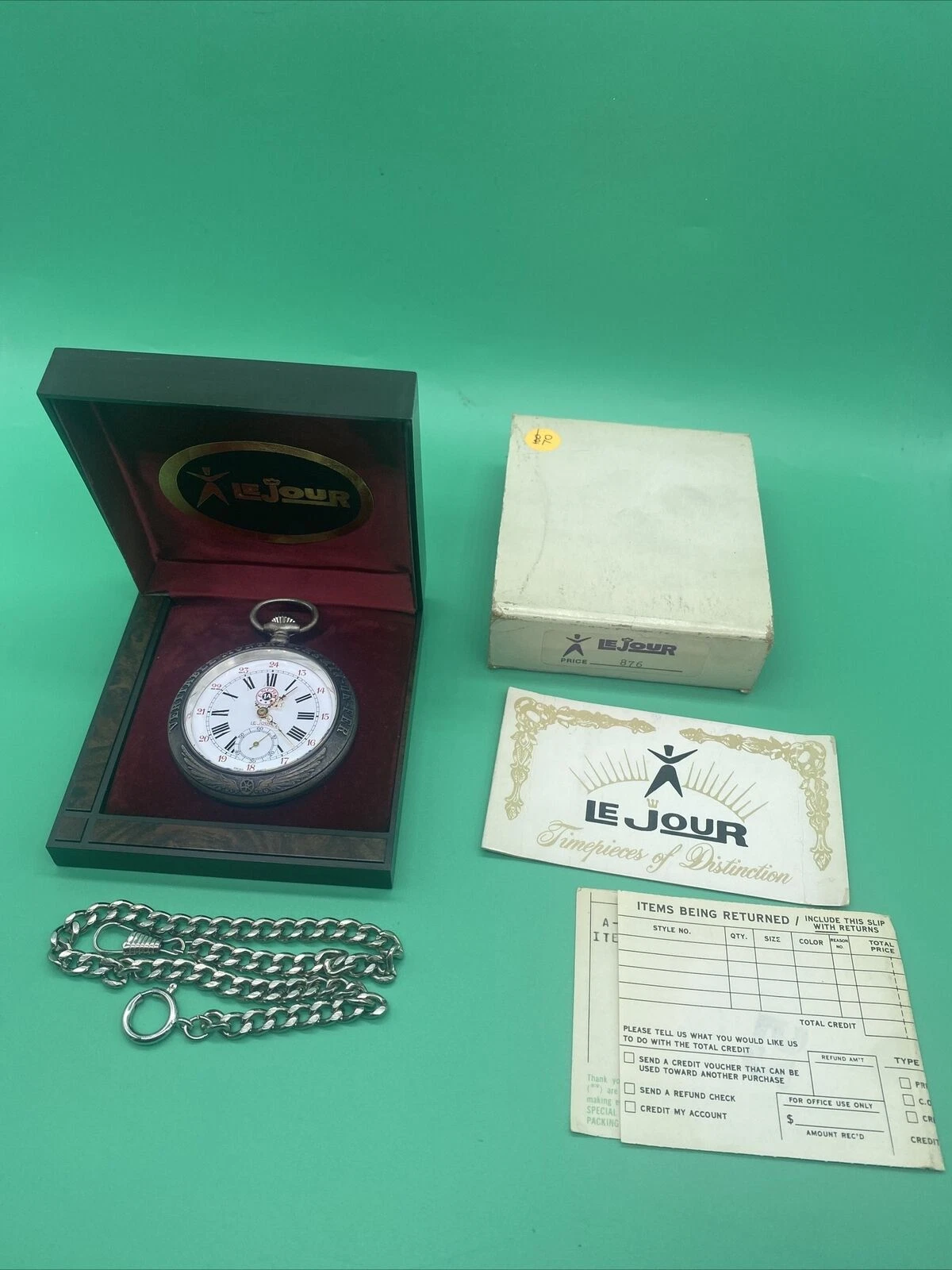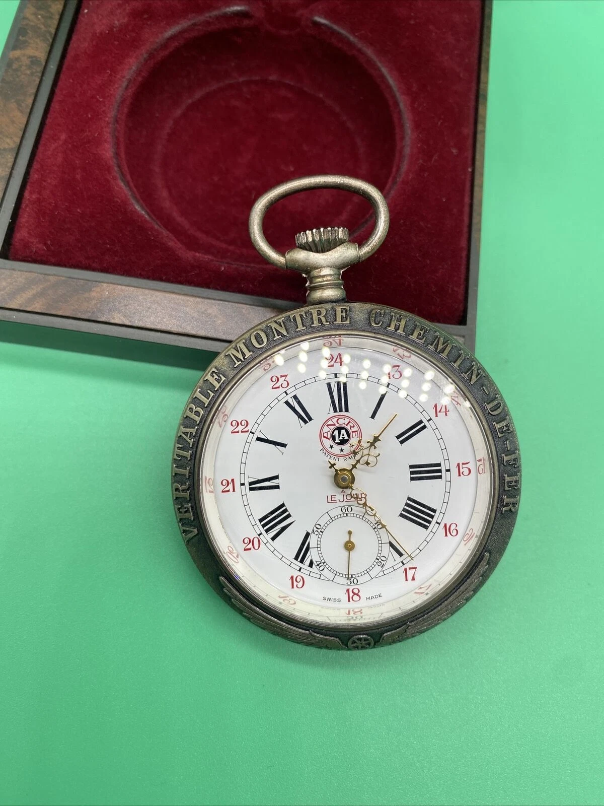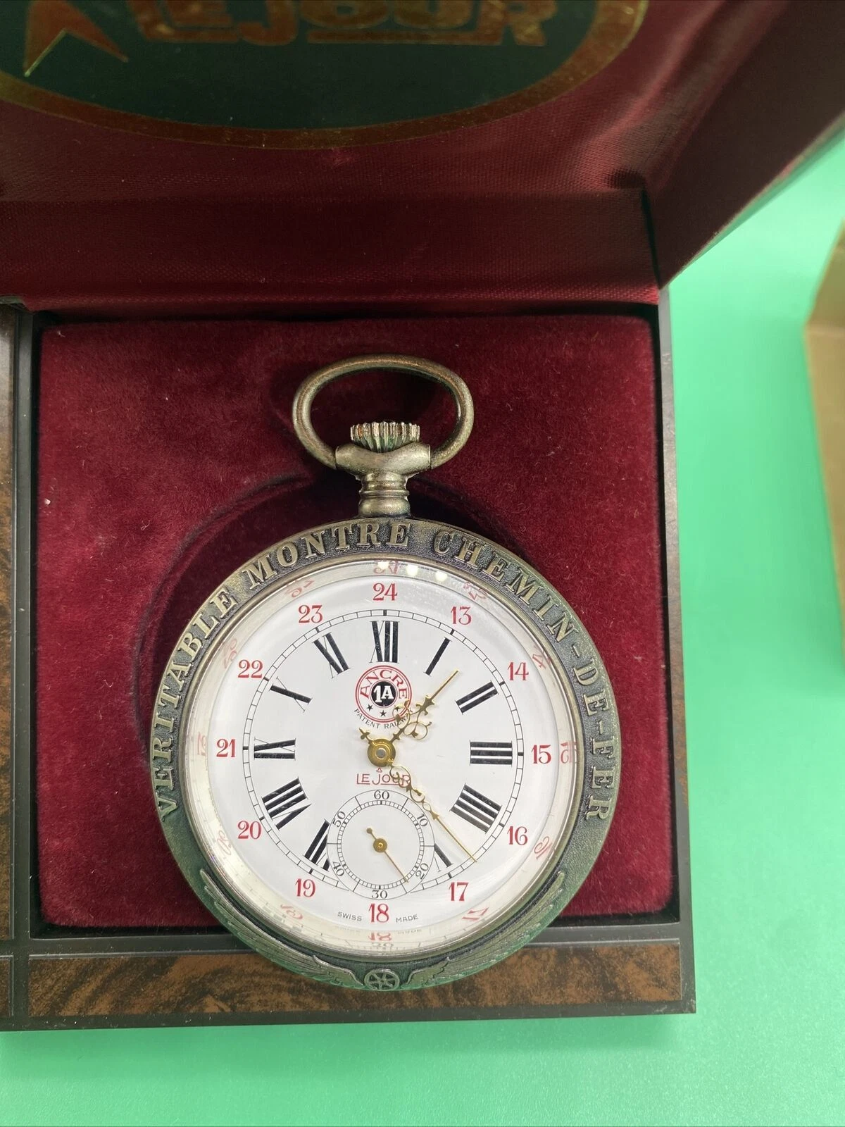 SWISS LE JOUR 17 JEWELS COHTEBERT RAILROAD STYLE POCKET WATCH IN ORIGINAL BOX