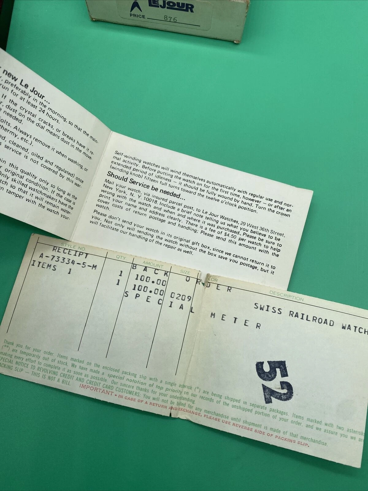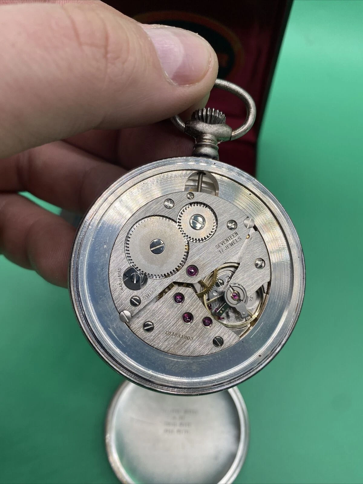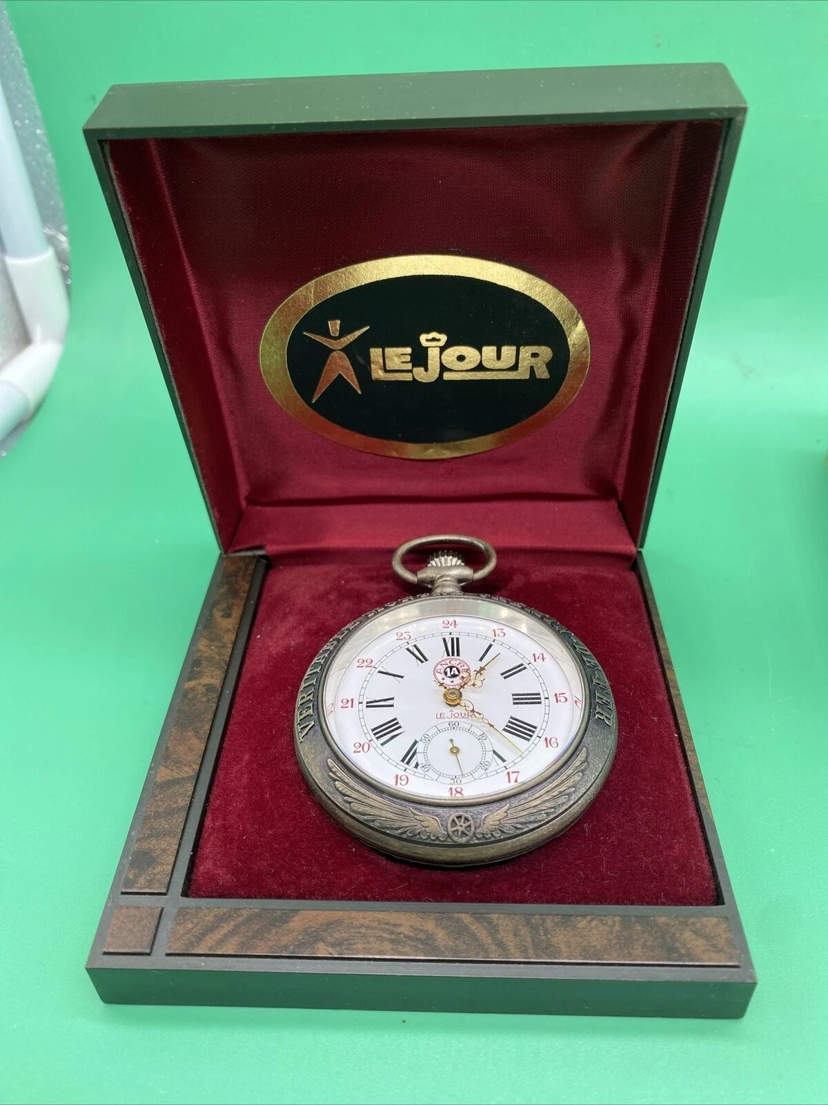 SWISS LE JOUR 17 JEWELS COHTEBERT RAILROAD STYLE POCKET WATCH IN ORIGINAL BOX