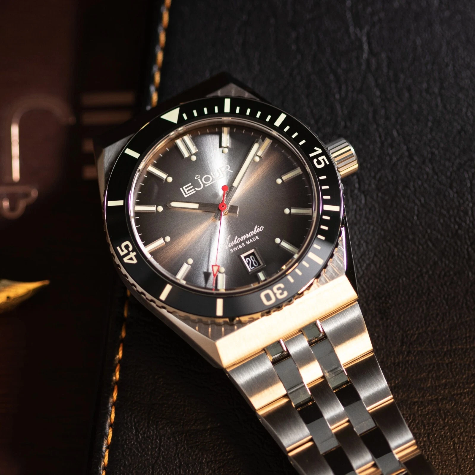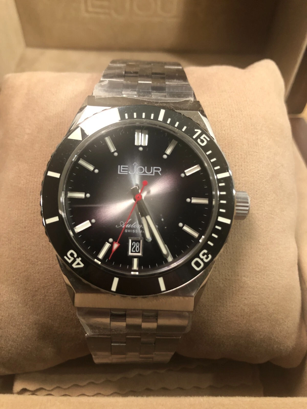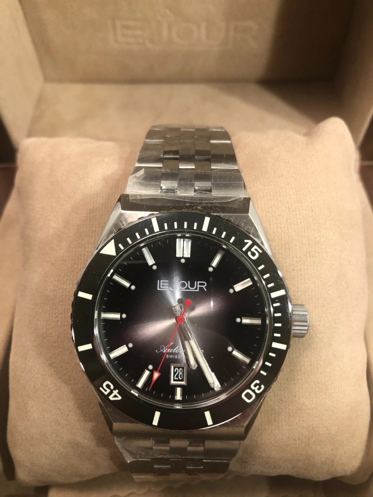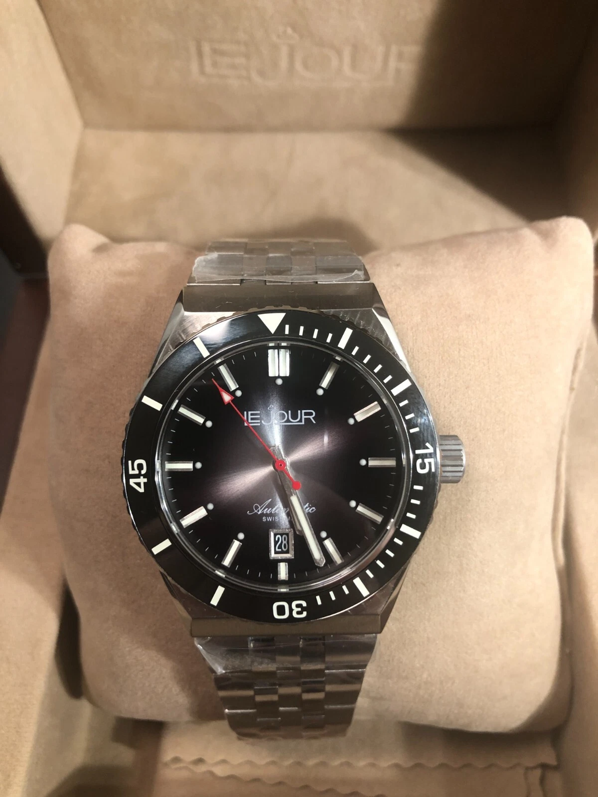 Swiss Made LE JOUR Automatic Diver Watch - Delmare Black Sunray - **BNIB**