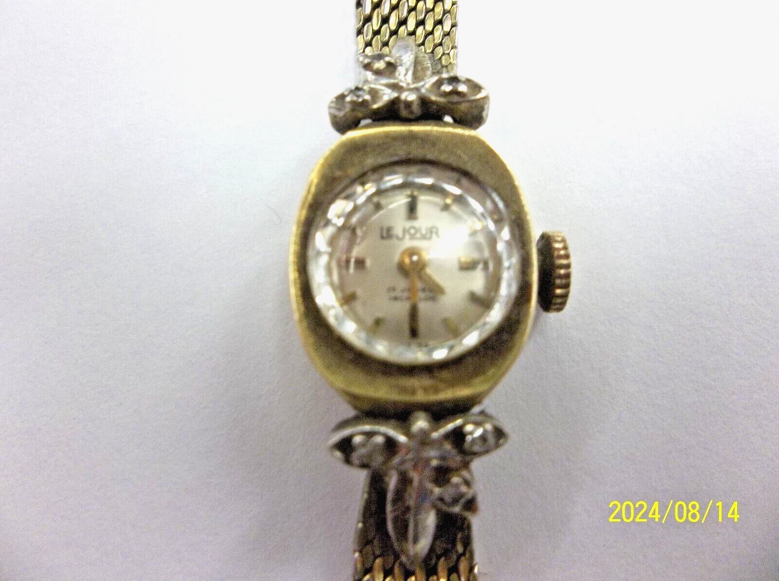 Vintage 14K Swiss  LeJour 17 Jewels 6 diamonds Incabloc Mechanical Wind Up Watch