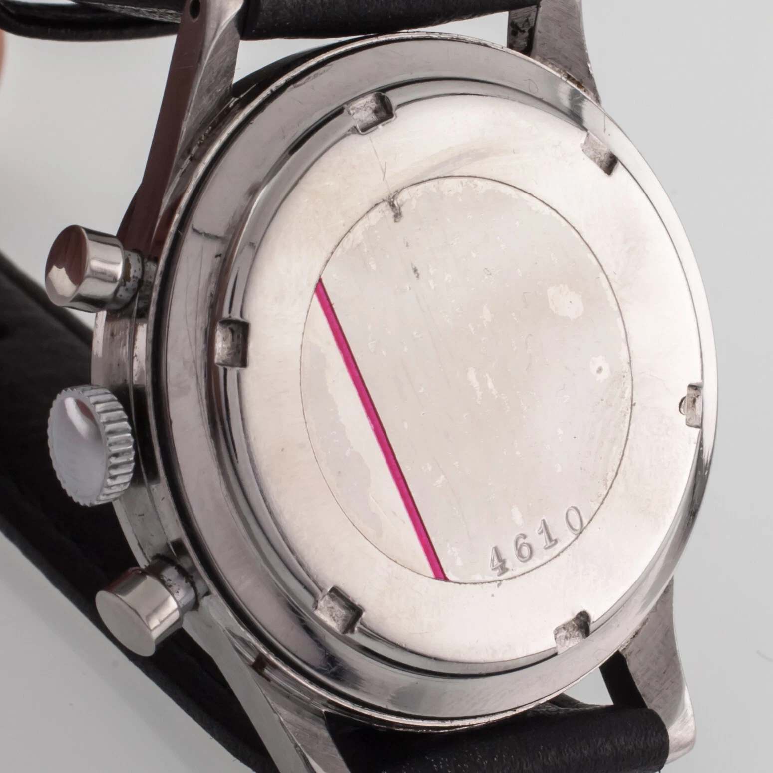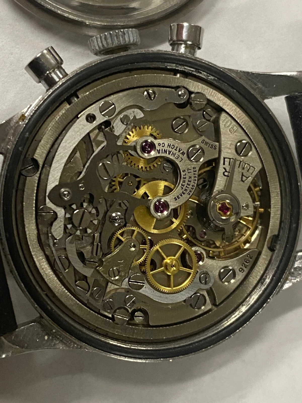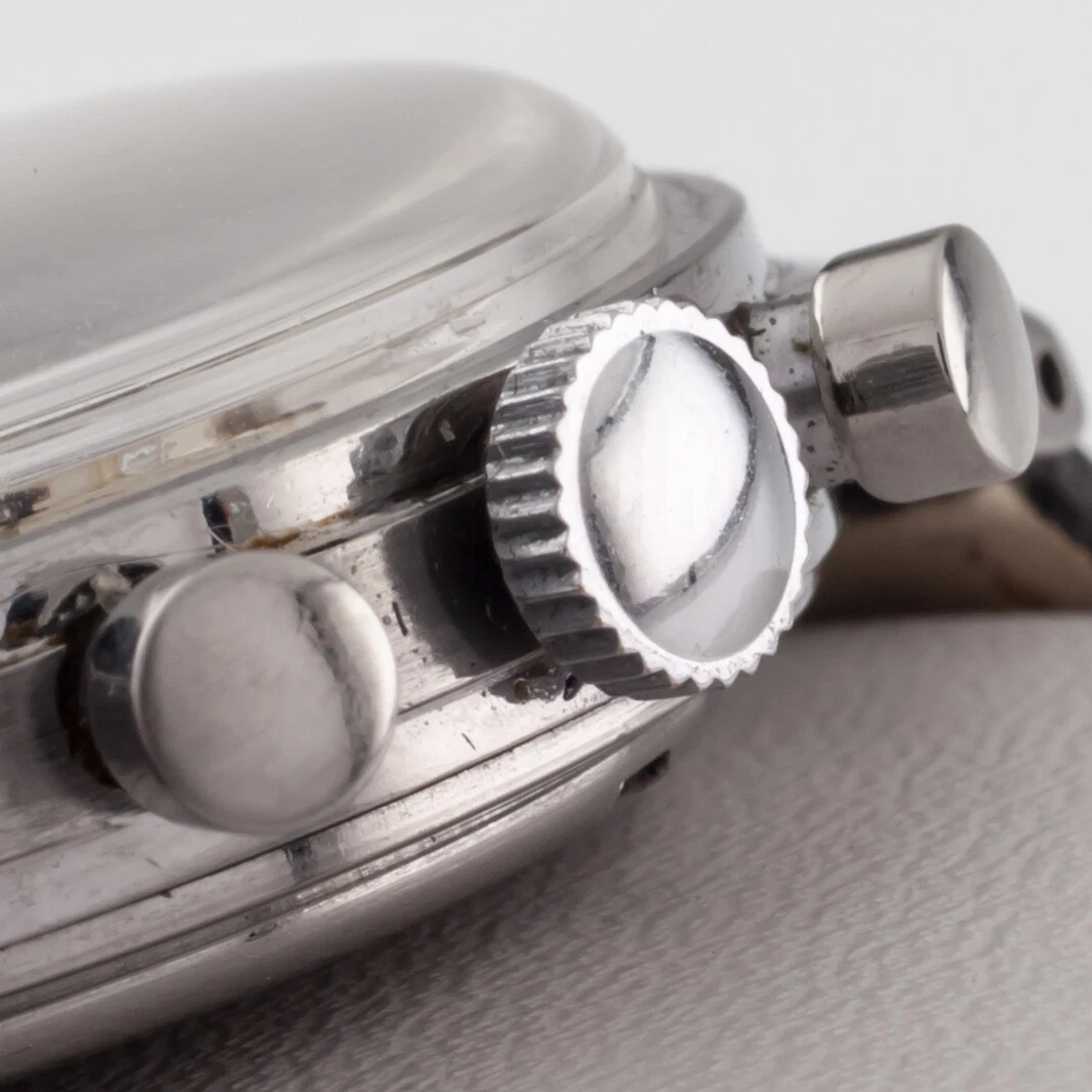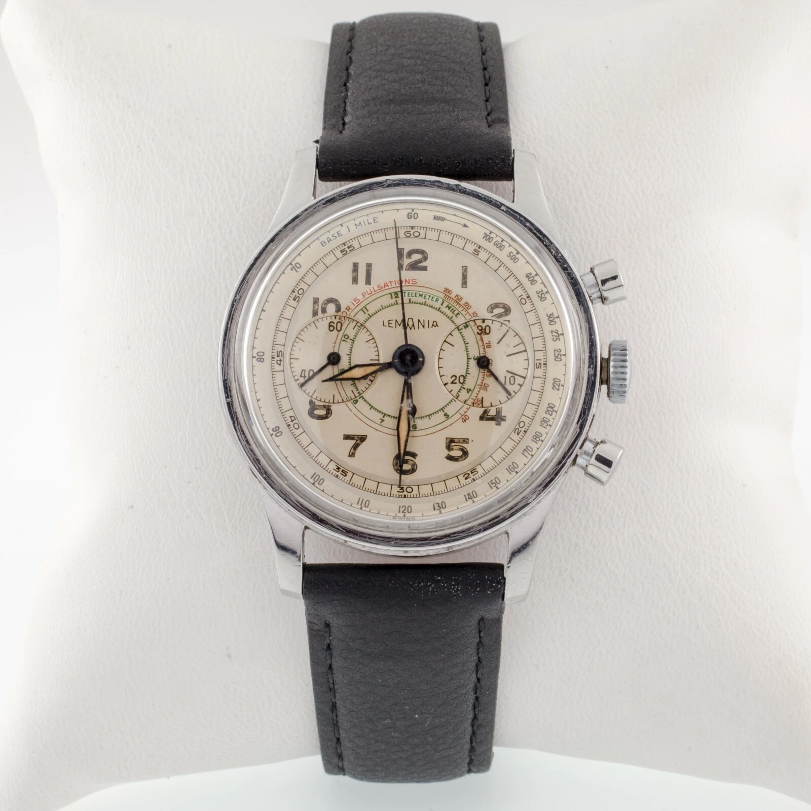 Lemania Stainless Steel 15TL Chronograph Watch Tachymeter 1940s Leather Band