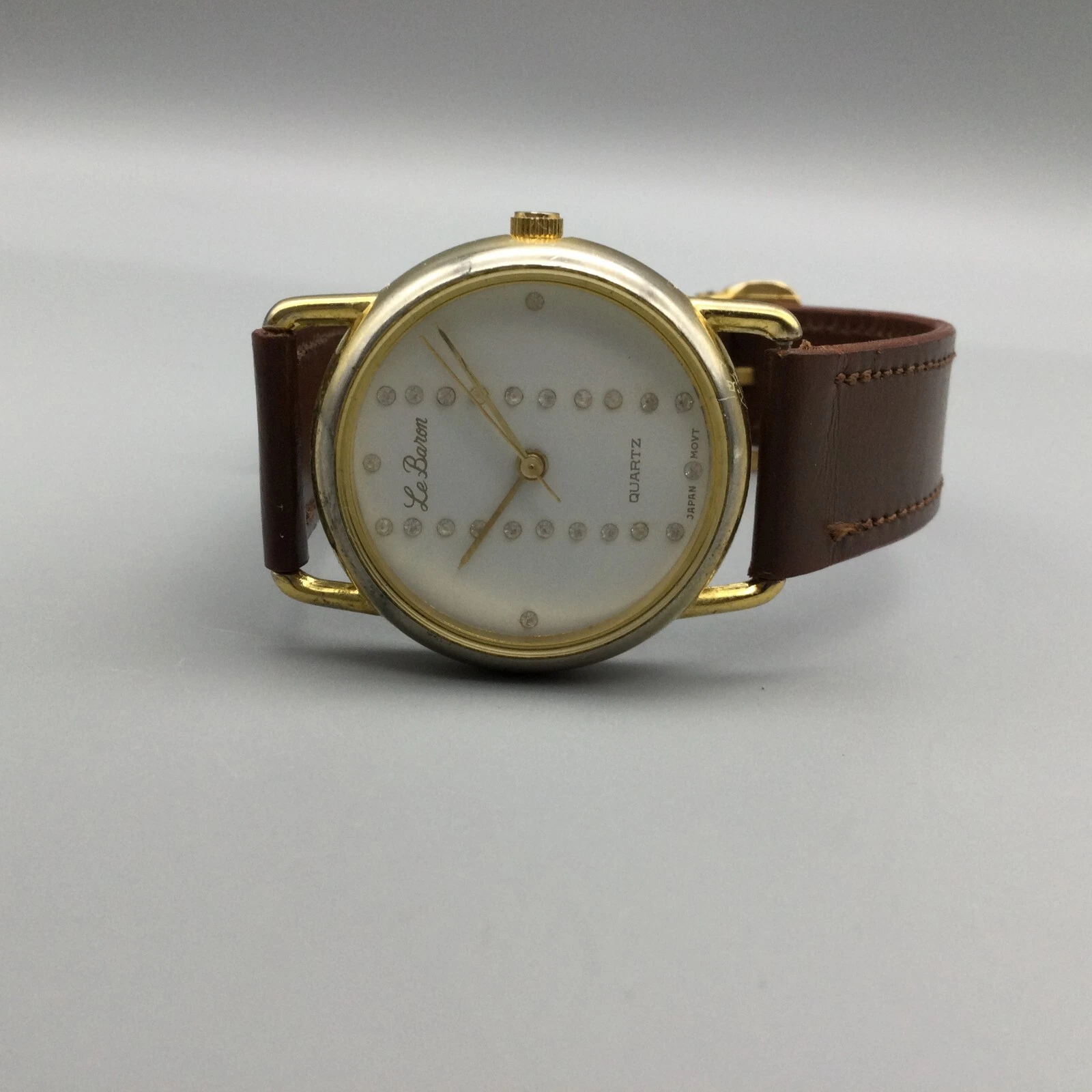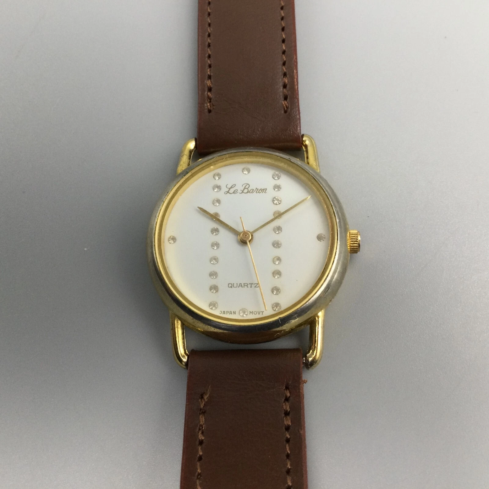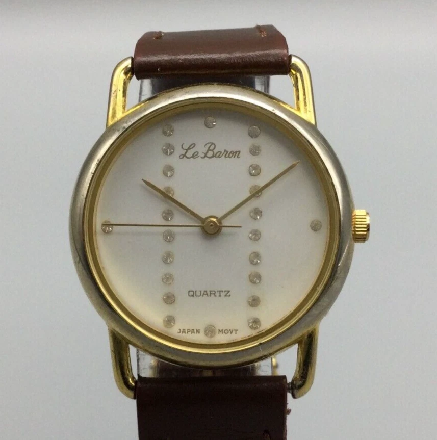 Vintage Le Baron Watch Women 29mm Gold Tone Bling Crystal Dial