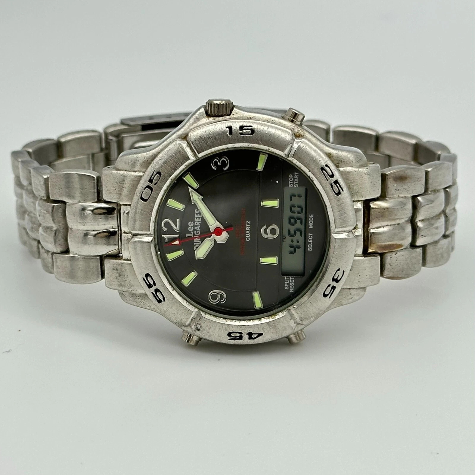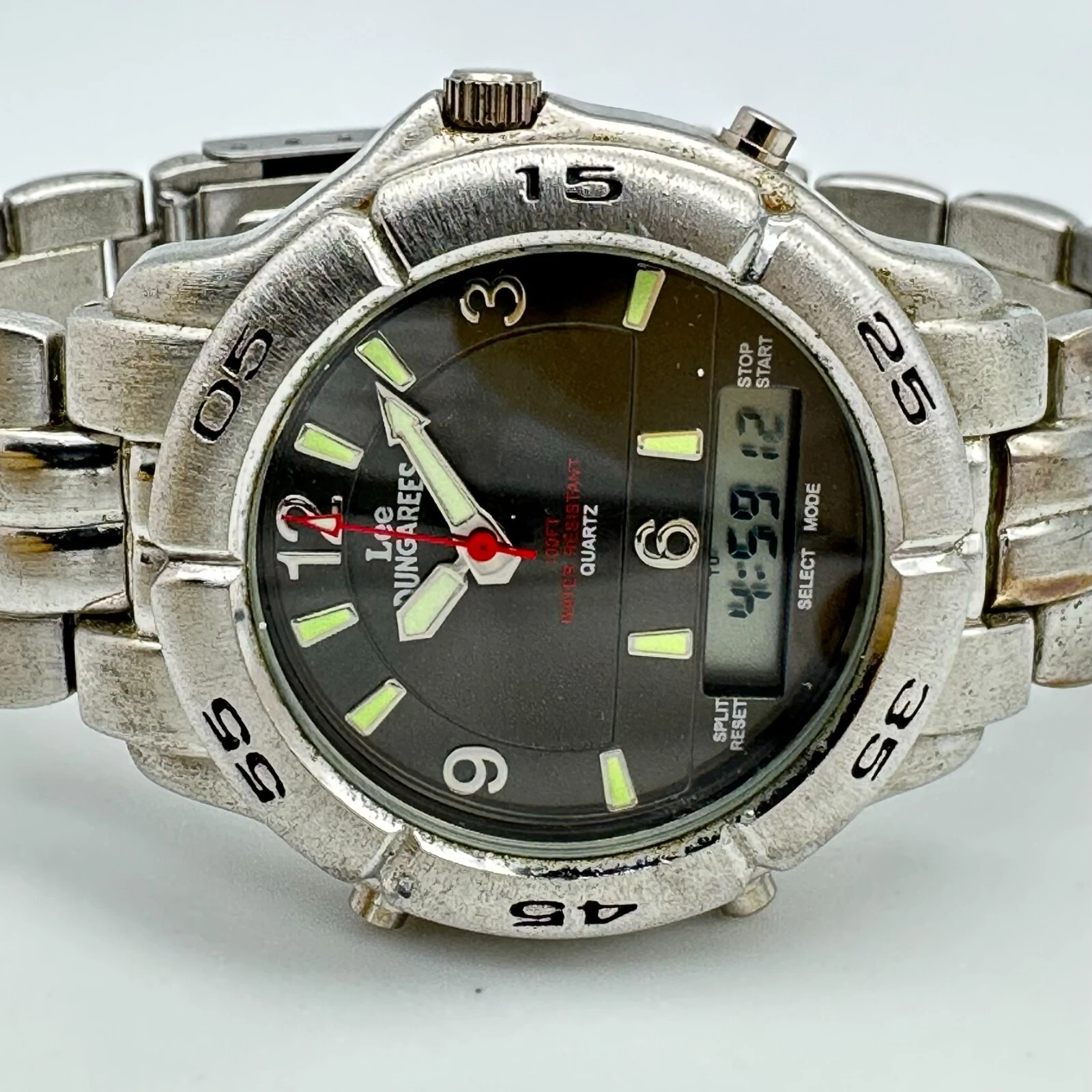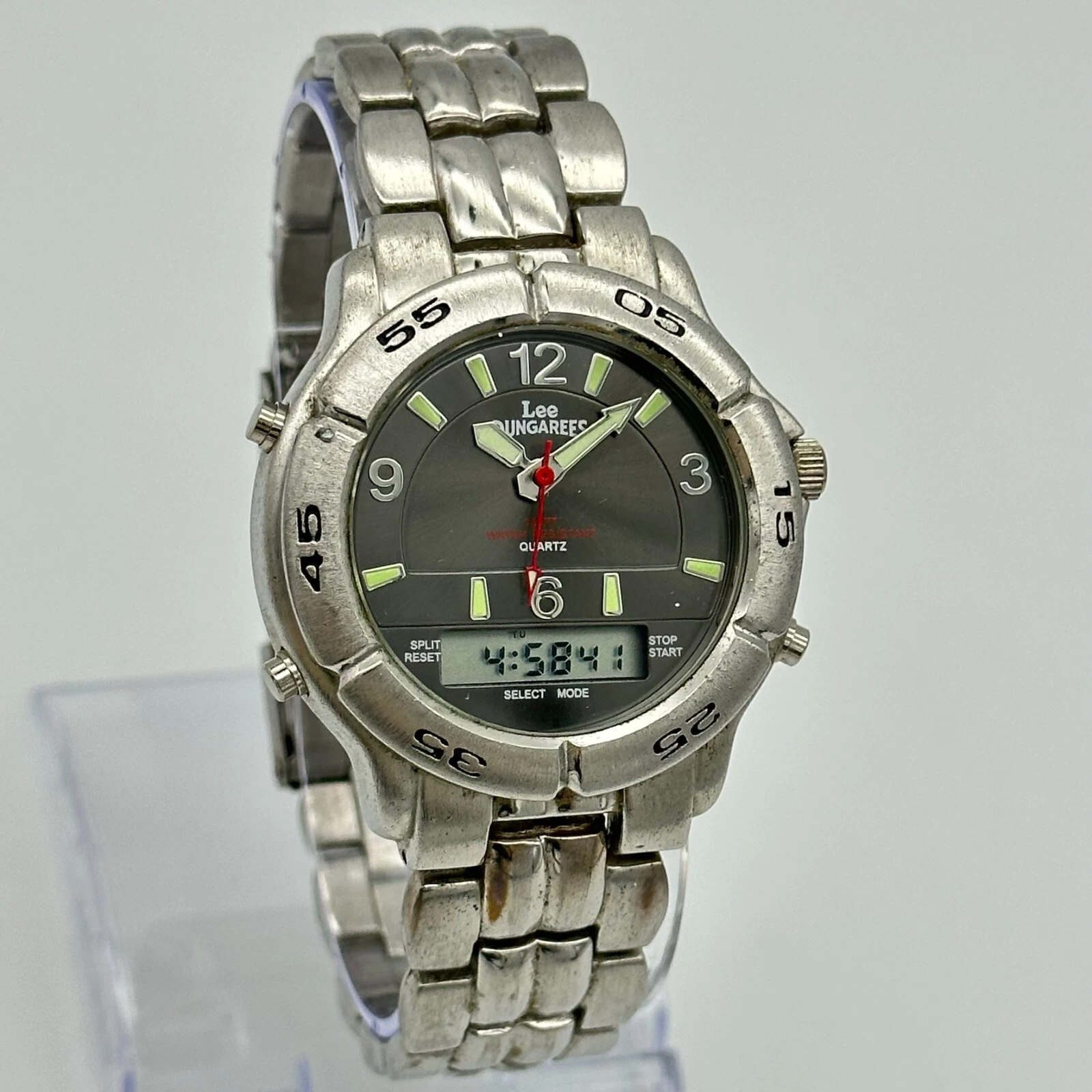 Men's LEE DUNGAREES Silver Tone Analog-Digital Bracelet Watch, Gray Dial, LFT051