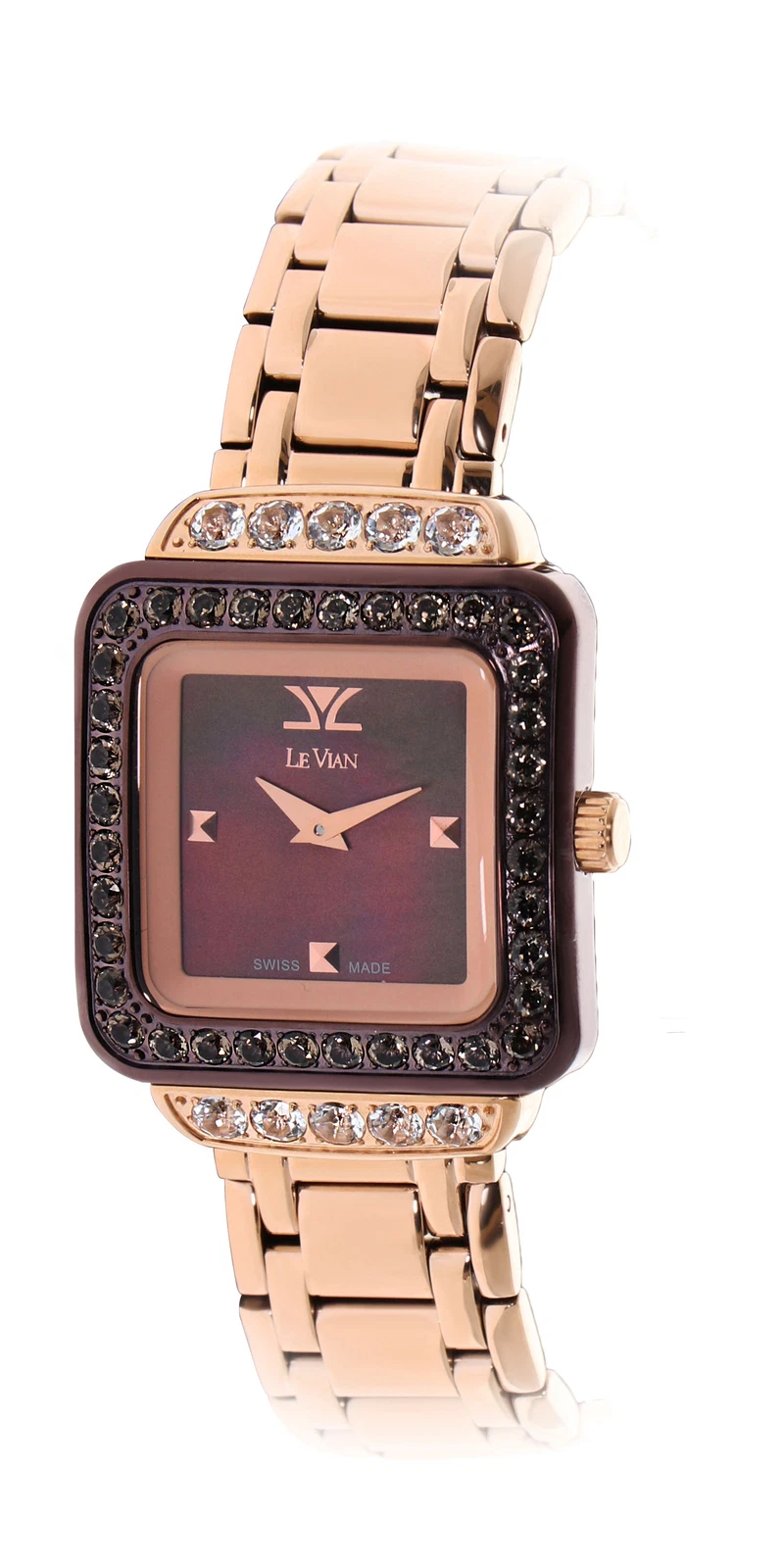Le Vian Time 32 mm Rose Gold Stainless Steel Case, Rose Gold Stainless Steel Bracelet, Women's Wristwatch (LV1375)