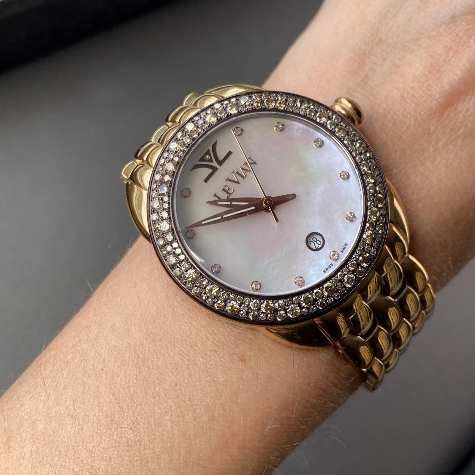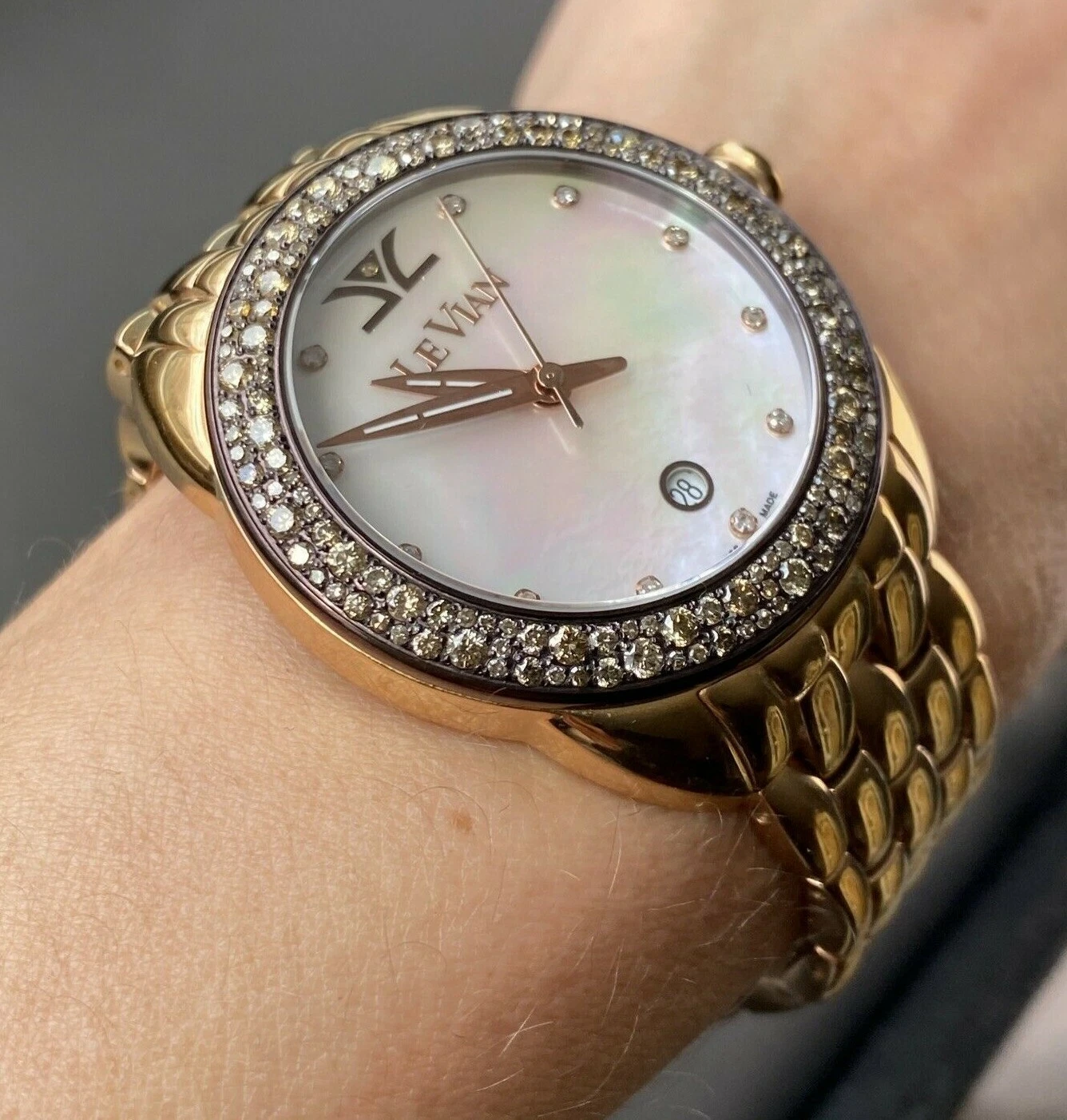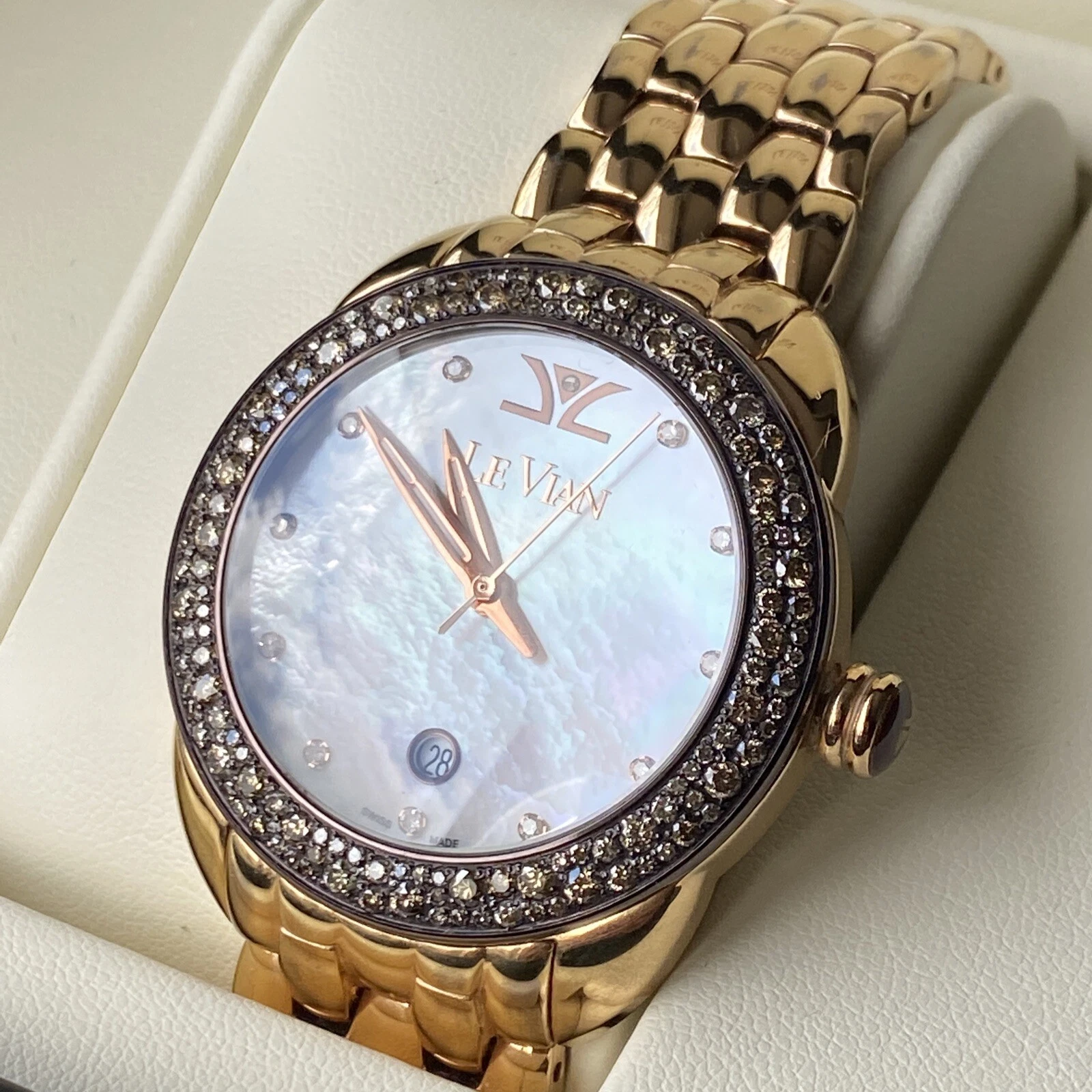 Levian Chocolate Diamond Rose Gold Plated Bracelet 38 mm Oversized Ladies Watch