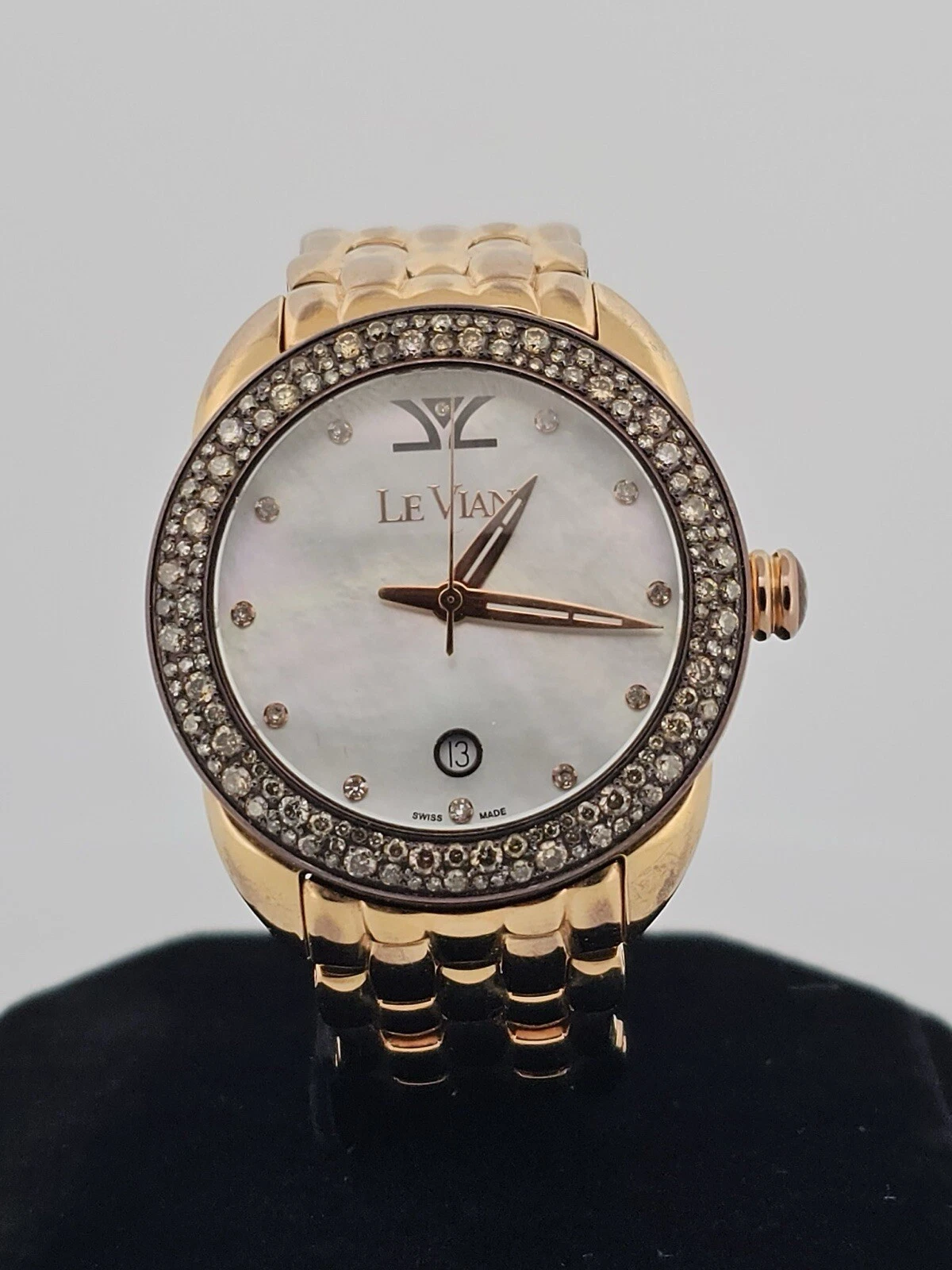 Levian Chocolate Diamond Rose Gold Plated Bracelet 38 mm Oversized Ladies Watch