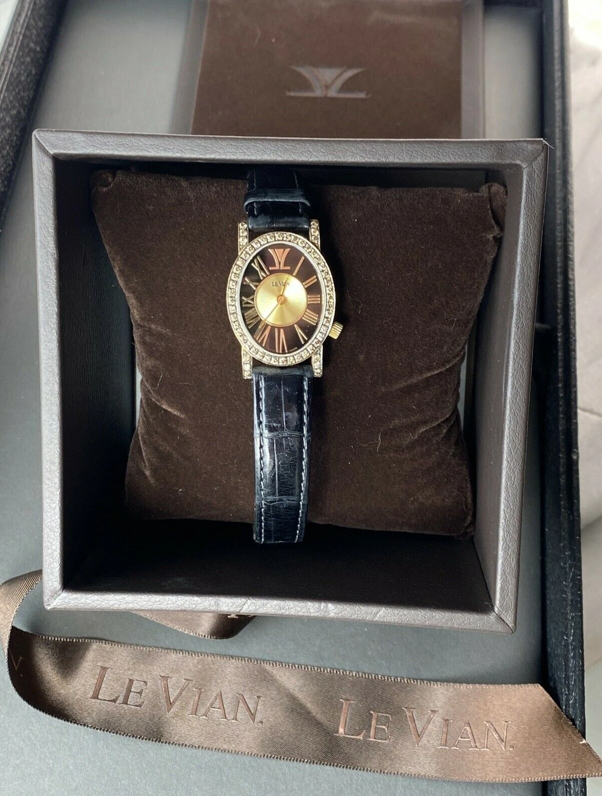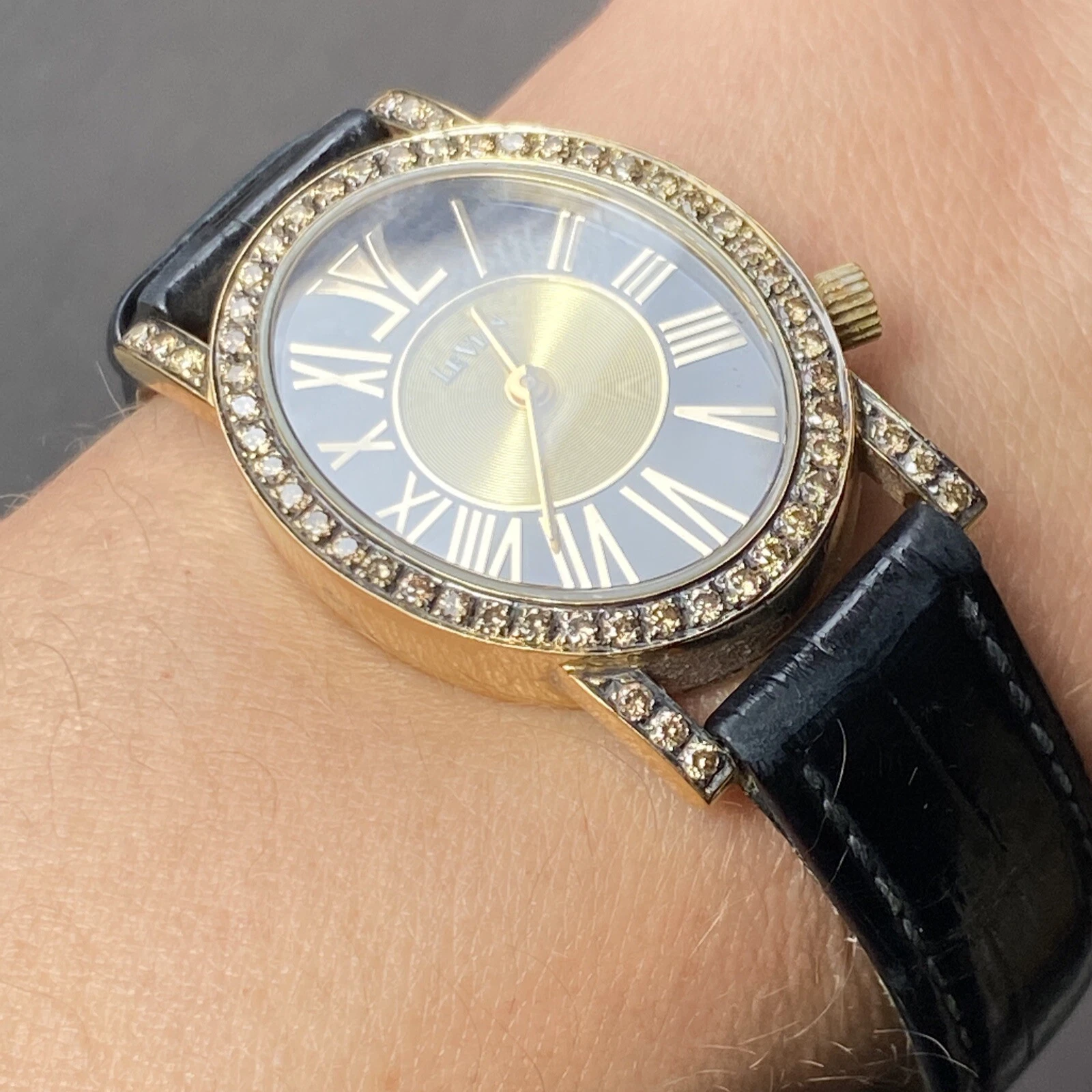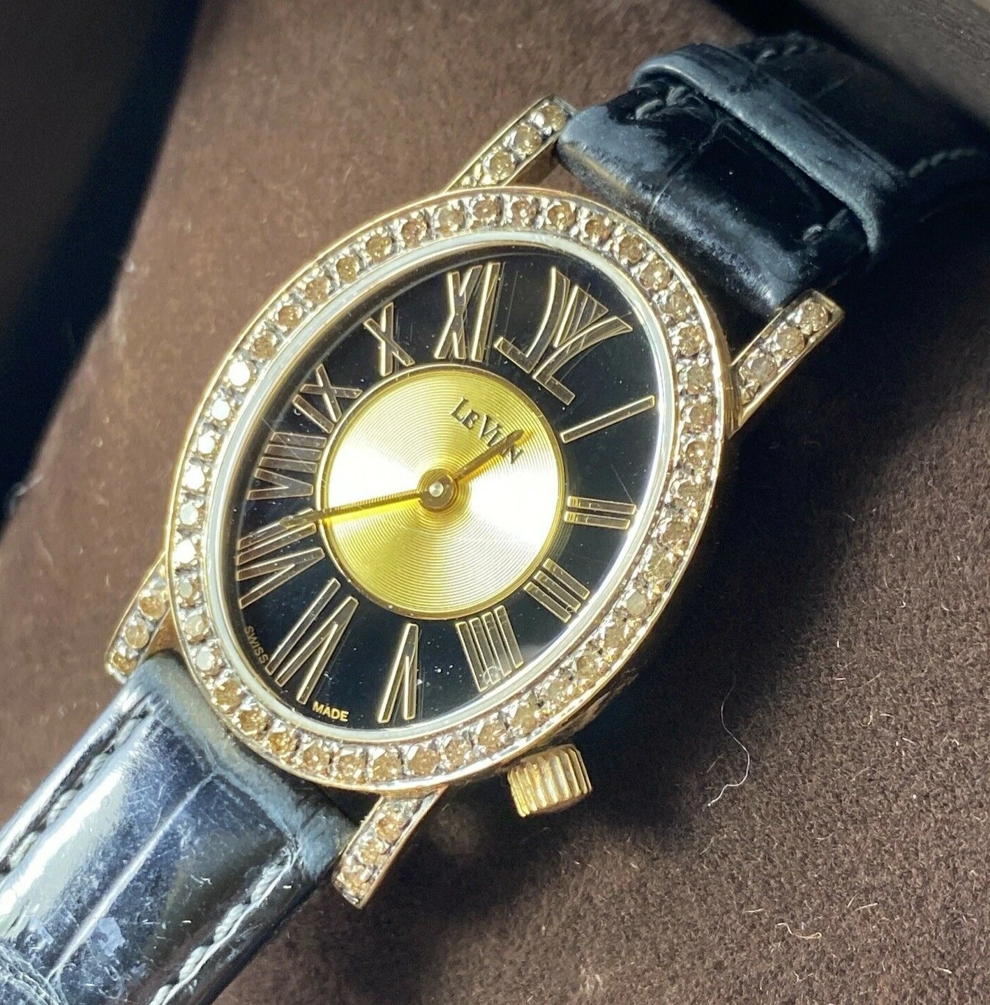 Levian Centurion Yellow Diamond 18K Yellow Gold Black Dial Watch Croc Band