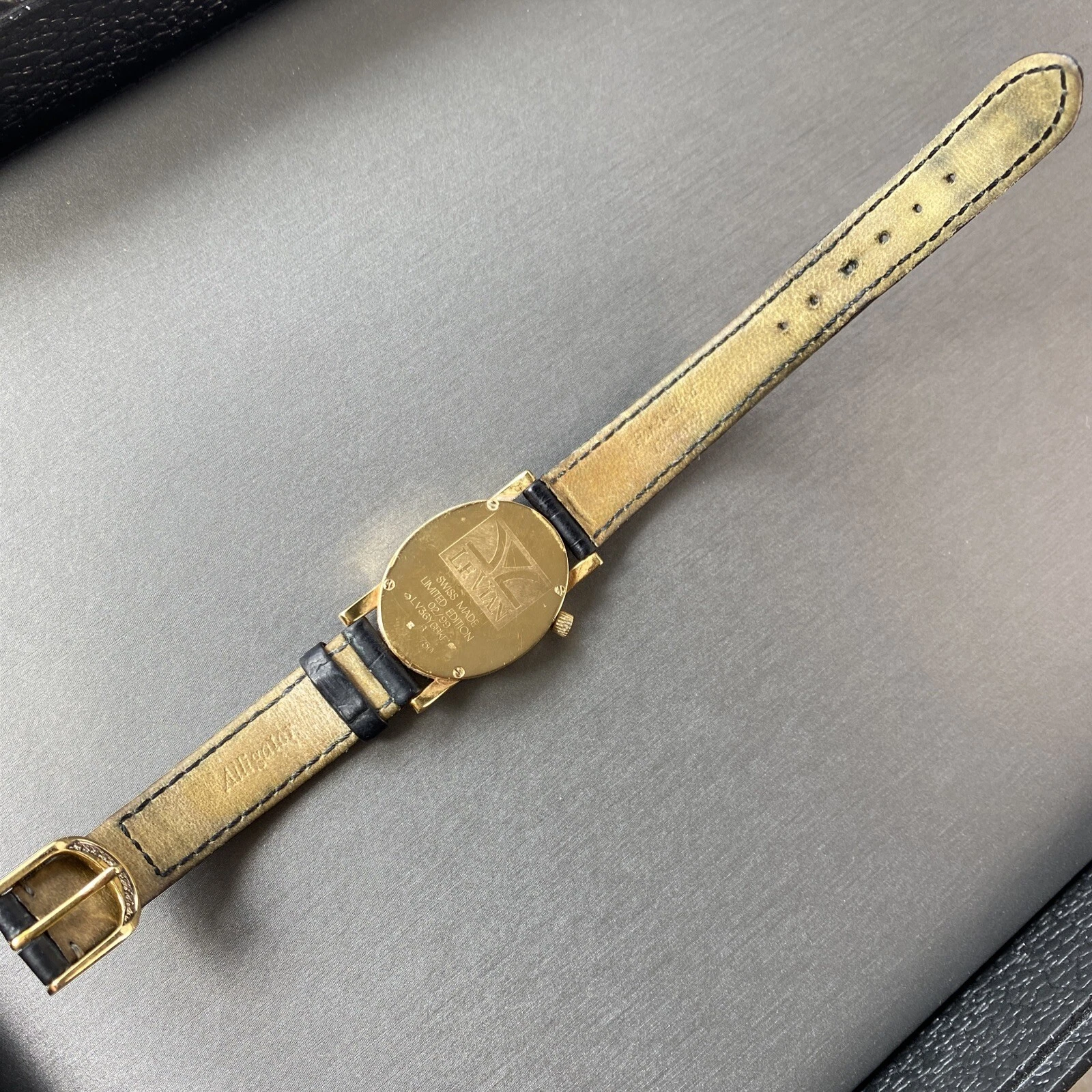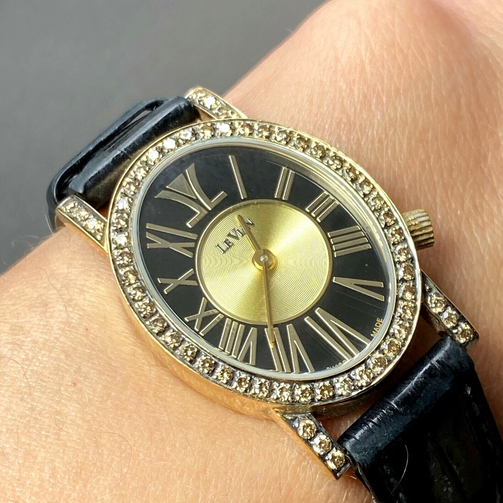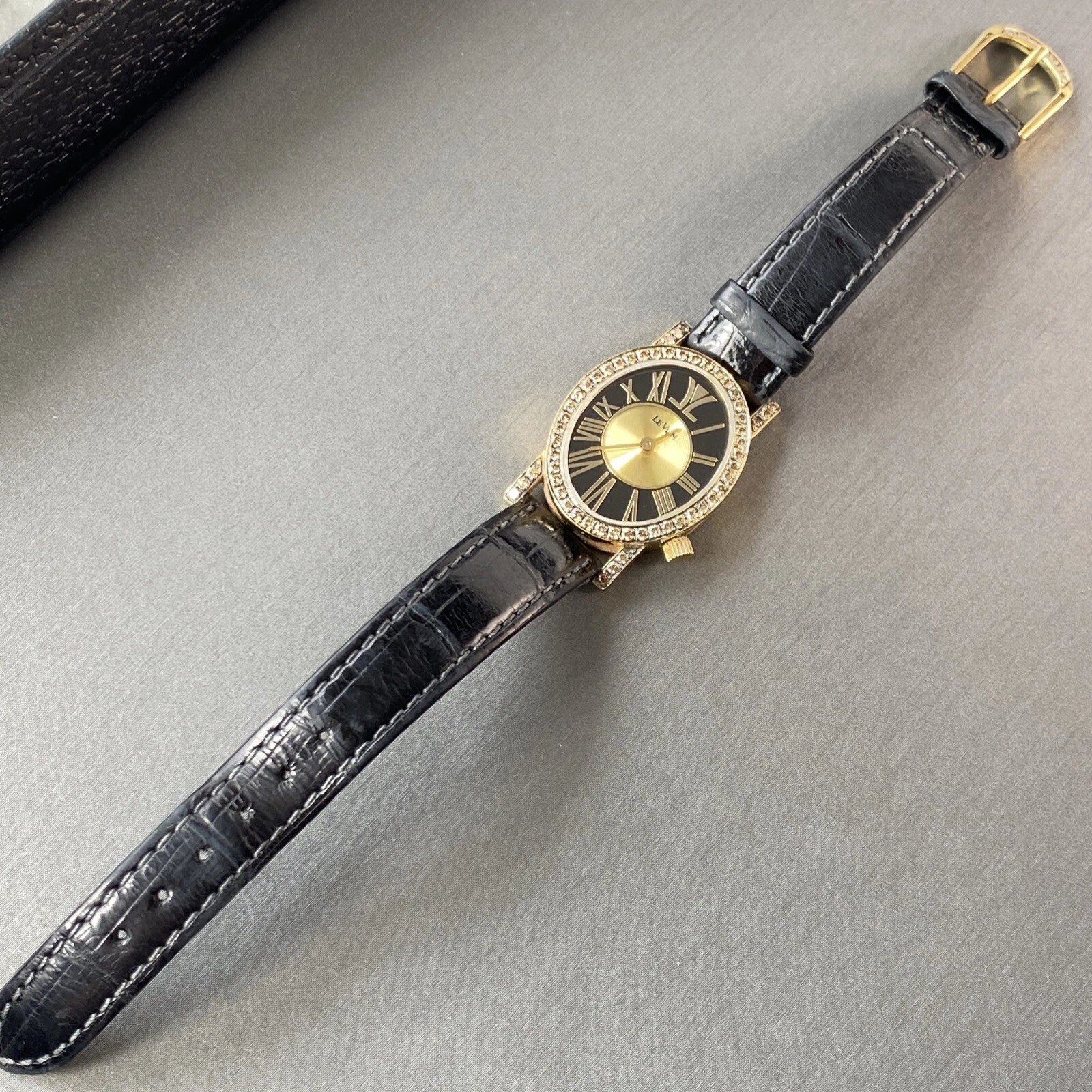 Levian Centurion Yellow Diamond 18K Yellow Gold Black Dial Watch Croc Band