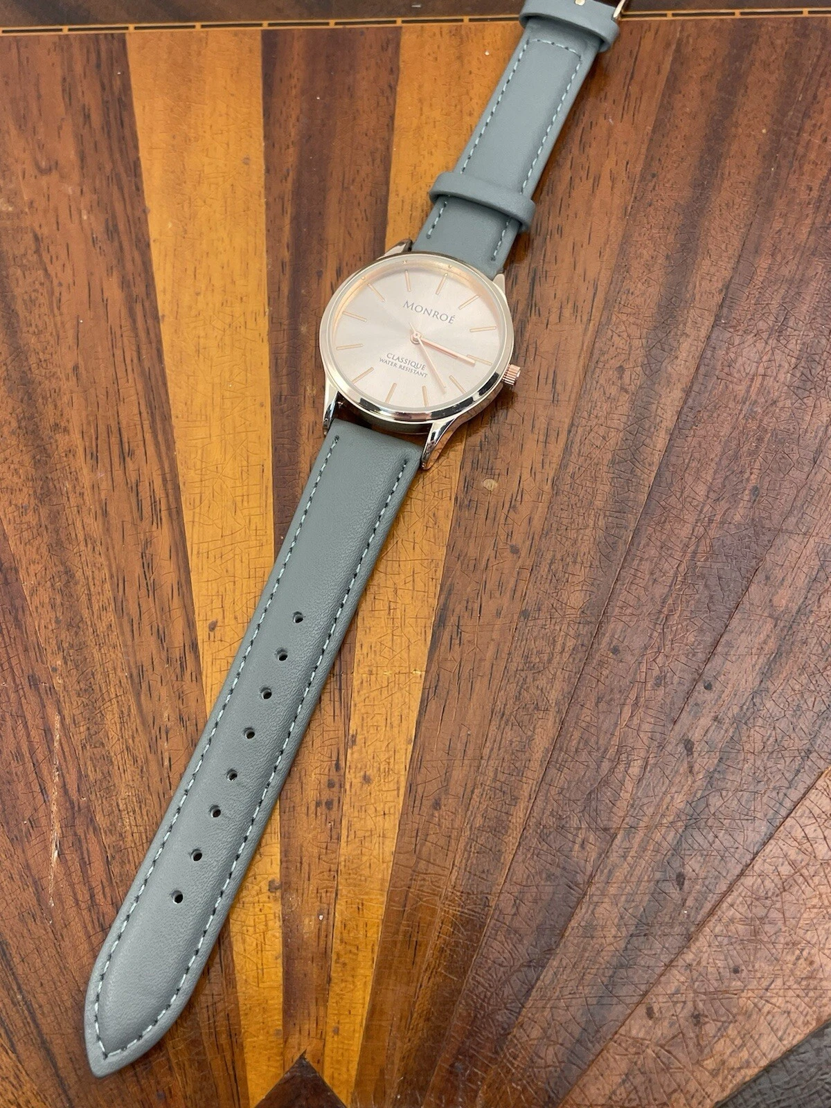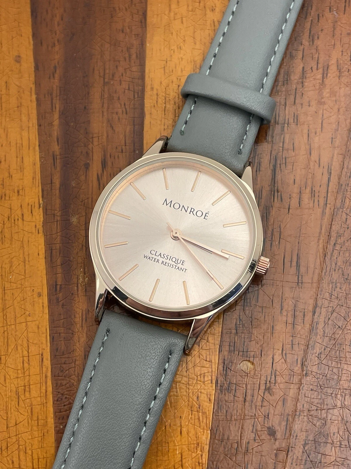 Monroe By Maestro Watch Women Rose Gold Grey Leather Band 36MM New Battery