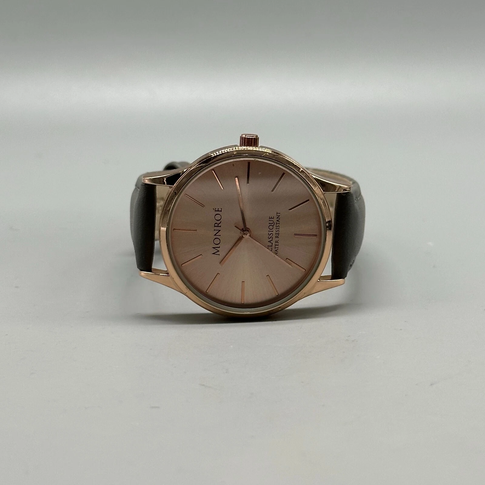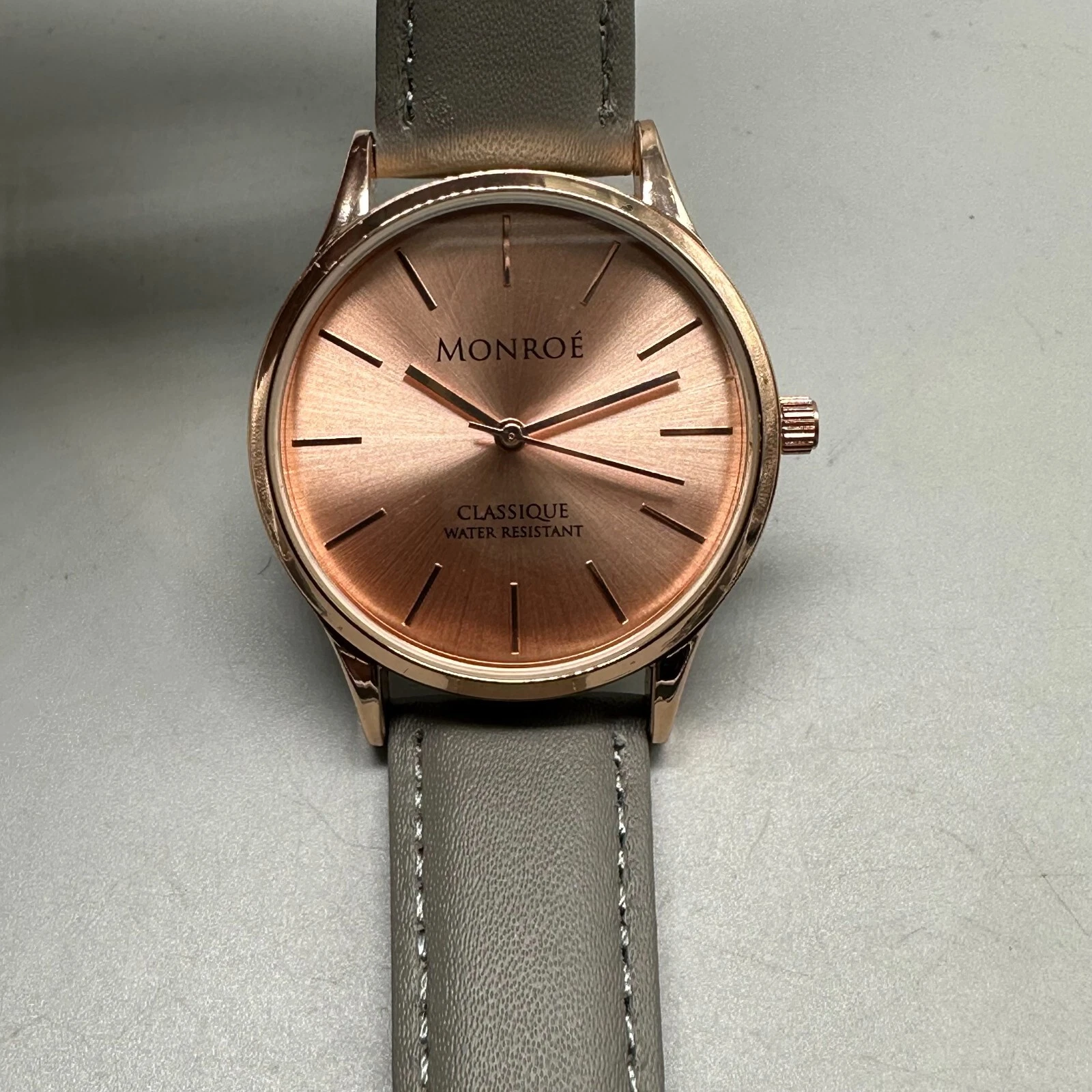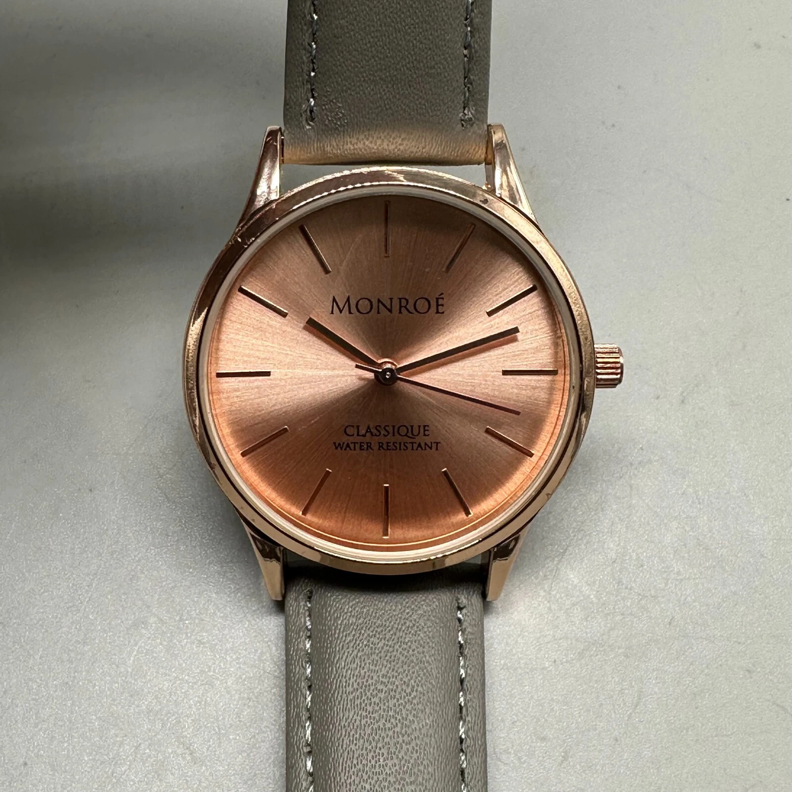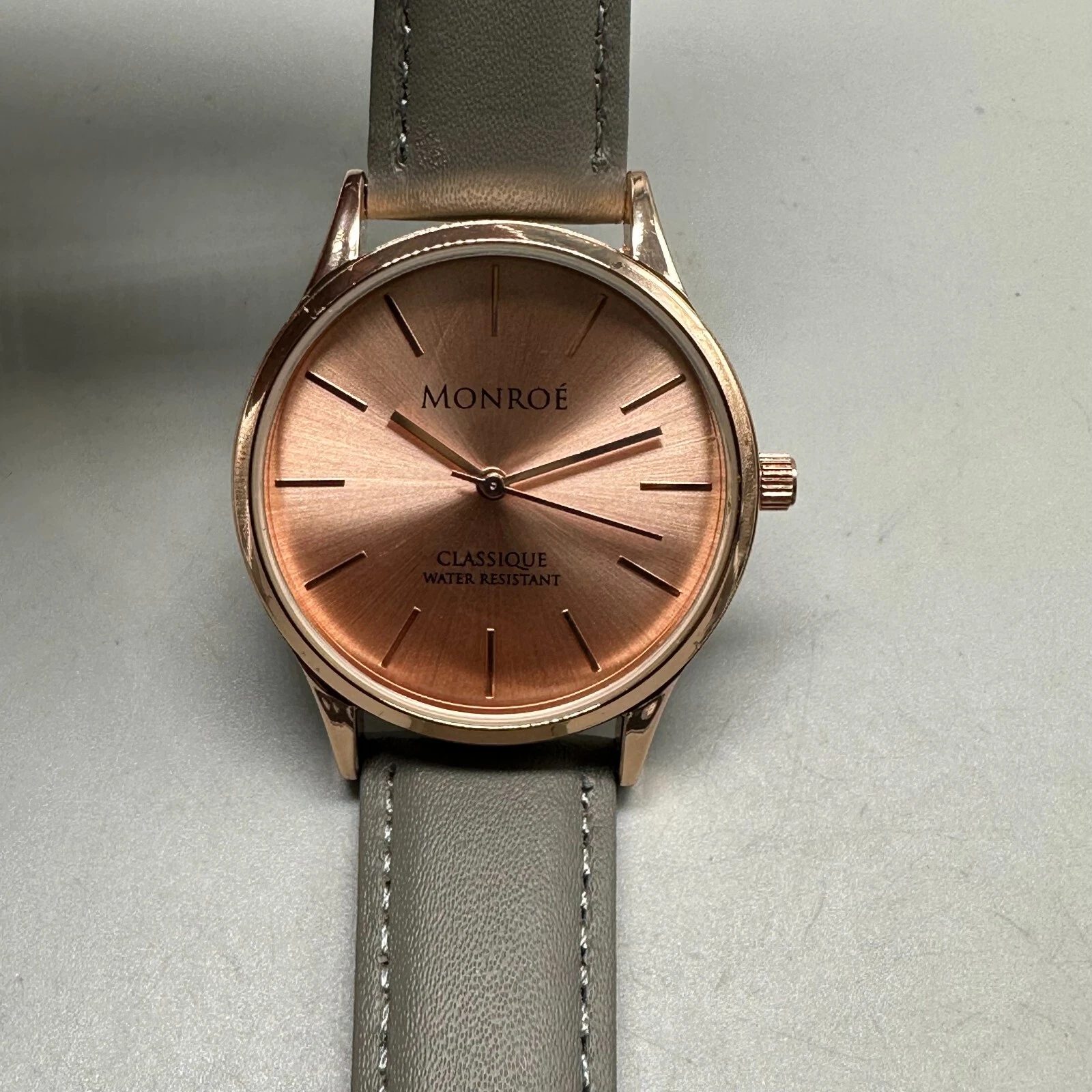 Monroe By Maestro Watch Women Rose Gold Grey Leather Band 36MM New Battery