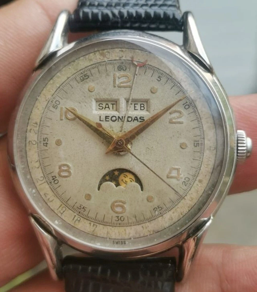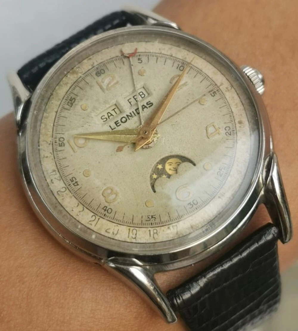 RARE ITEM!!! Leonidas Triple Date Moon Phase Gent's Early Elegant Vintage Watch