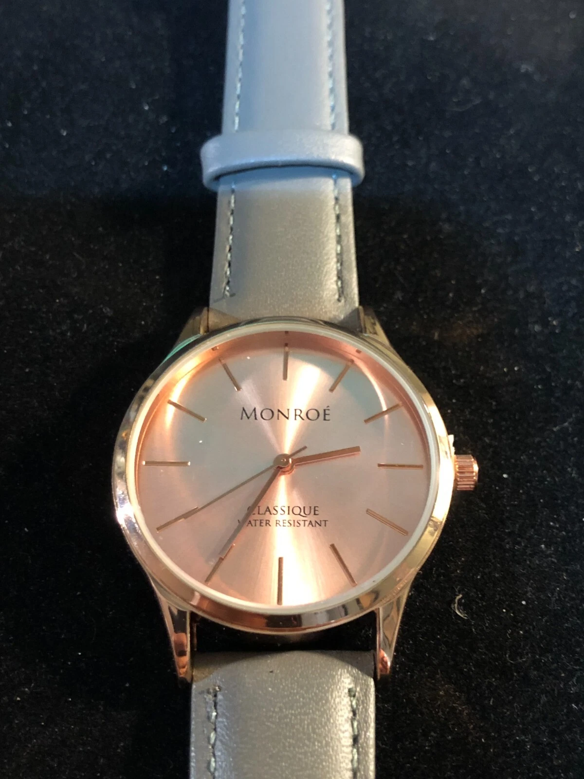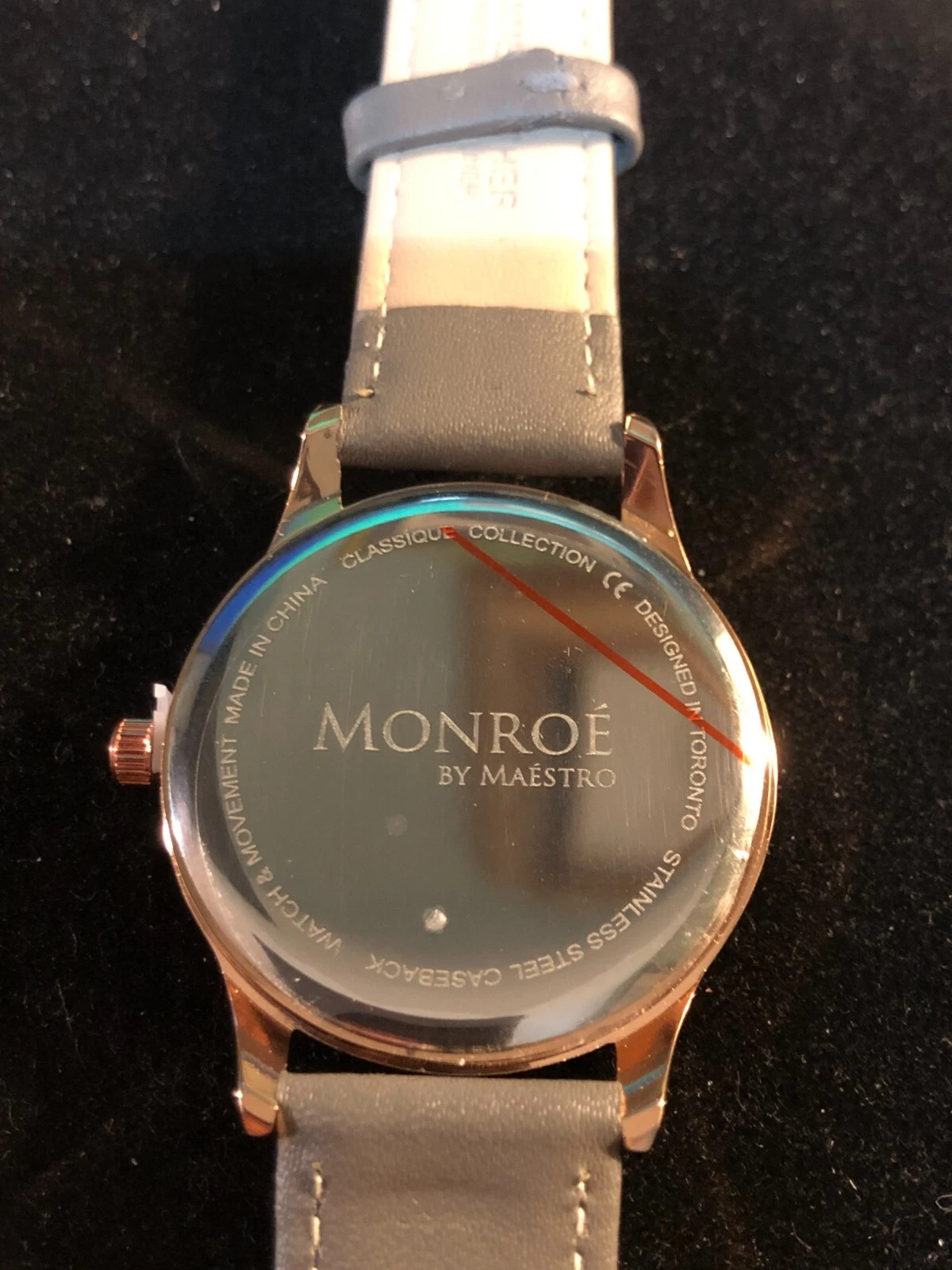 Monroe By Maestro Rose Gold Tone Dial Round Case Gray Leather Band Watch