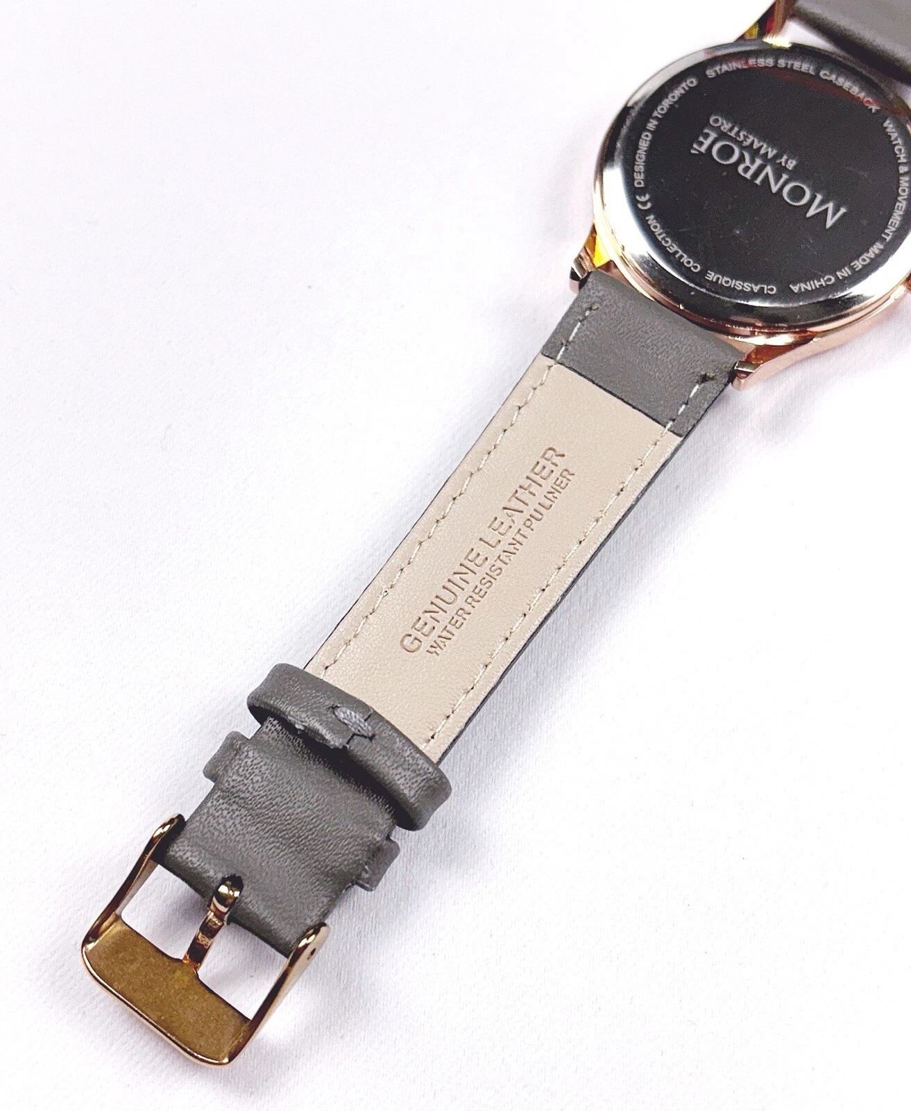NEW Gray LEATHER Maestro Monroe Womens Watch Rose Gold Time Accessories Gifts