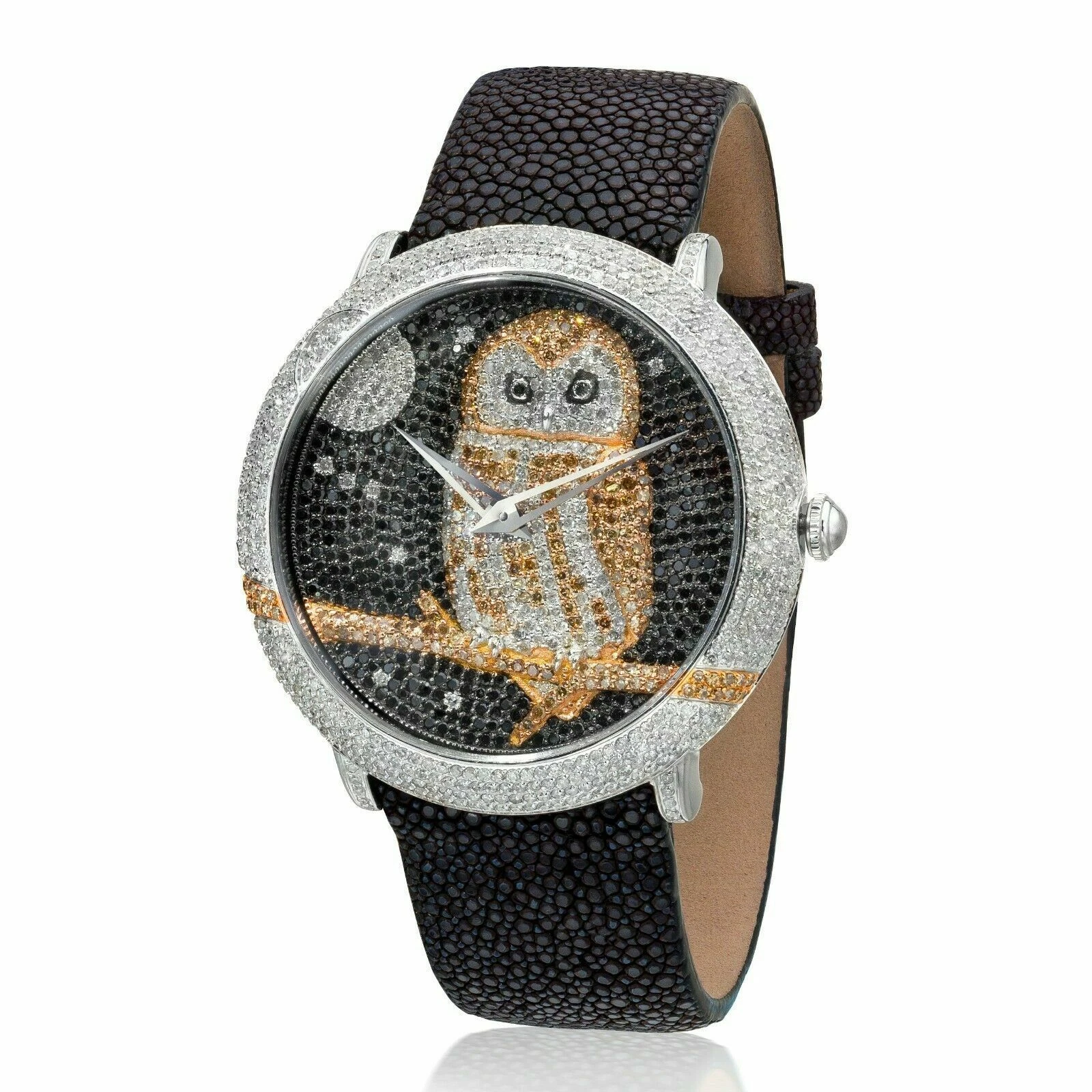 LeVian Stainless Steel H-I SI1 Black Chocolate Diamond 6.25 cts Owl Watch