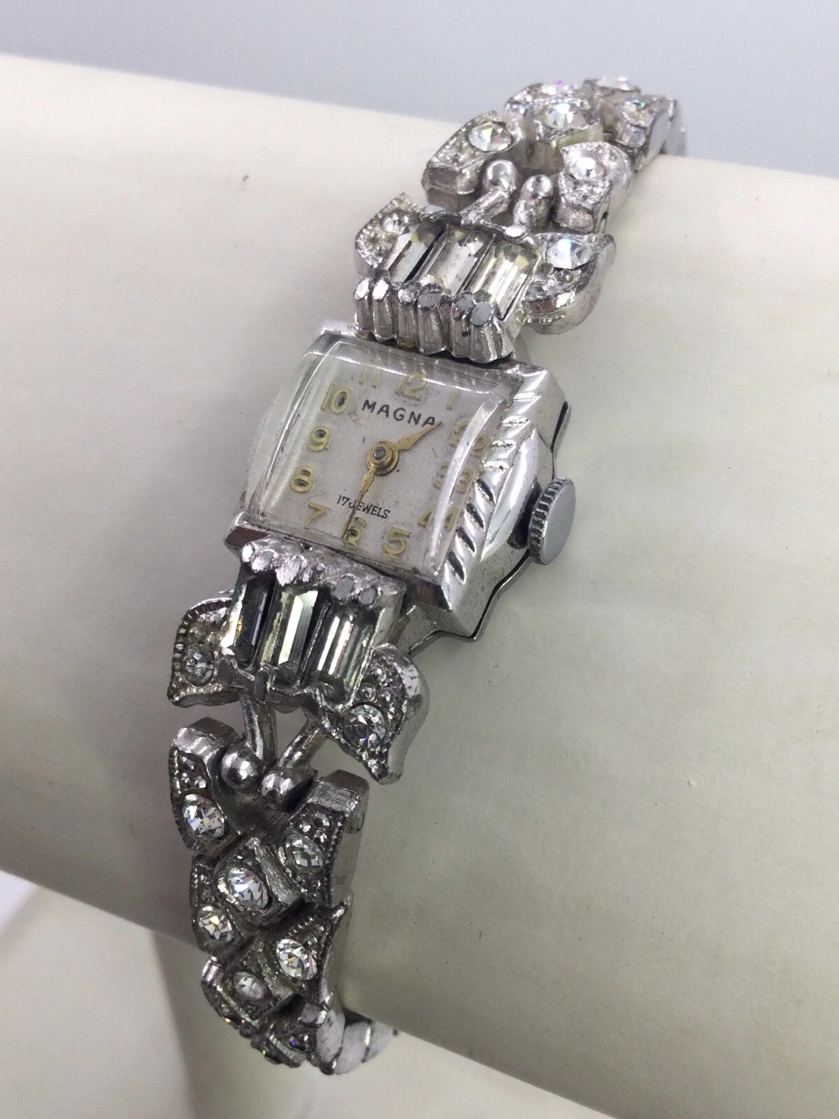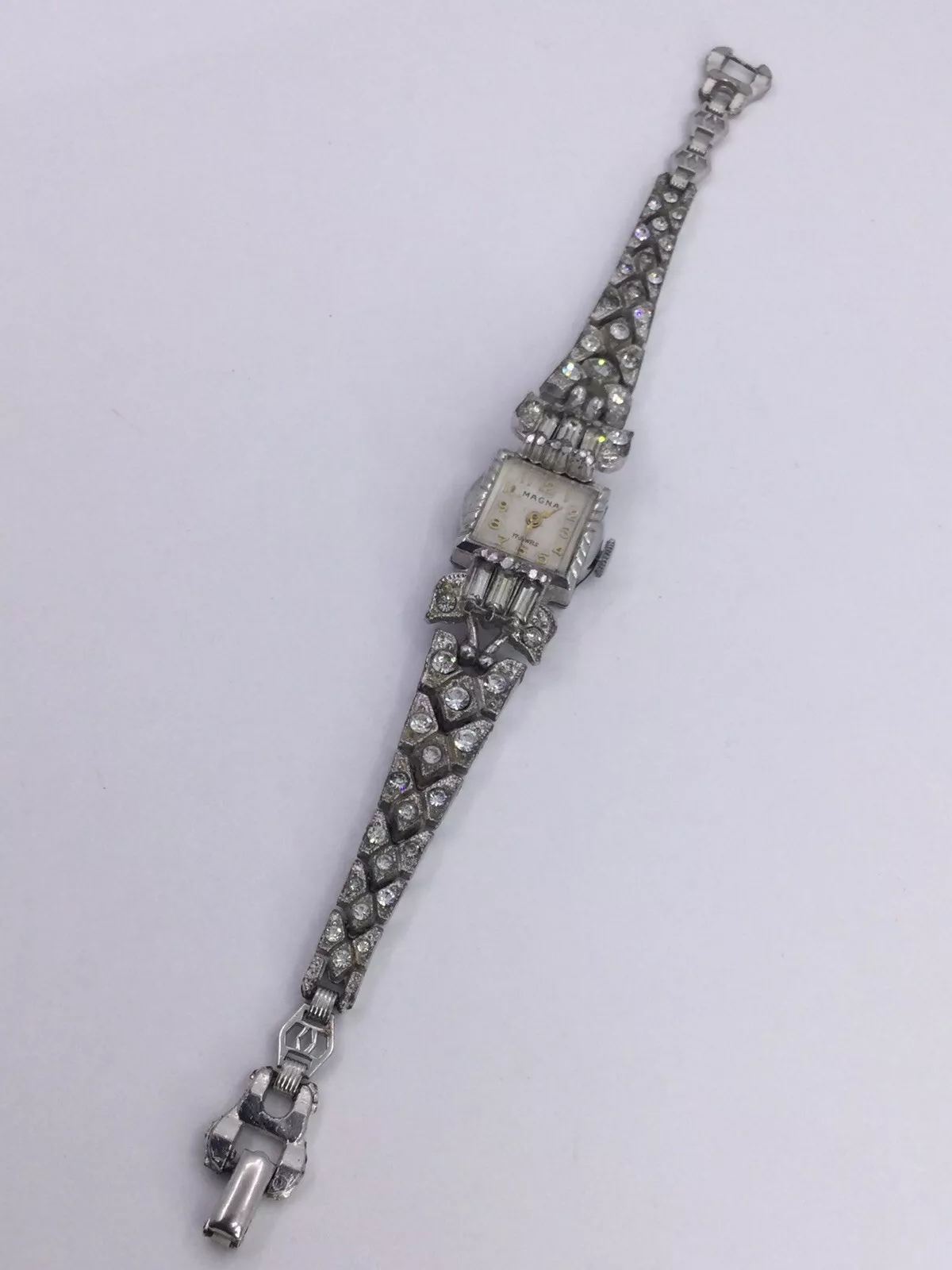 DECO 1930s/40s LADIES R. STONE PAVE WRIST WATCH - MAGNA SWISS - WORKING (W447)