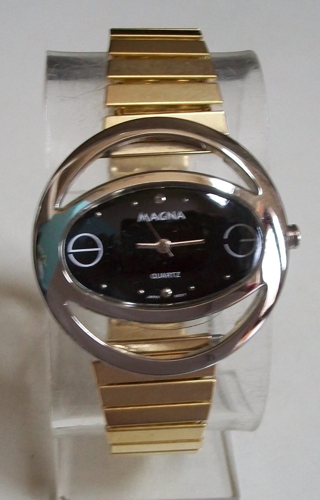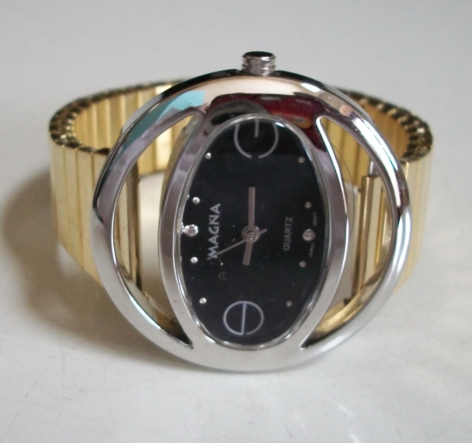 Women's casual stretch band Gold & Silver finish fashion Watch
