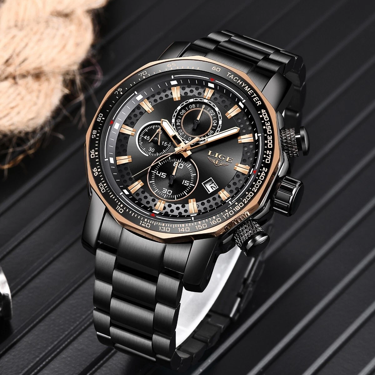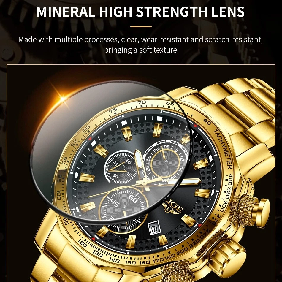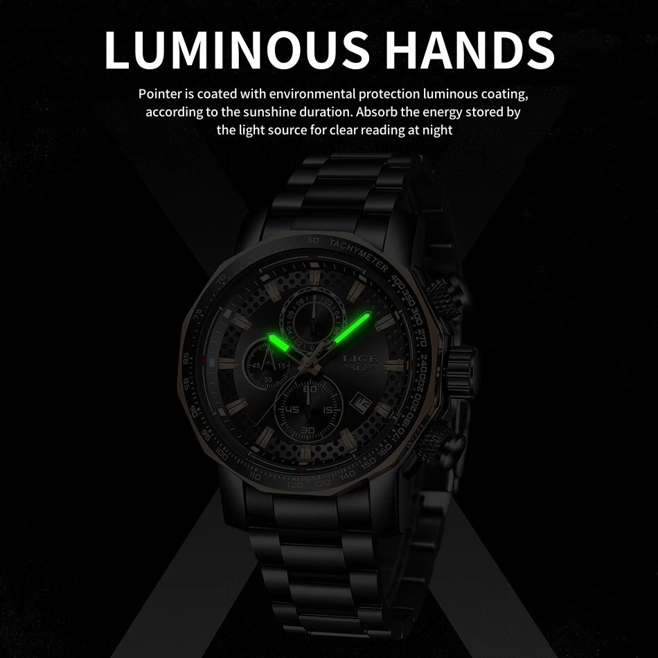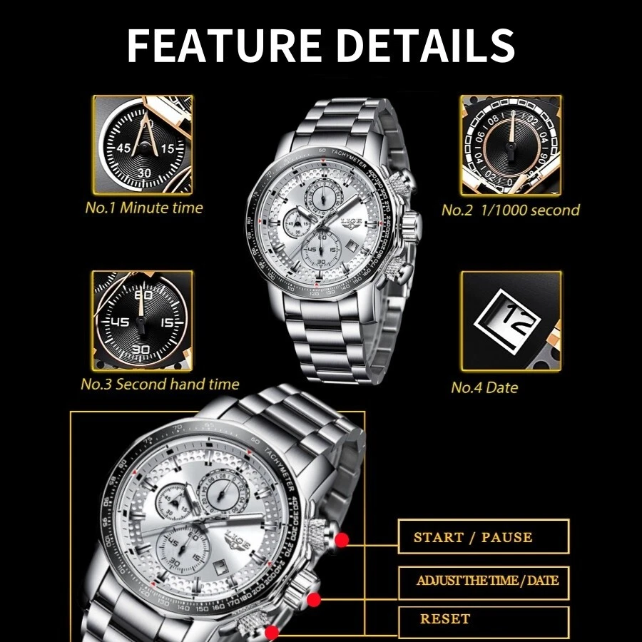 Fashion Men Watch Waterproof Luminous Stainless Quartz Date Multifunction Watch