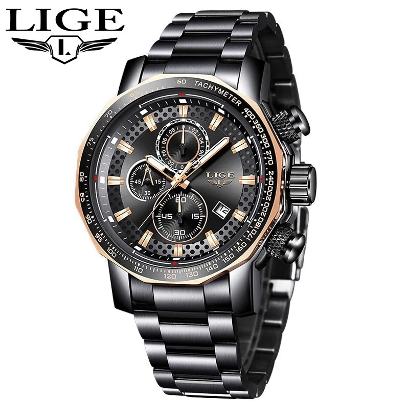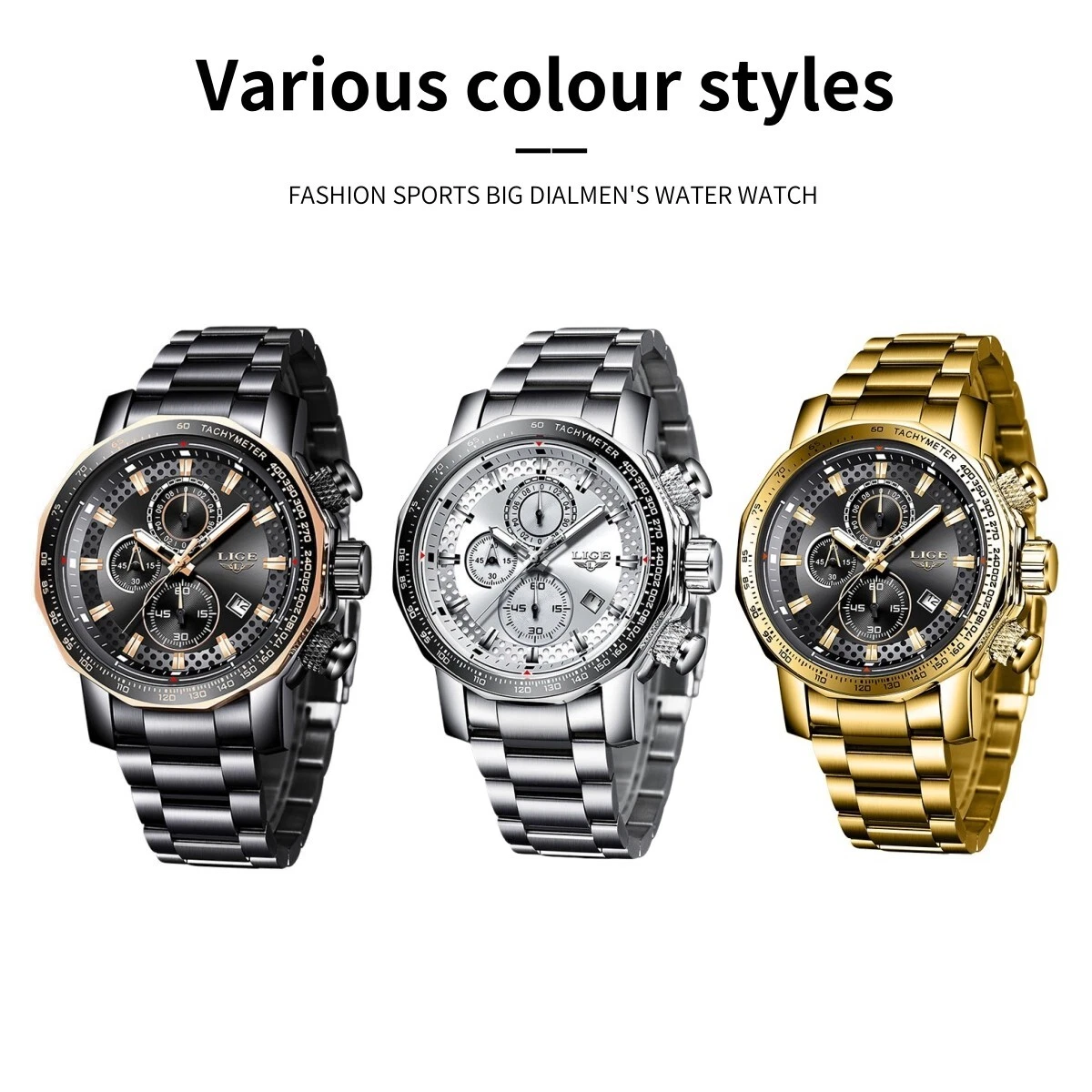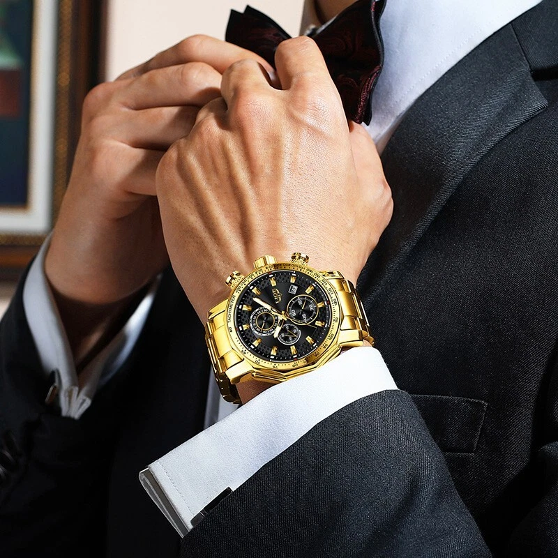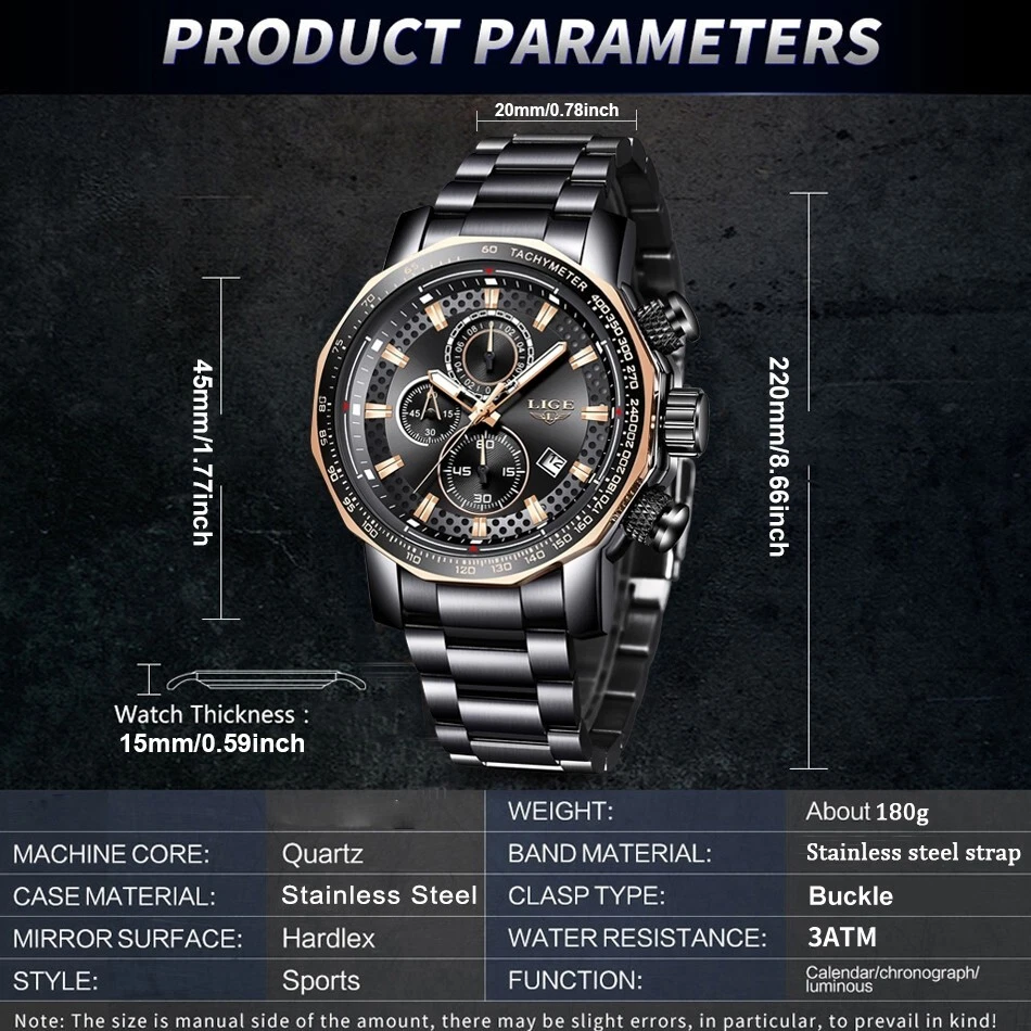 Fashion Men Watch Waterproof Luminous Stainless Quartz Date Multifunction Watch