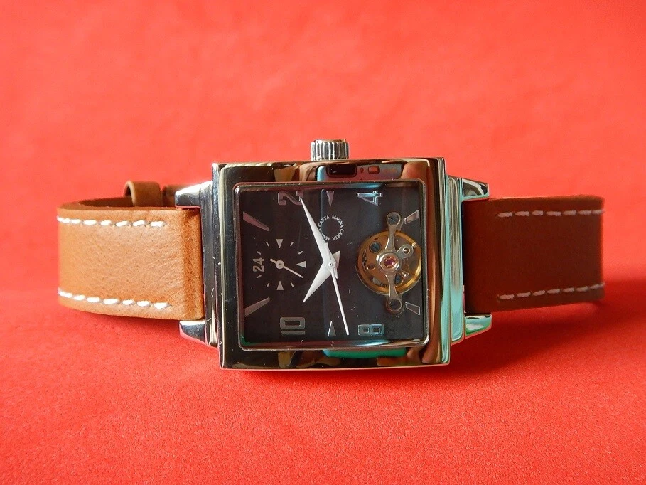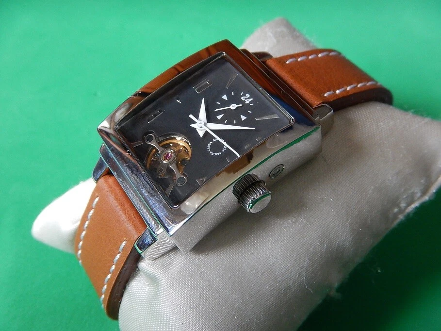 New Open Heart Automatic Steel Rectangle GMT 24H 2nd Time Zone Warranty