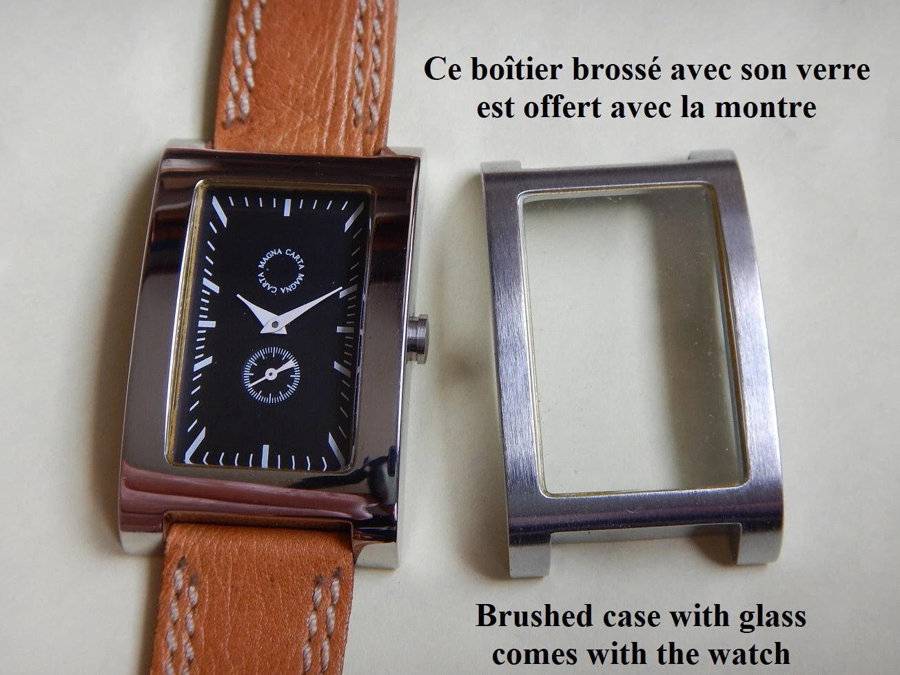 Elegant Magna Carta Tank New Black Steel Dial Brushed Or Polished Case