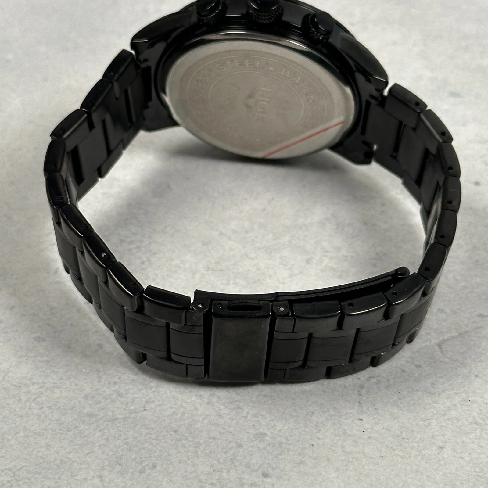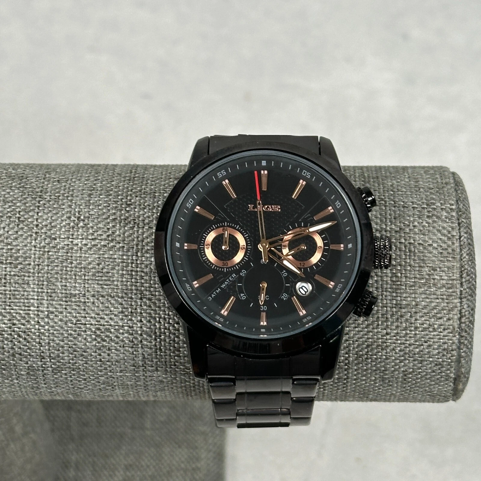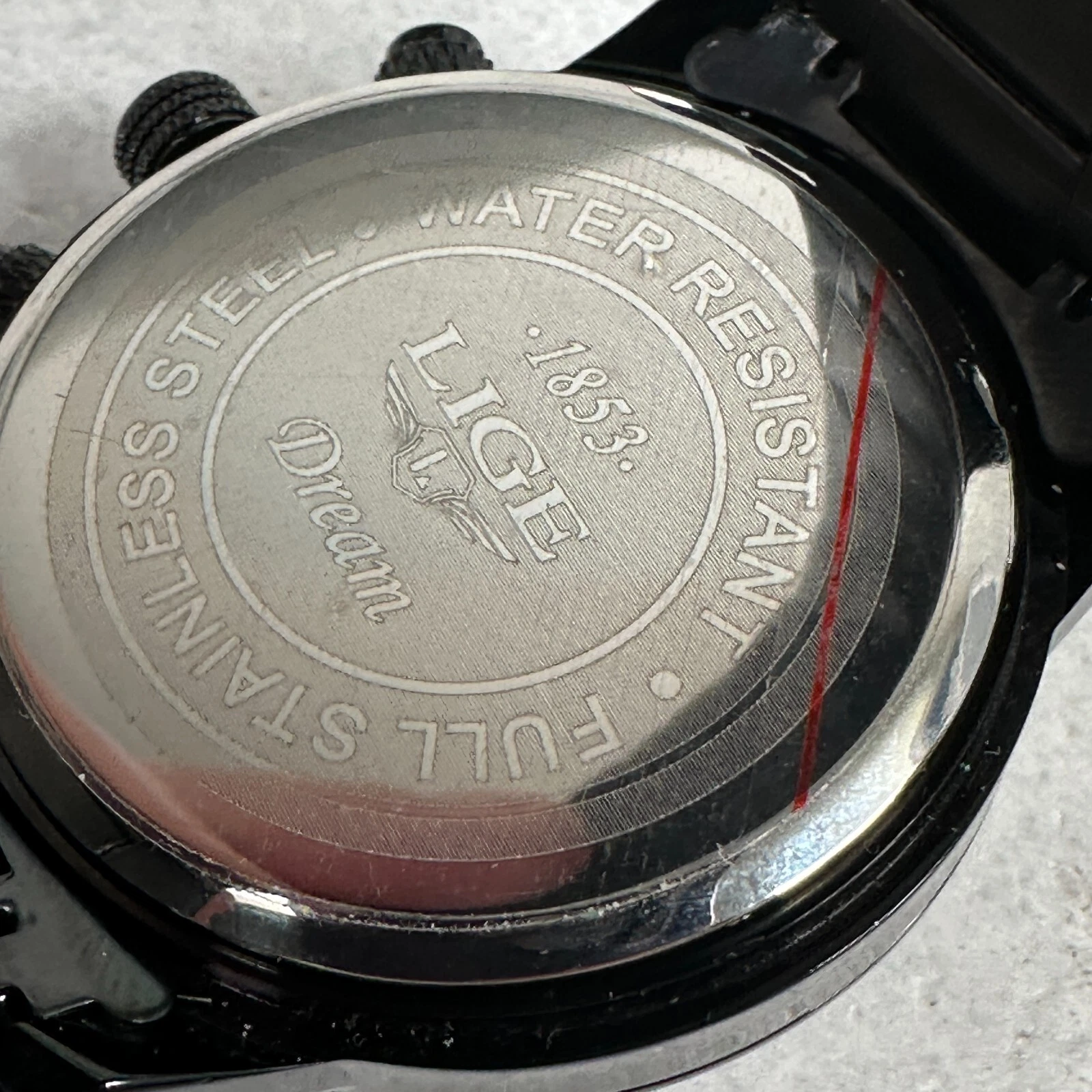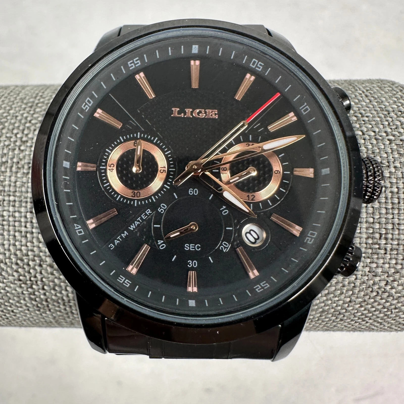 Lige Watch Mens 42mm Black Date Chrono 8" Stainless Steel Quartz New Battery