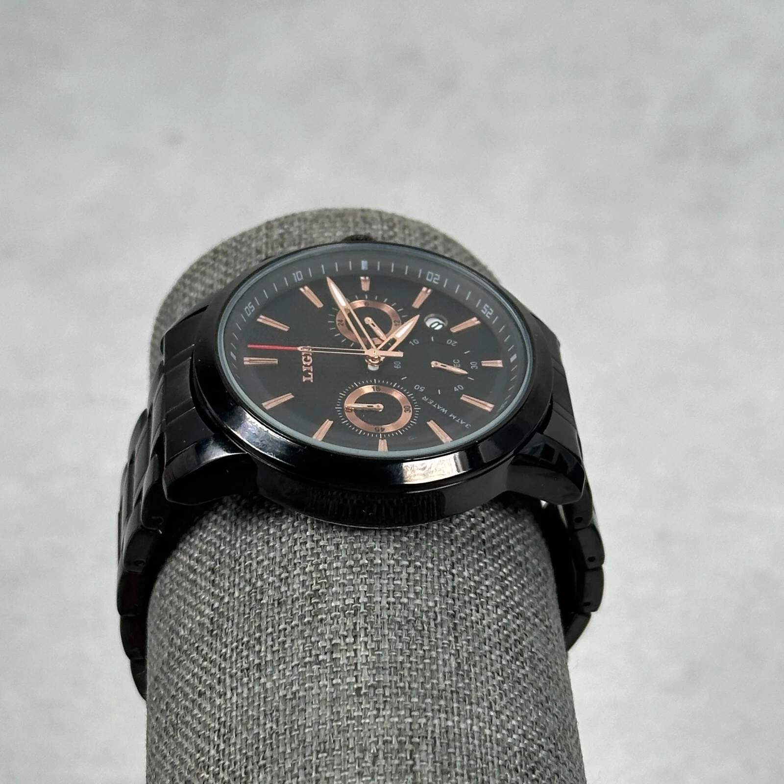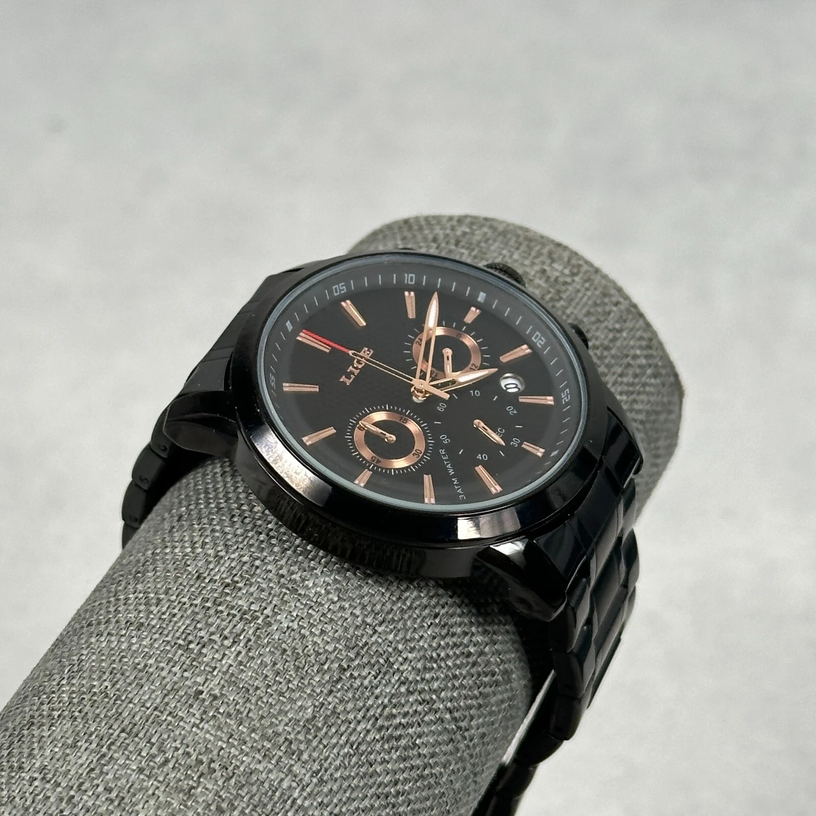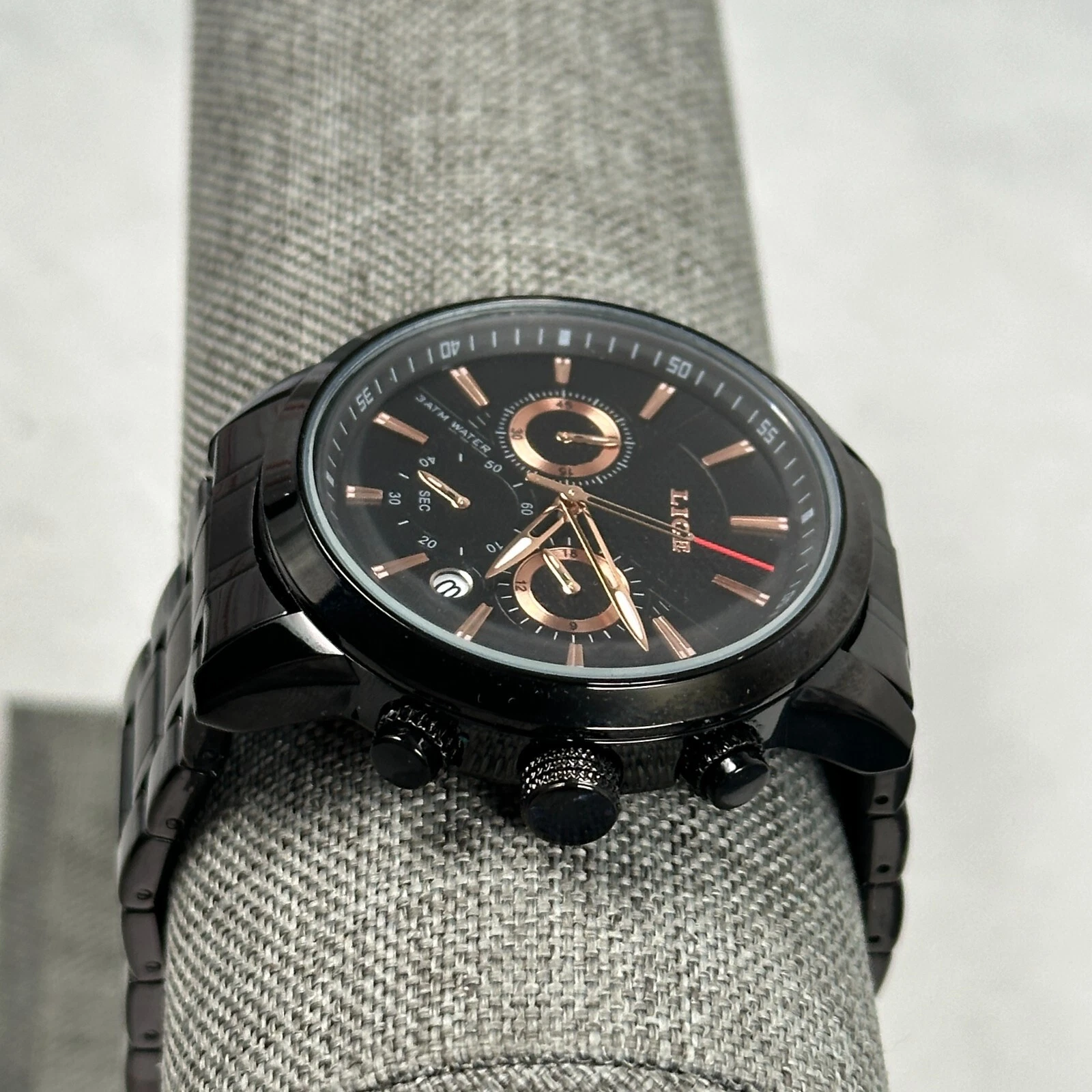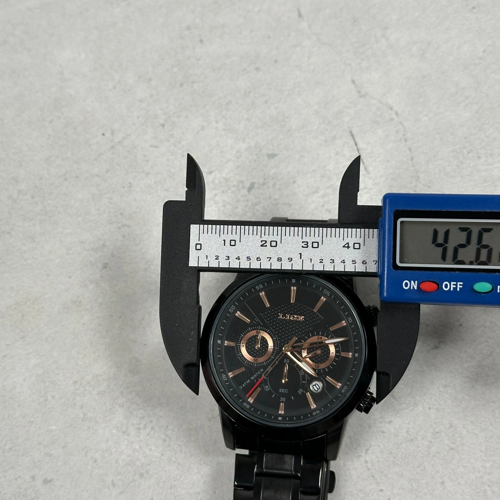 Lige Watch Mens 42mm Black Date Chrono 8" Stainless Steel Quartz New Battery