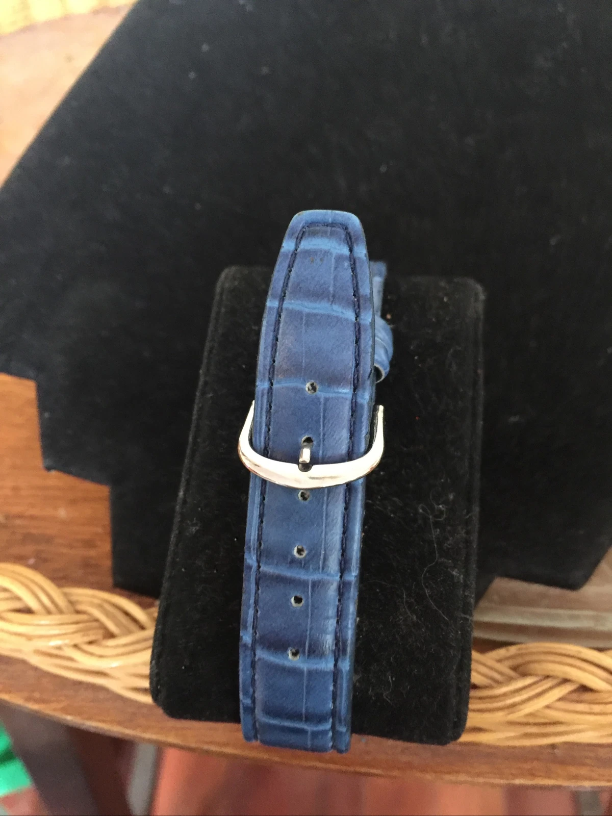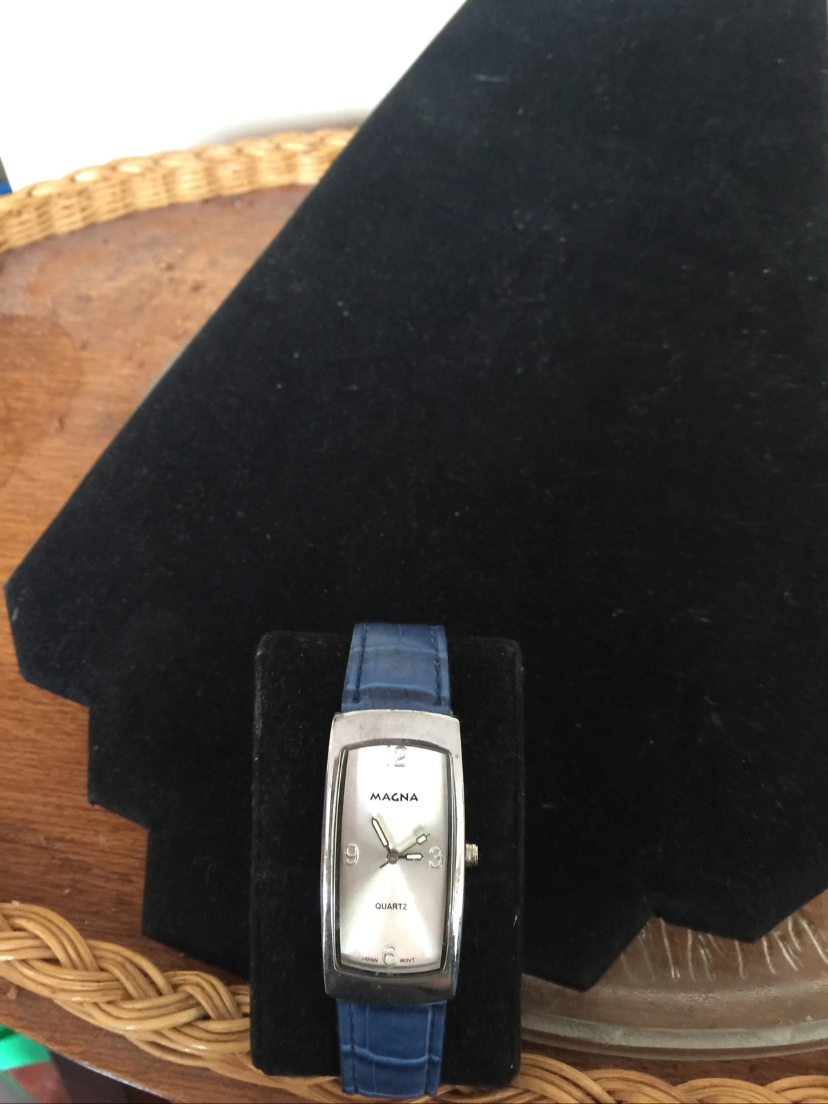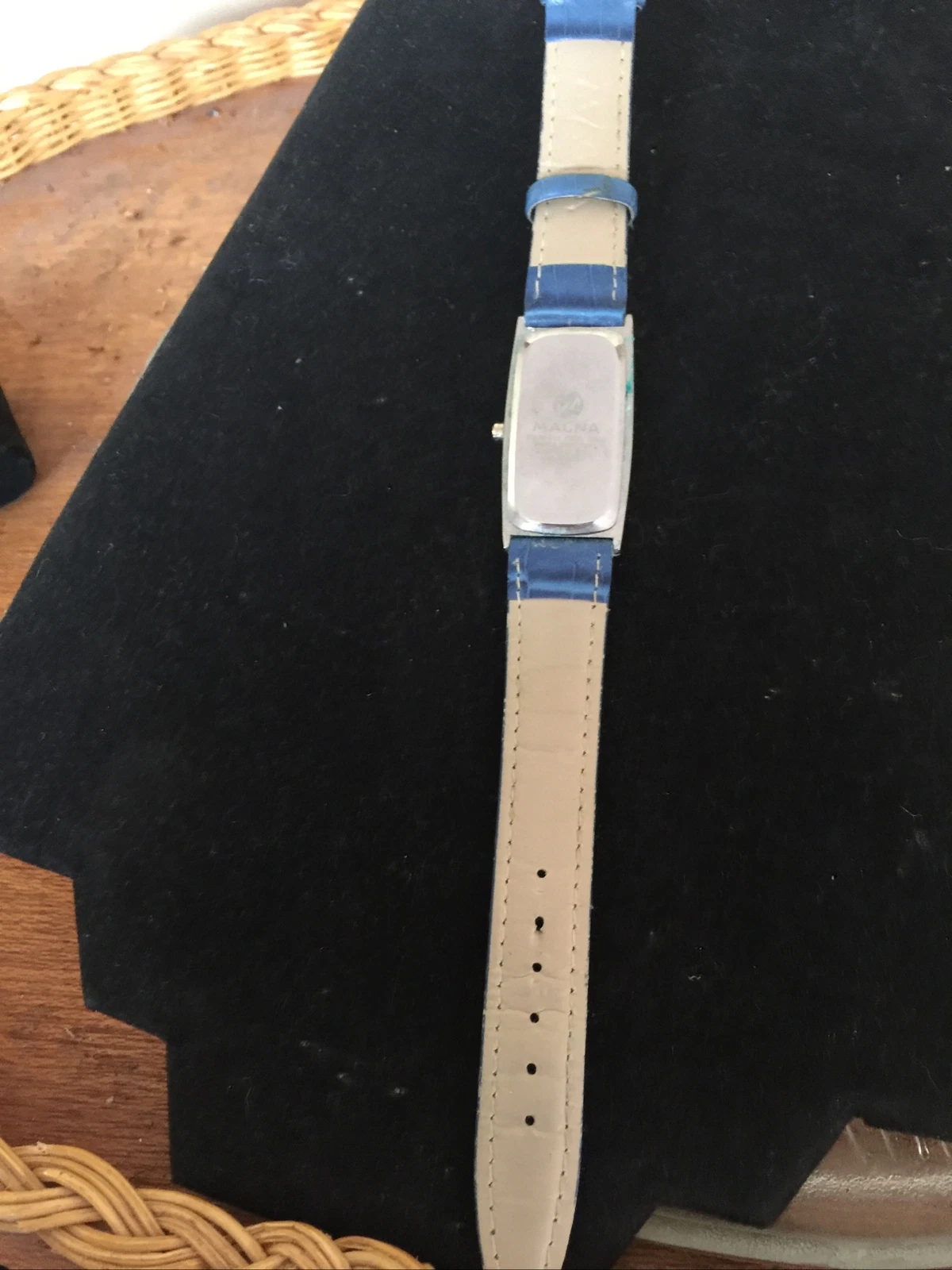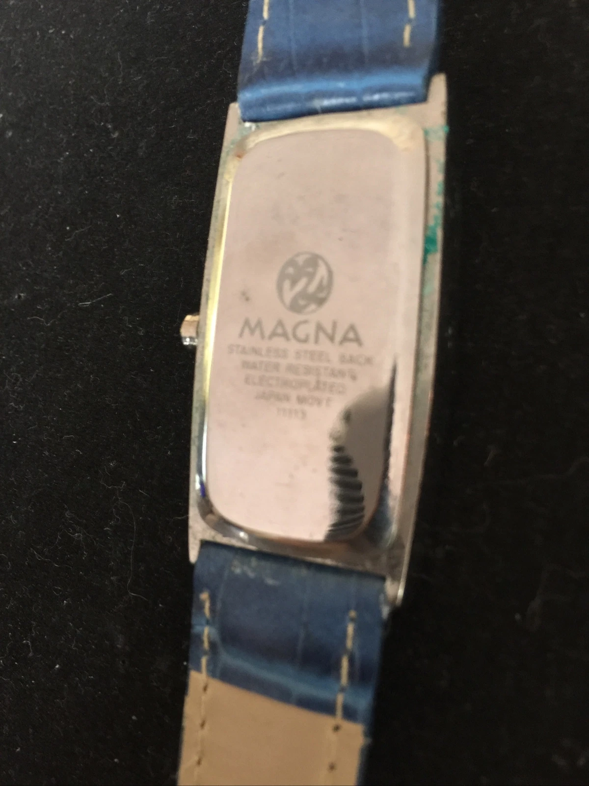 Vintage Magna rectangular faced Watch blue leather strap needs battery