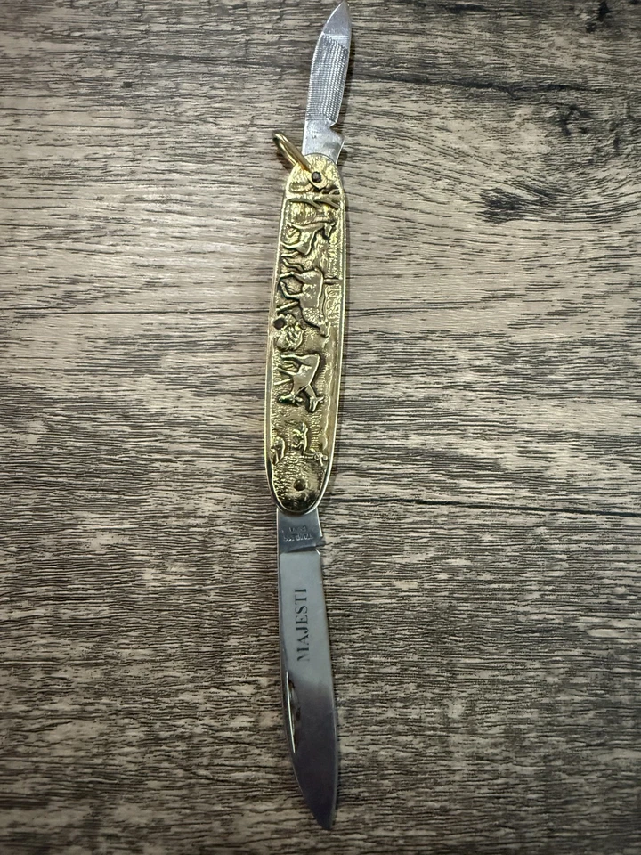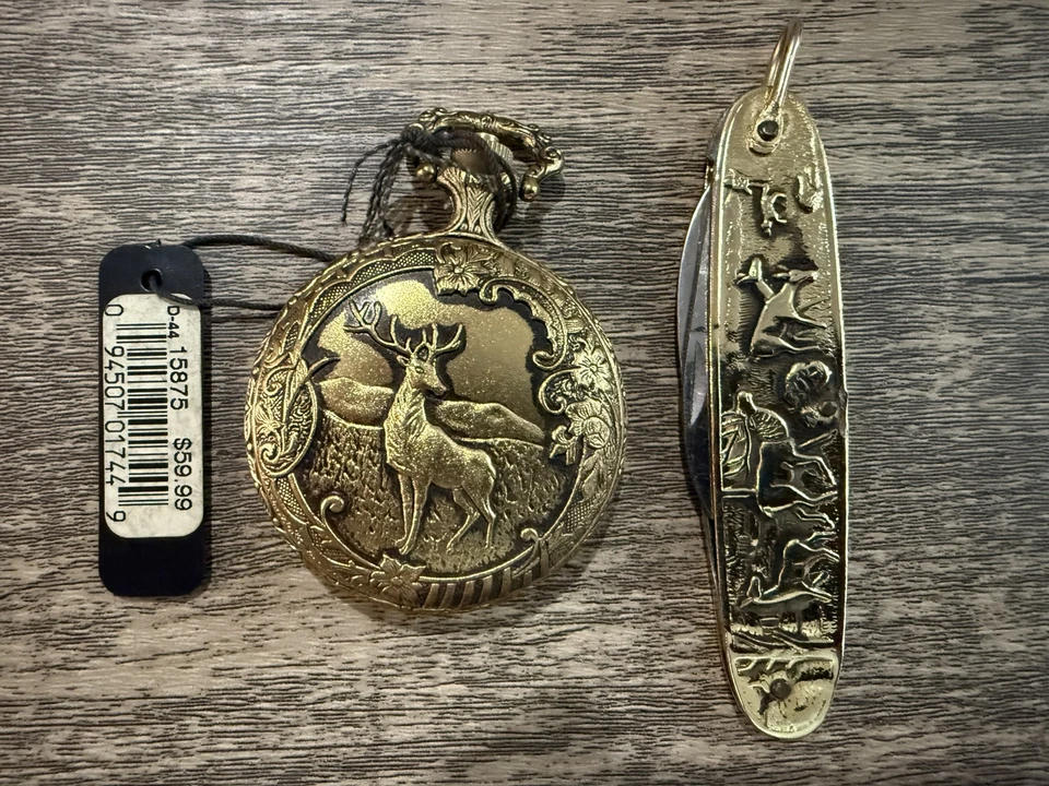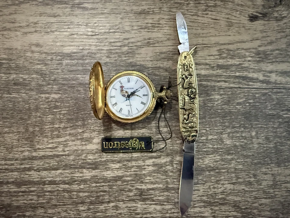 Vintage Majestron Hunting Themed Pocket Watch & Knife Deer Design