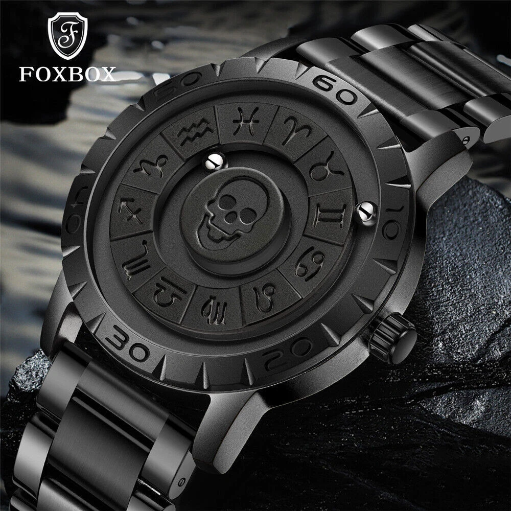 FOXBOX Men Sport Watch Mirrorless Magnetic Bead Constellation Steel Wristwatch