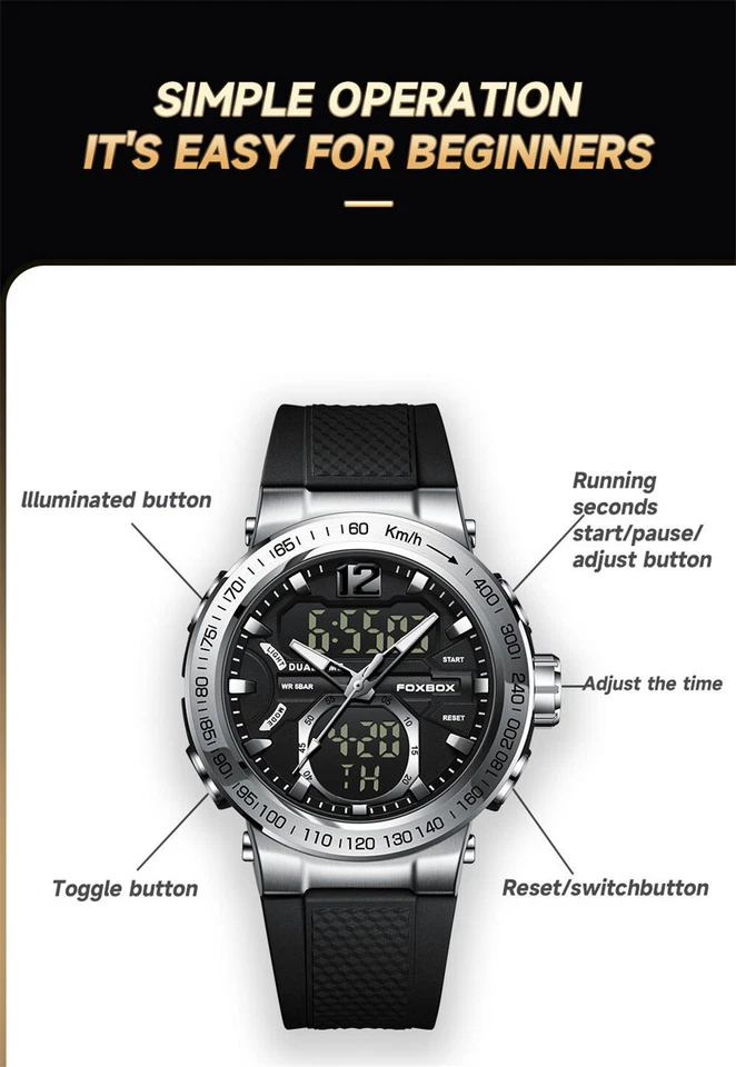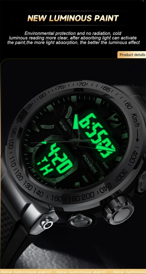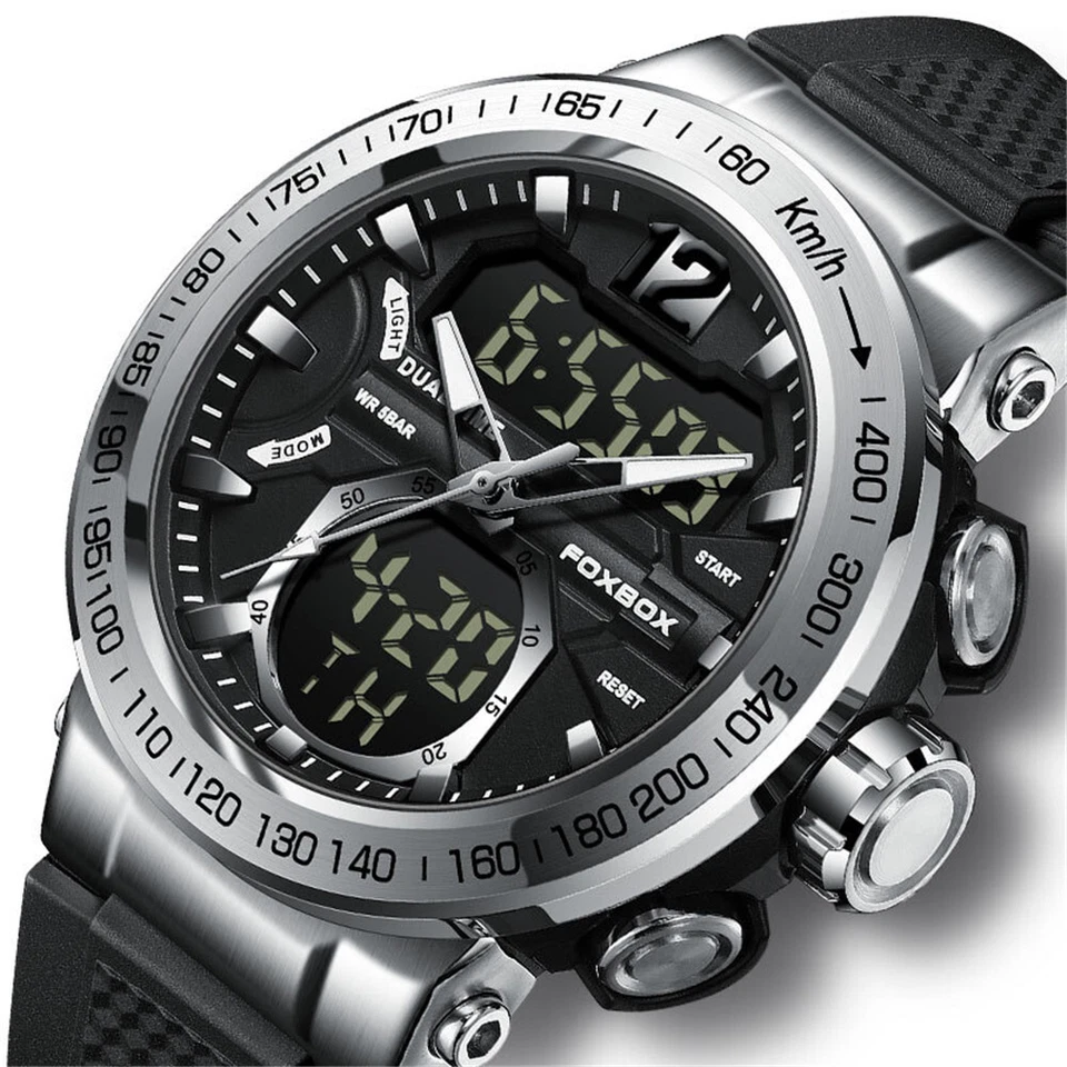 LIGE FOXBOX Men Watches Digital Sport Wristwatch Big Dial LED Quartz Watch
