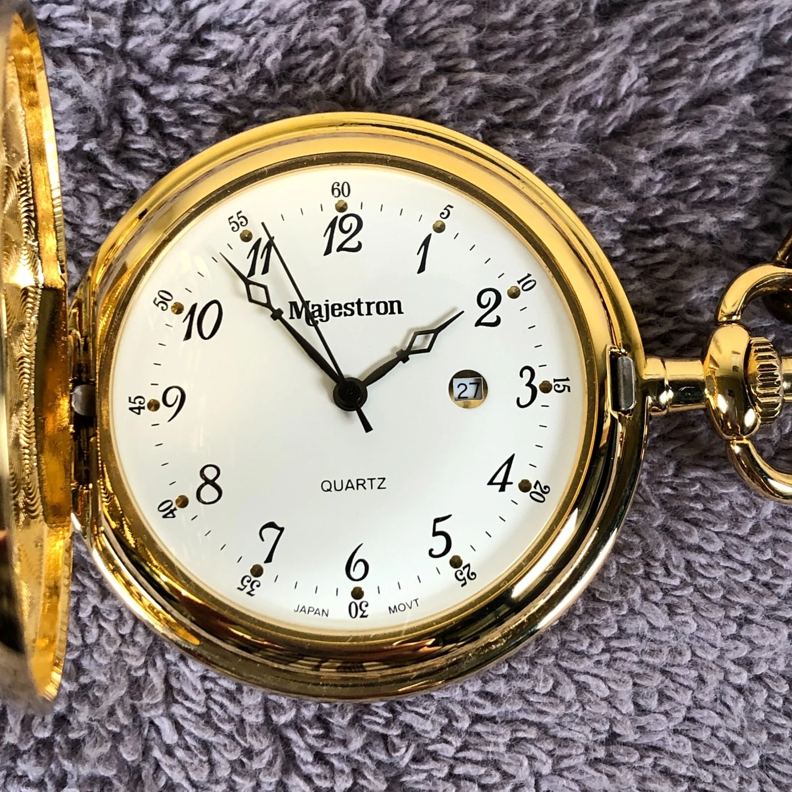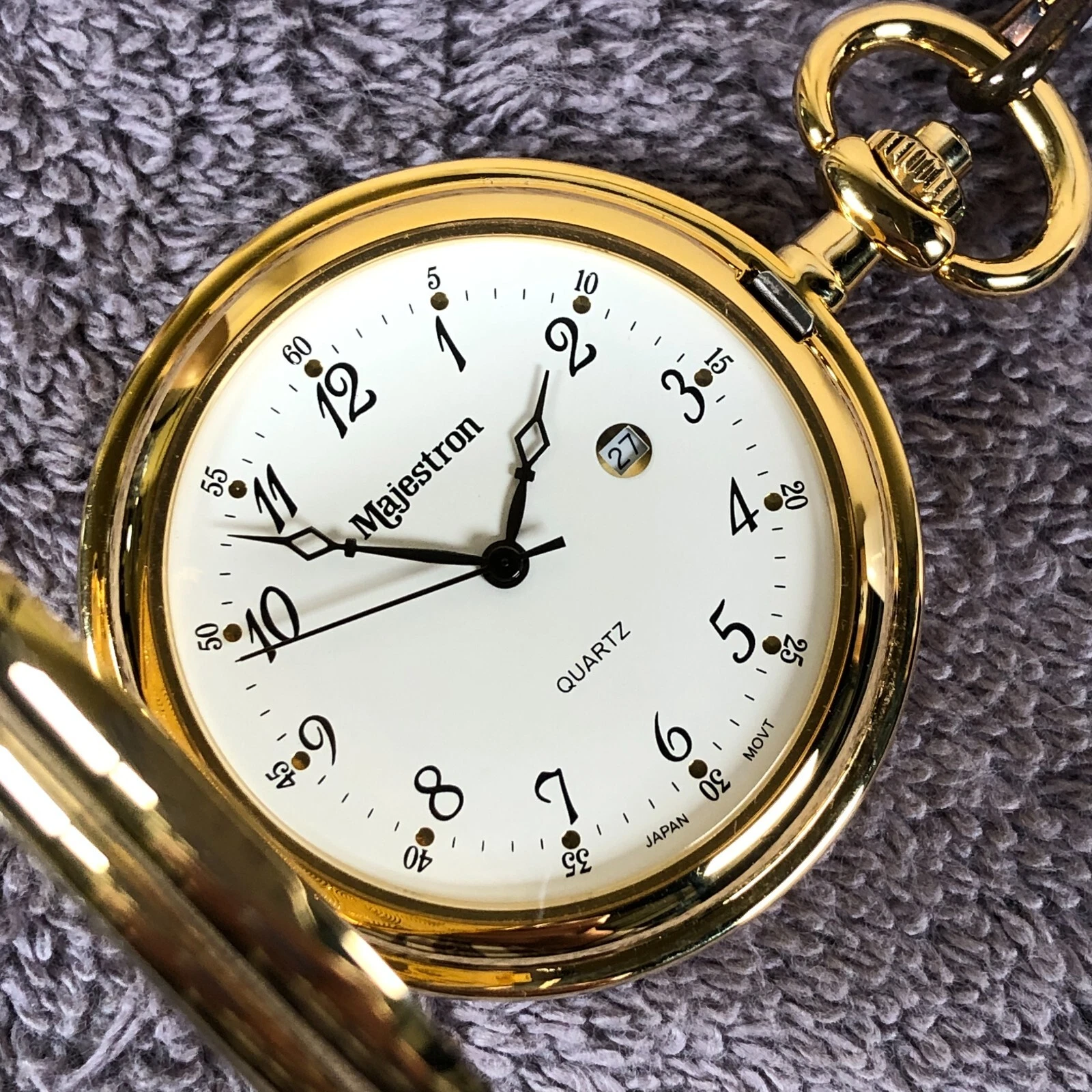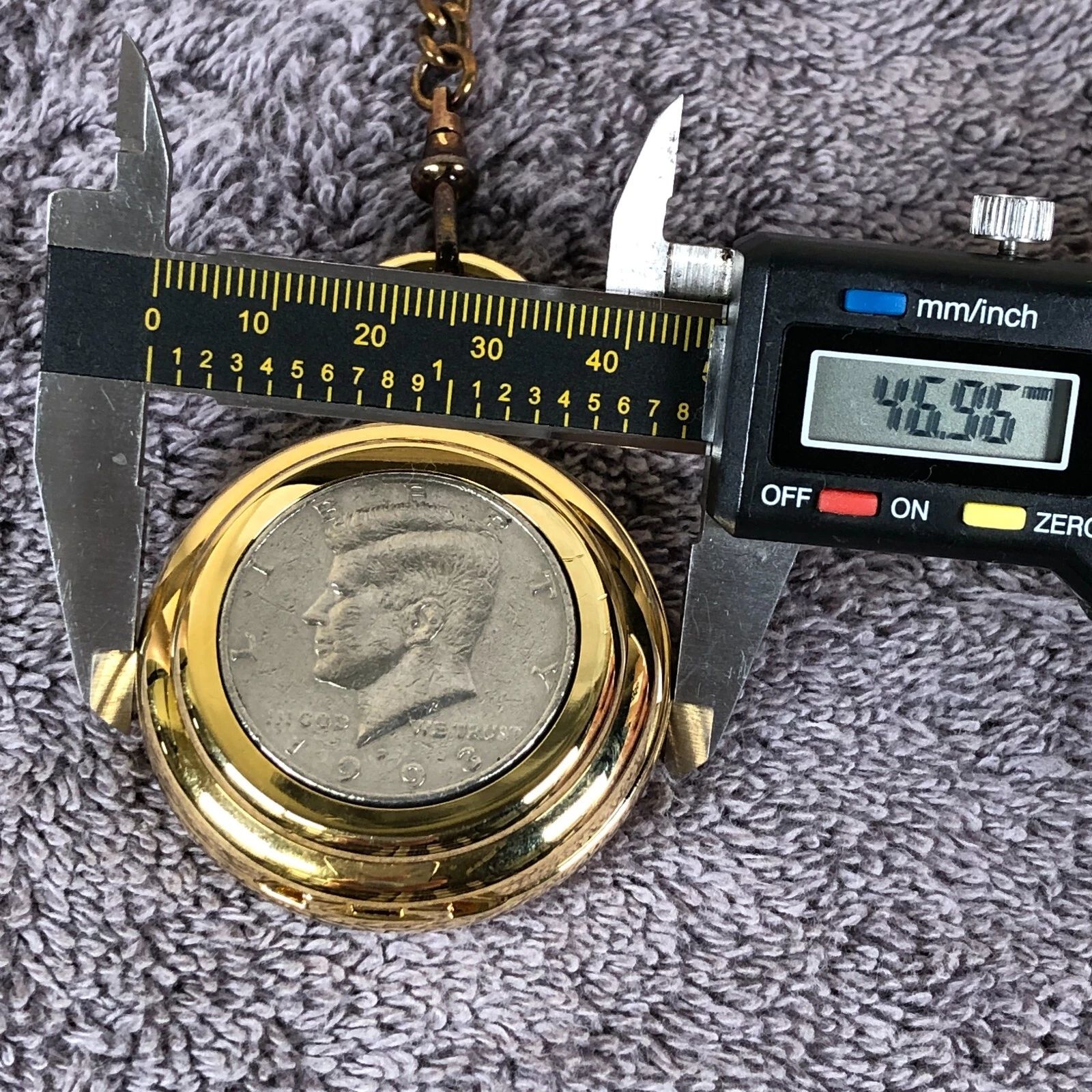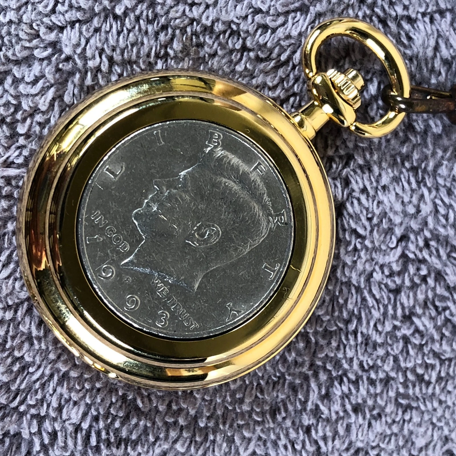 Majestron Gold Chain Tone Colibri Half Dollar JFK Flip Cover Quartz Pocket Watch