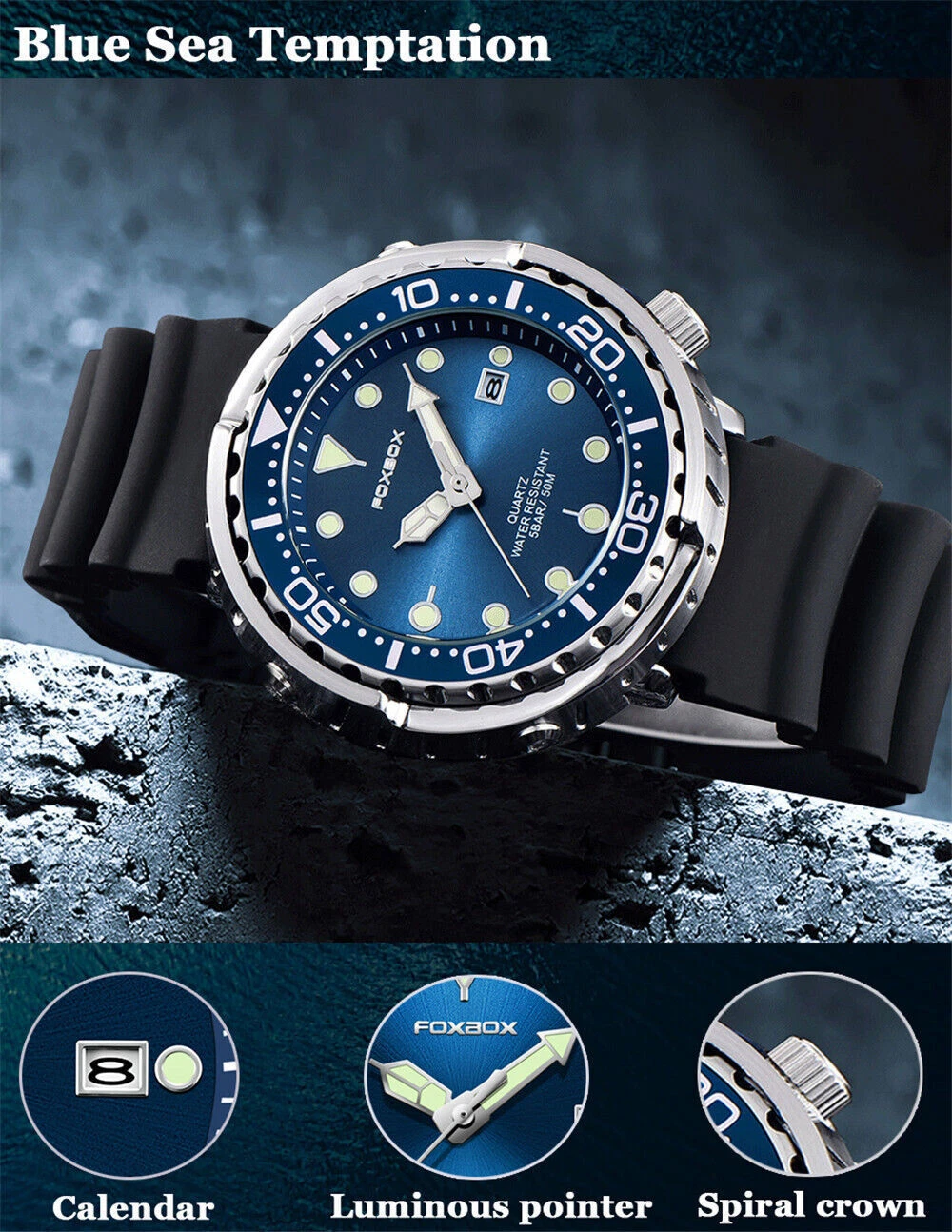 LIGE FOXBOX Men Watch Silicone Wristwatch Luminous Calandar Males Gift Watches