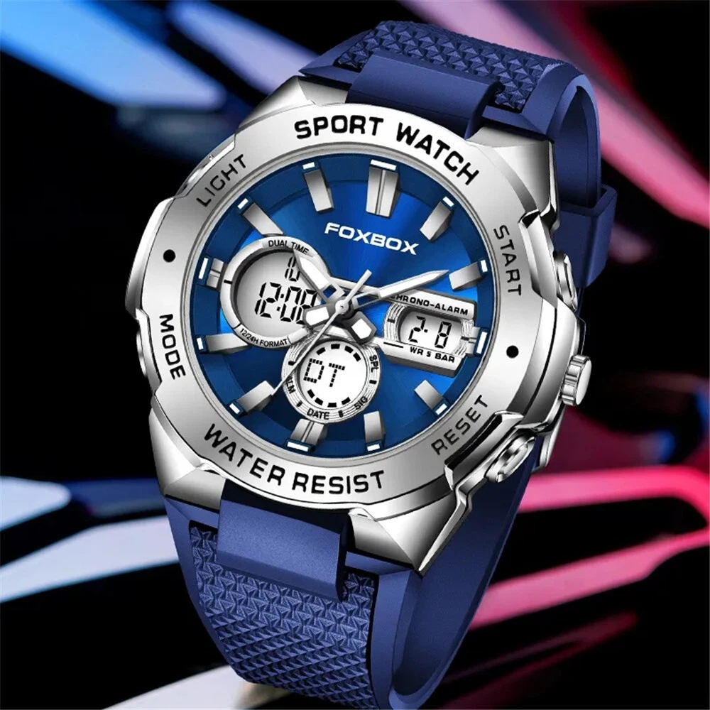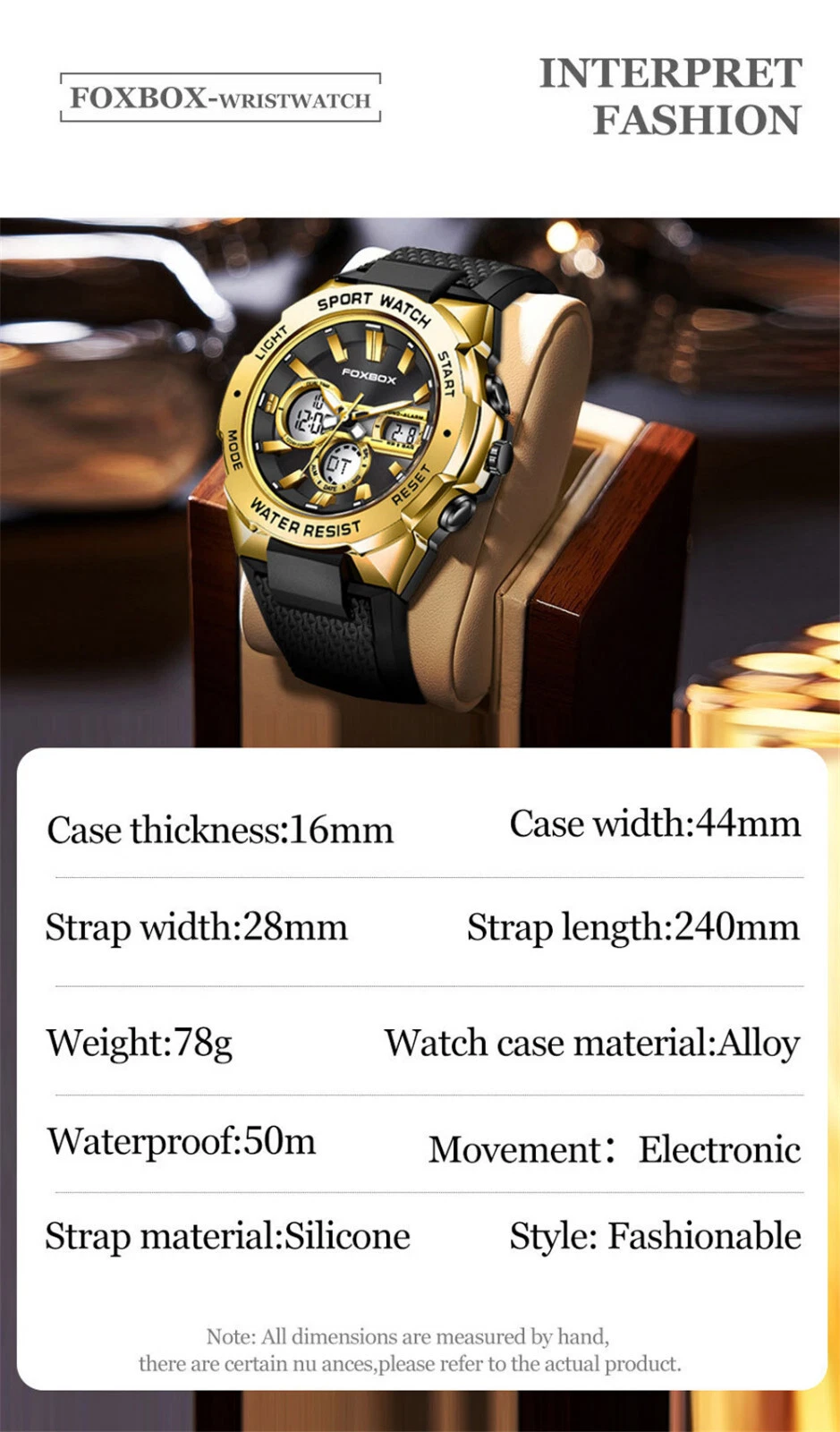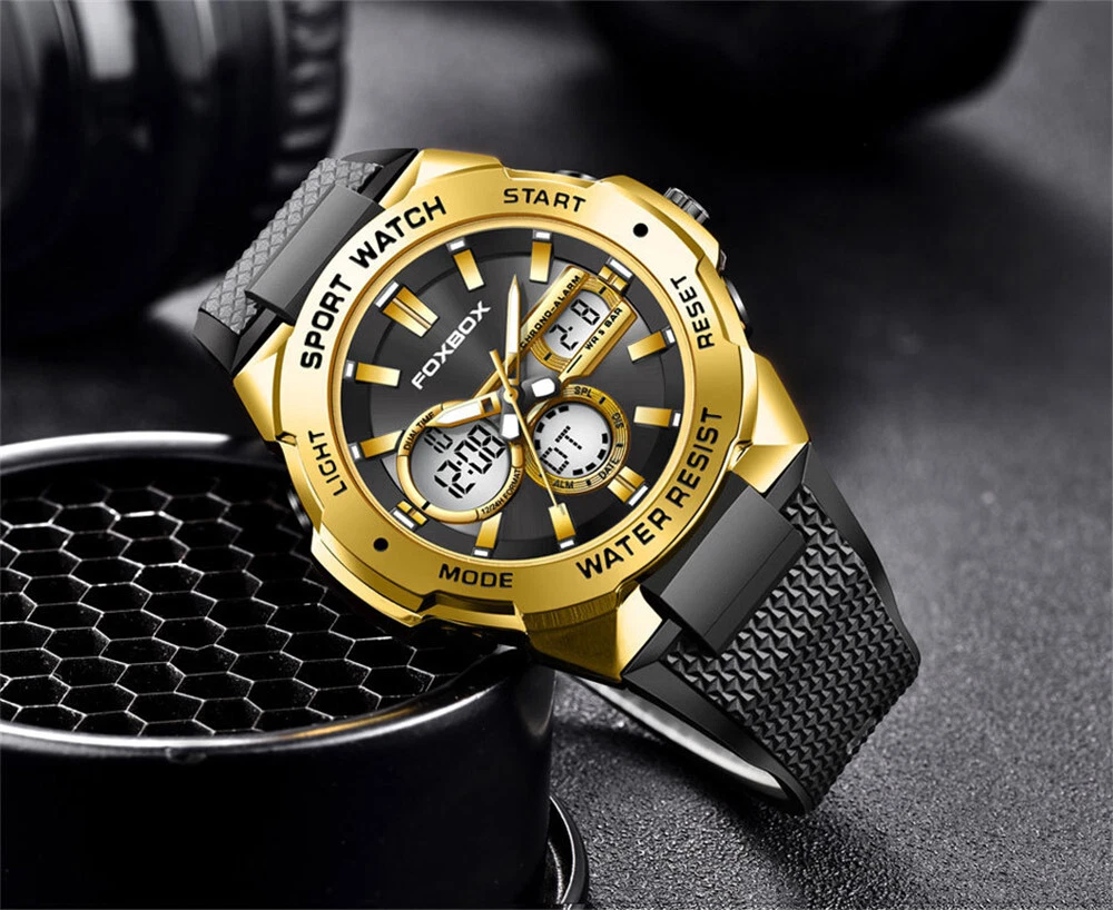 LIGE FOXBOX Digital Watch Men Sport Wristwatch Gold Case Silicone StrapWatches