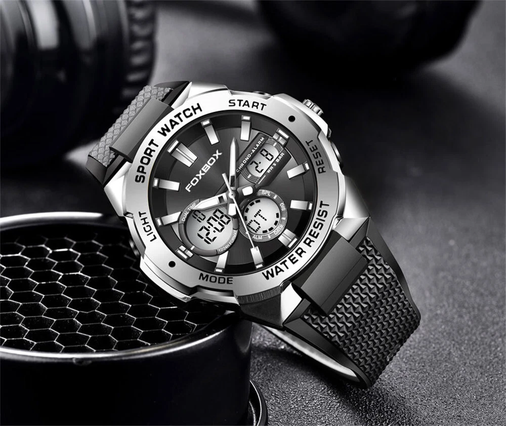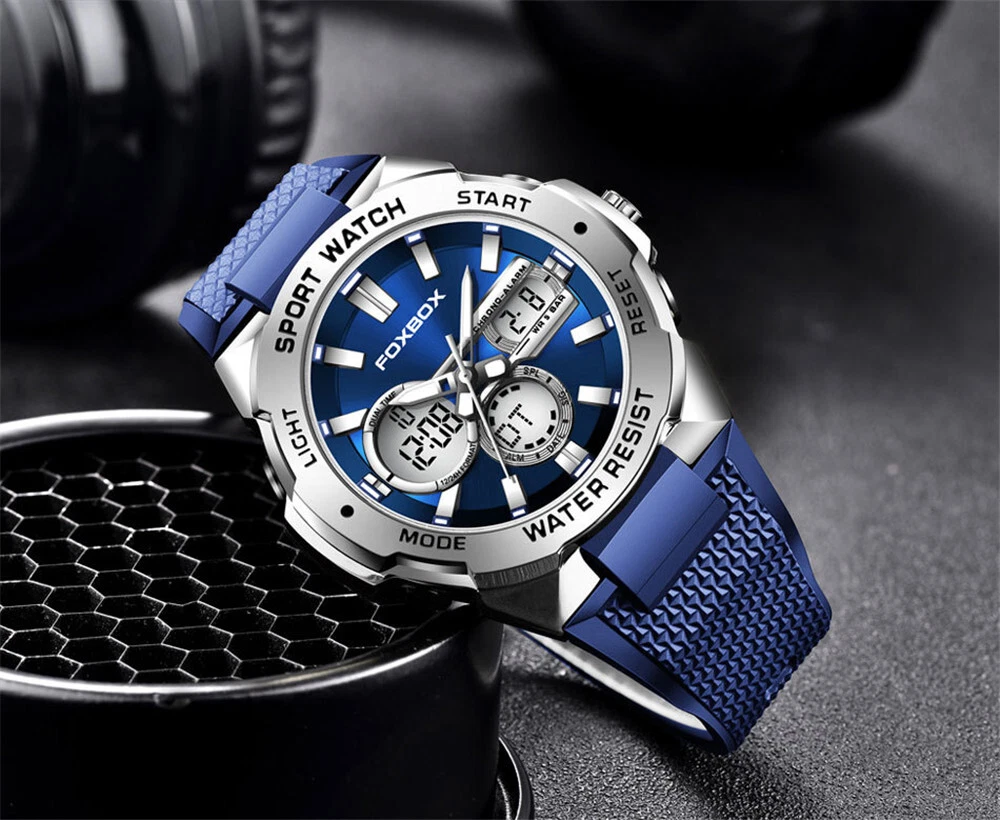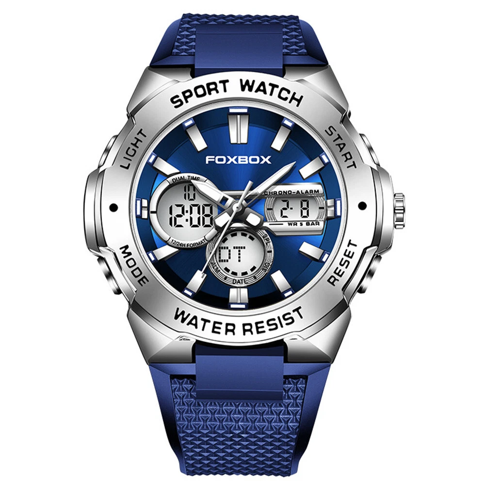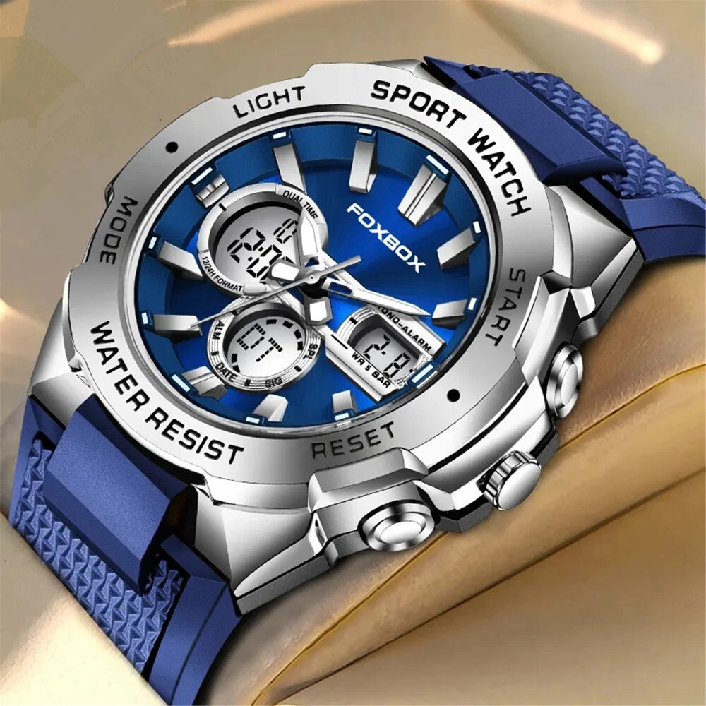 LIGE FOXBOX Digital Watch Men Sport Wristwatch Gold Case Silicone StrapWatches