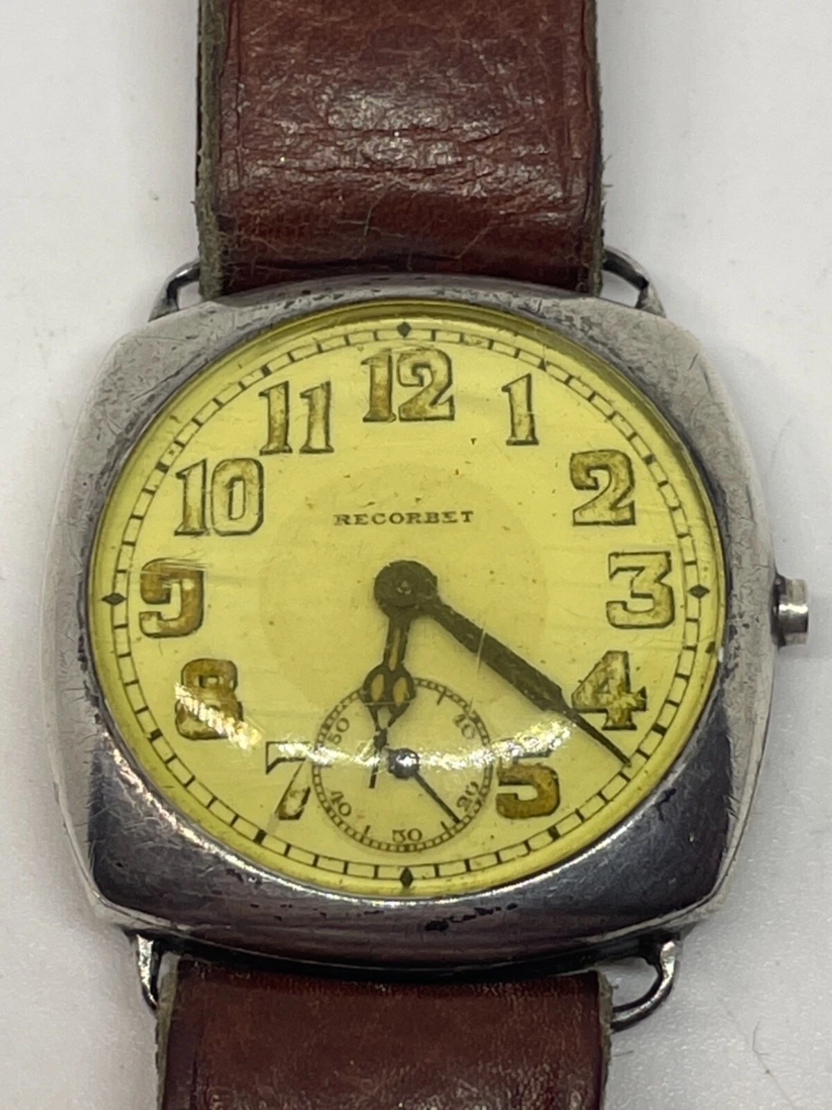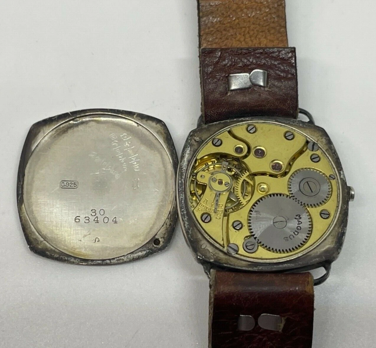 SWISS MAGNUS WATCH Porcelain Luminous Dial Sterling Silver Case/ Needs a Service