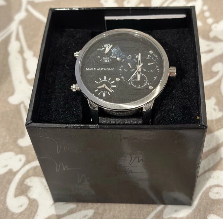 Marc Anthony Men’s Genuine Black Leather Analog Dial Watch