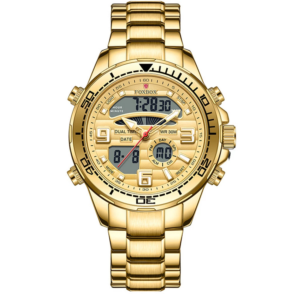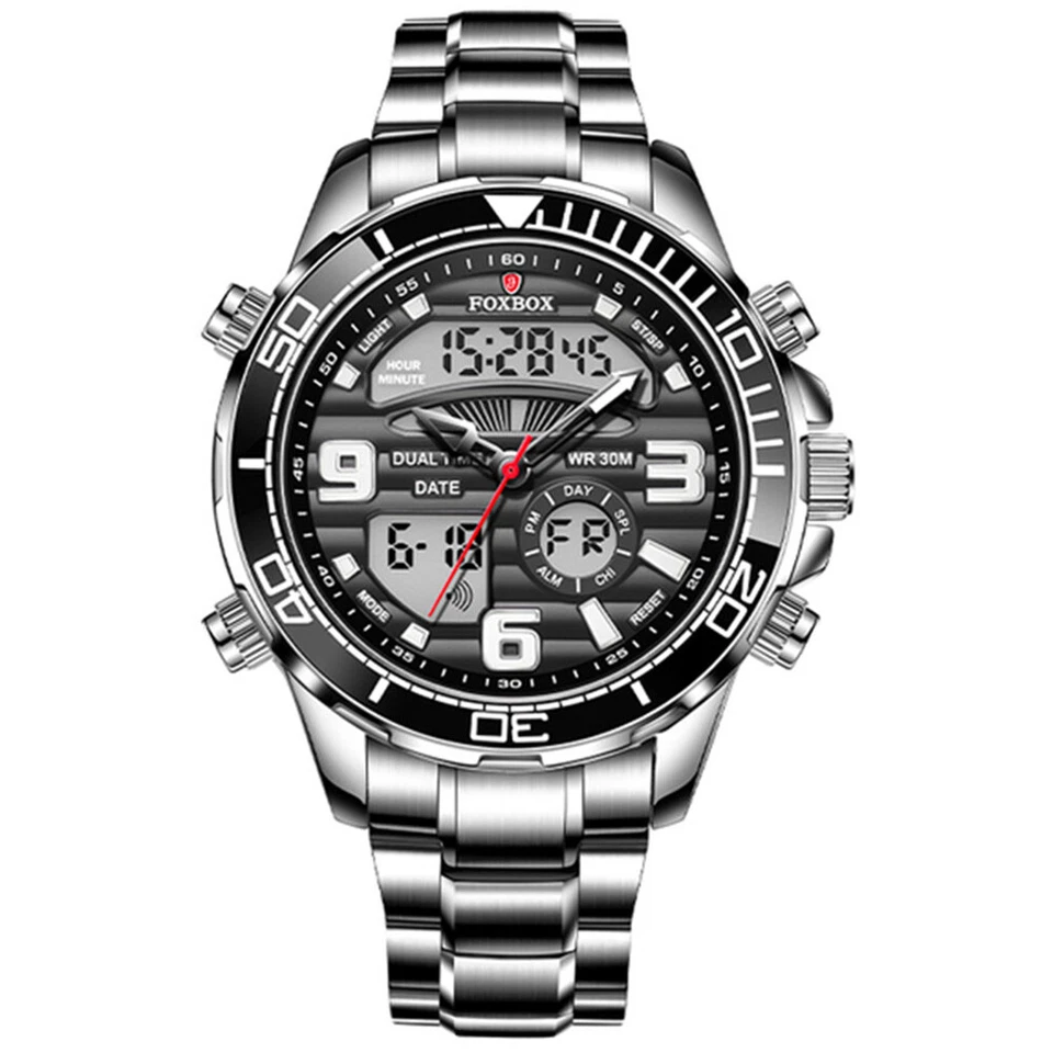 LIGE FOXBOX Men Digital Stainless Steel Big Dial Luminous Quartz Wrist Watches