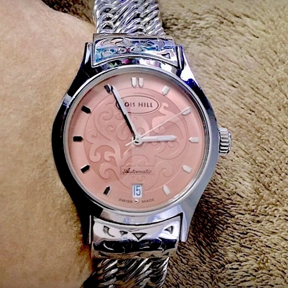 LOIS HILL Watch Pink Face Automatic Sterling Band