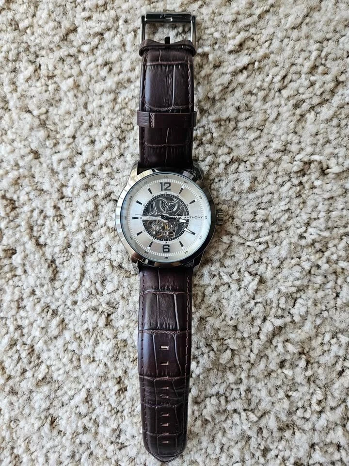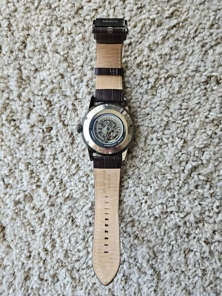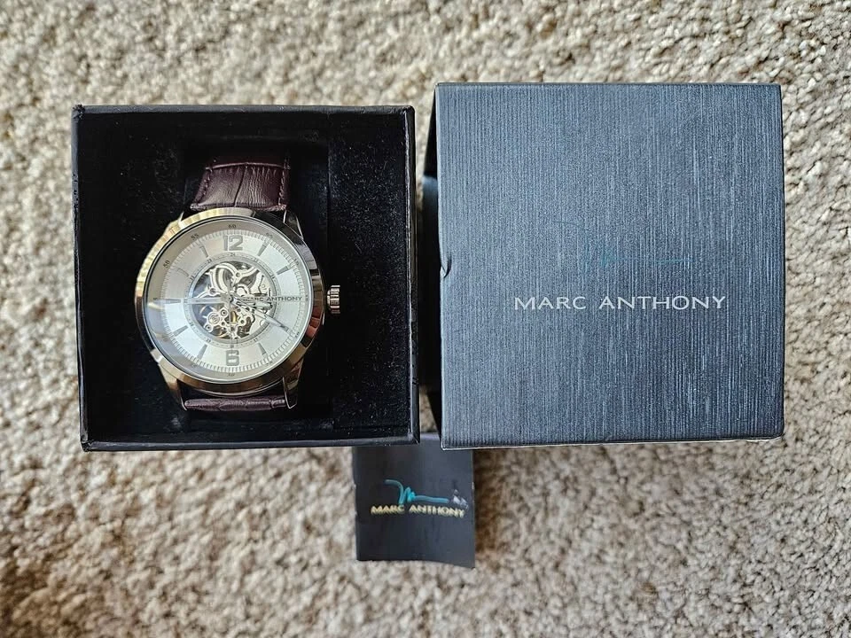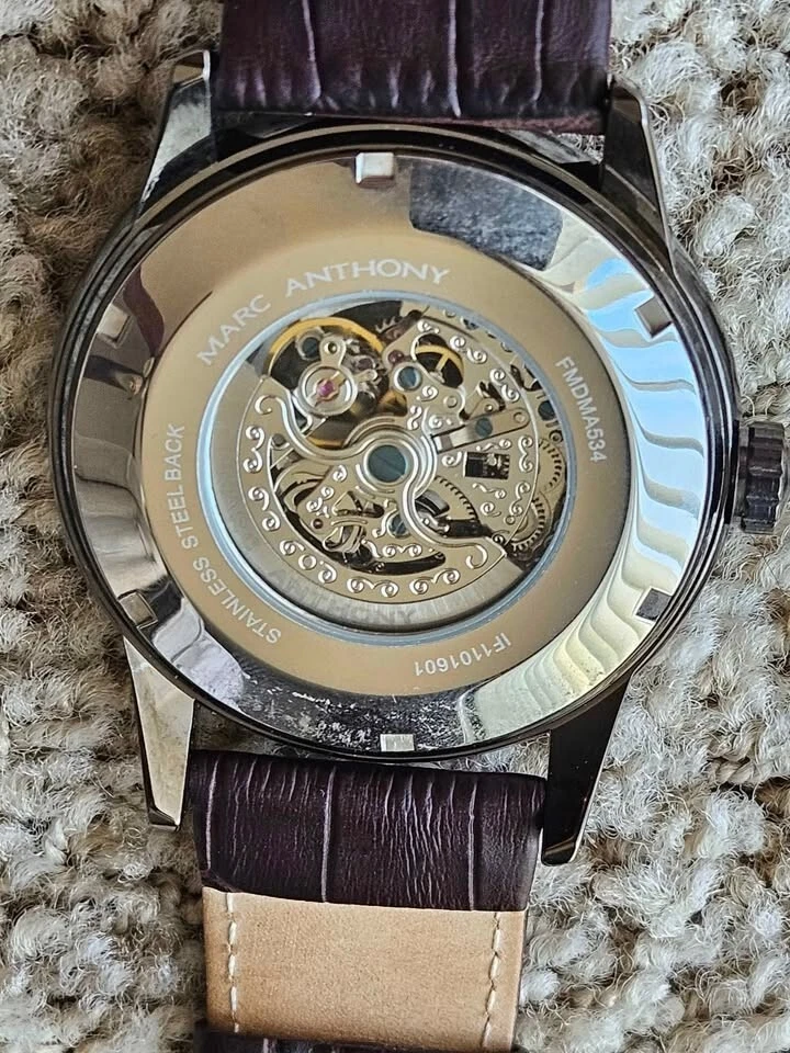 Marc Anthony Men FMDMA534 Skeleton Brown Leather 50mm Automatic Analog Watch 8"