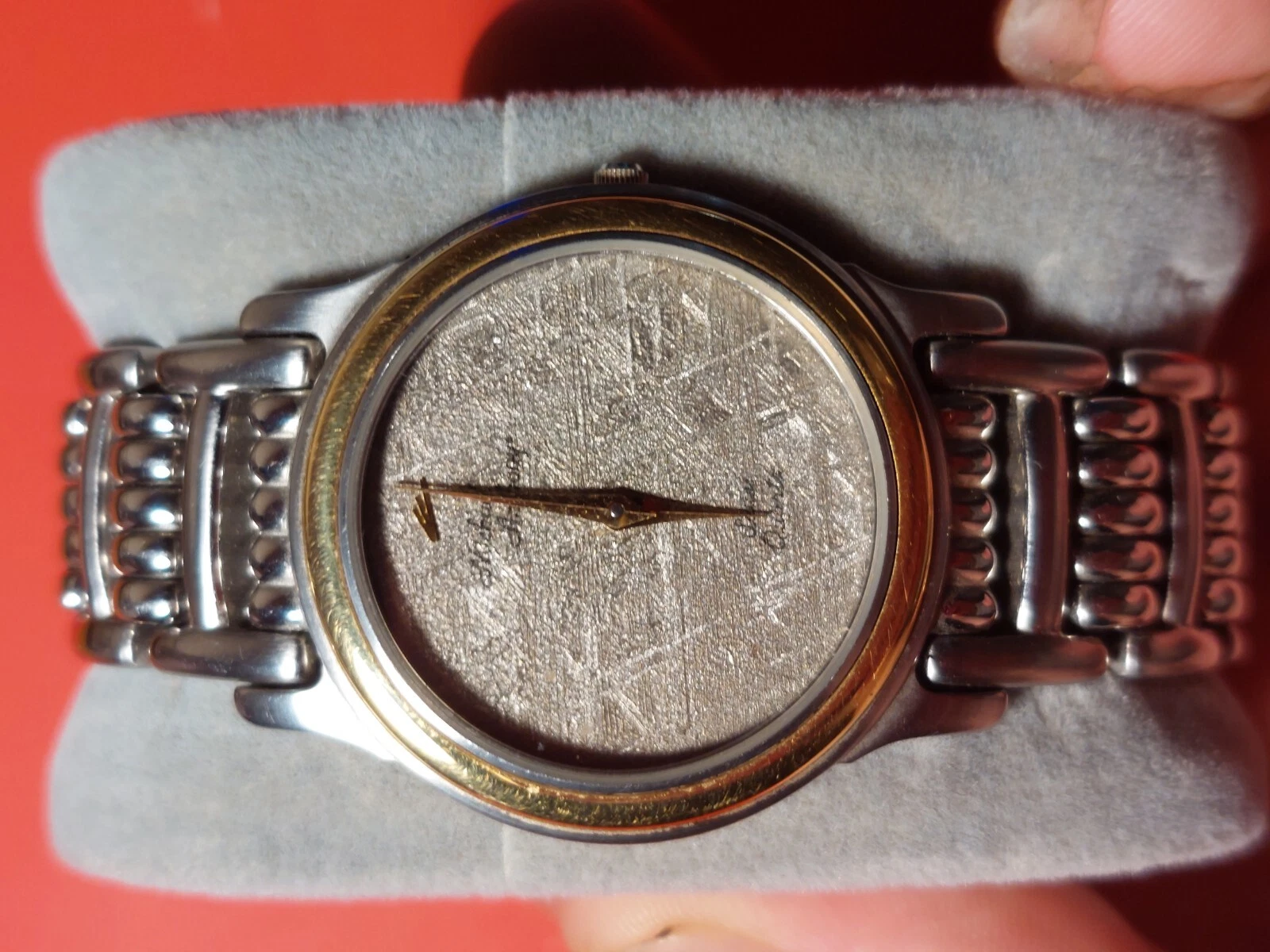 Mark Anthony 35mm Quartz Wristwatch w Metoerite Dial and Solid 14k Gold Bezel
