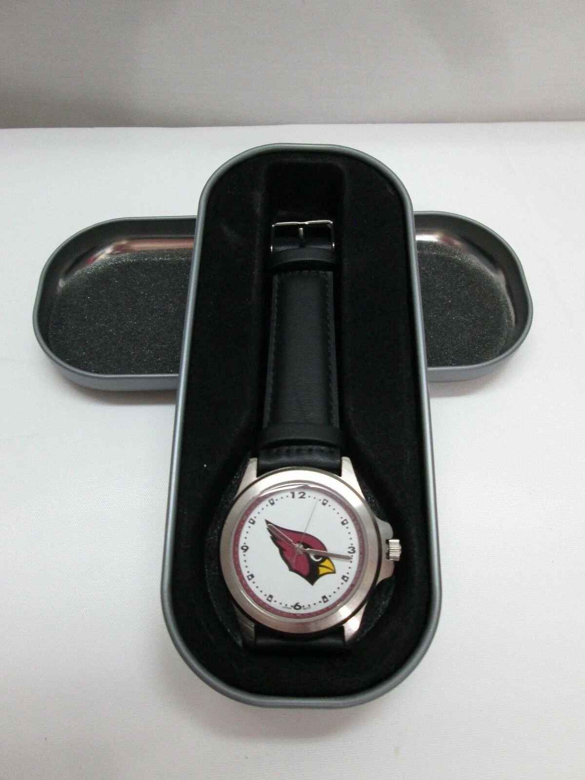 NFL Arizona Cardinals Men's Dress Watch by Logoart Black Leather Band