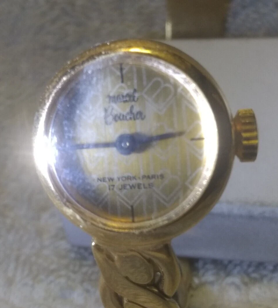 Marcel Boucher Wind Up Watch Women 17J Gold Dial Hide Dial Band Needs Service